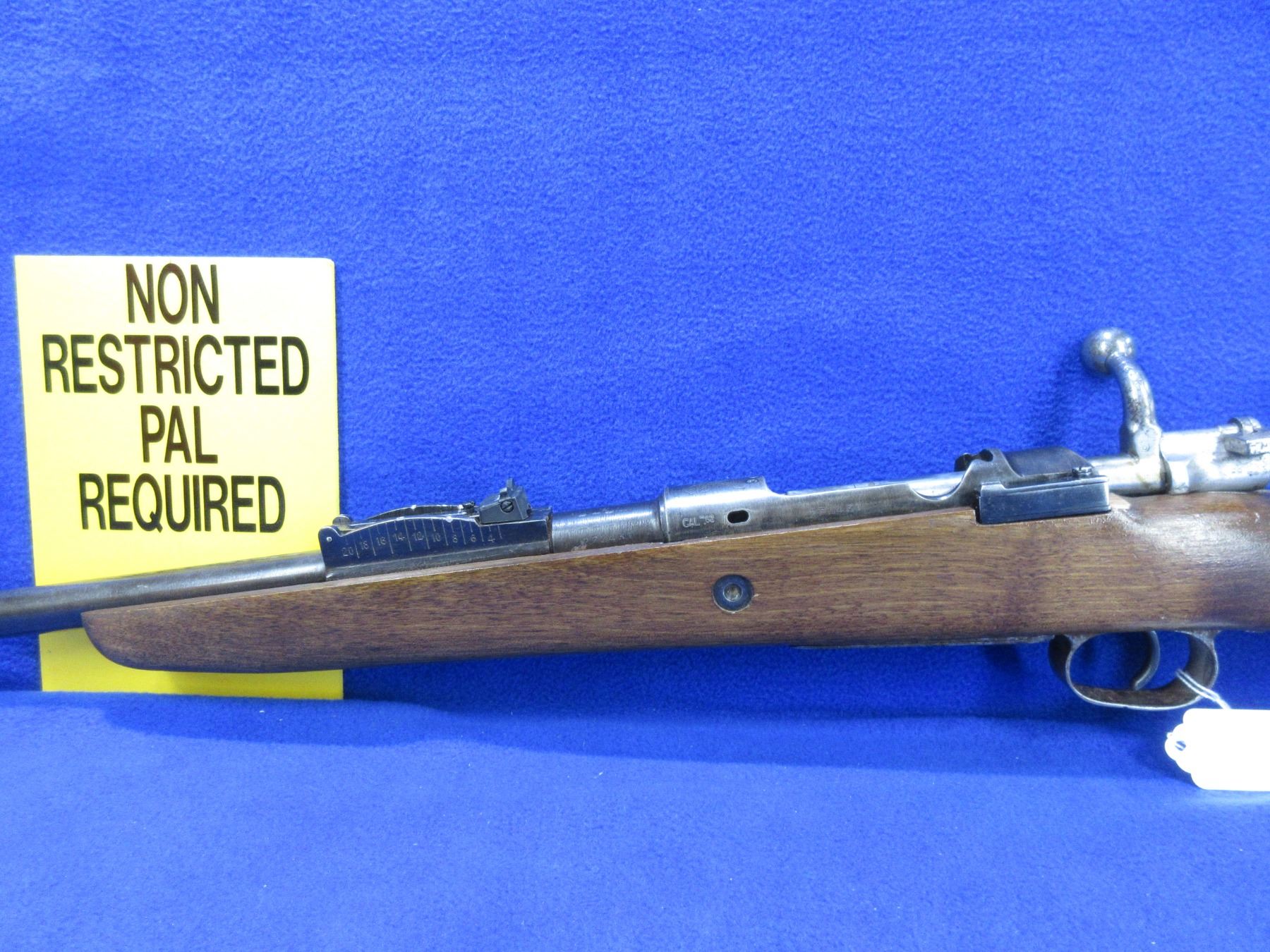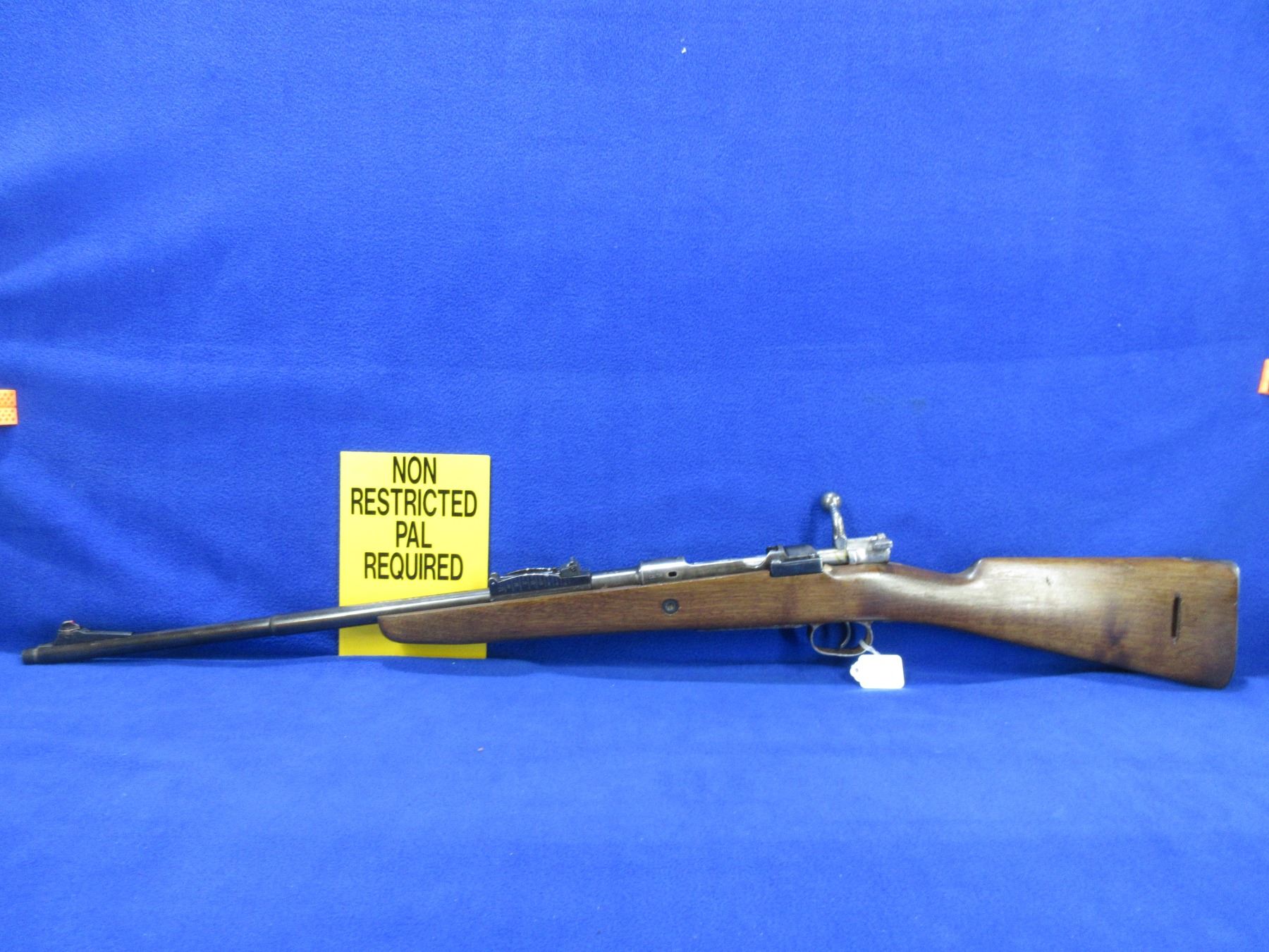 Non-Restricted - Spanish Mauser in 308 Win. - This bolt action rifle with floor plate magazine appears to be in good to very good working order. Barrel is 21 1/2", rifling is good, bluing is good but gone on trigger guard, has both sights, stock good but has small chip by bolt release, metal butt plate good to very good. Ser # 2Z2431