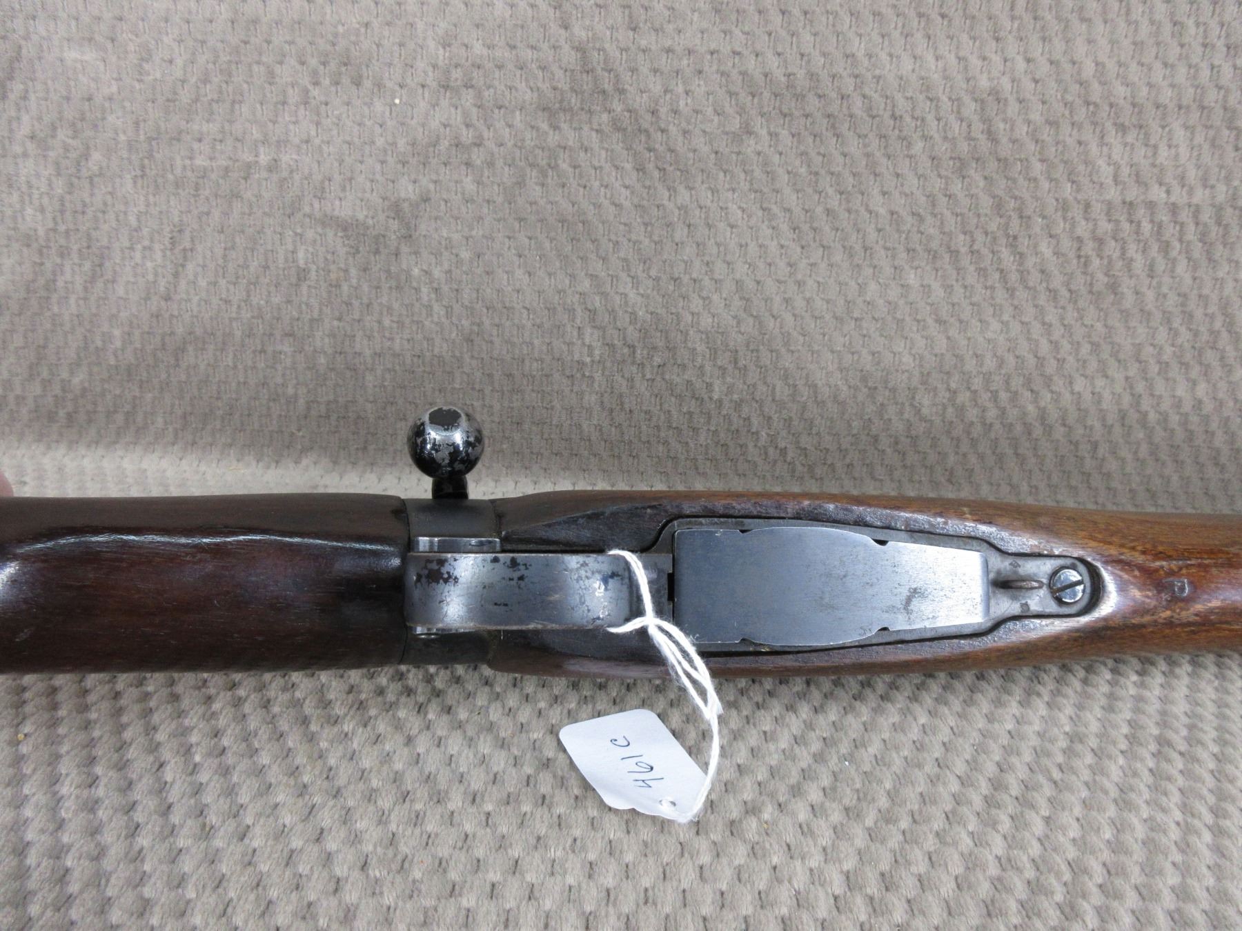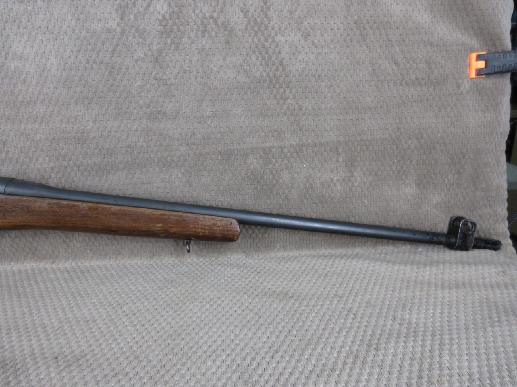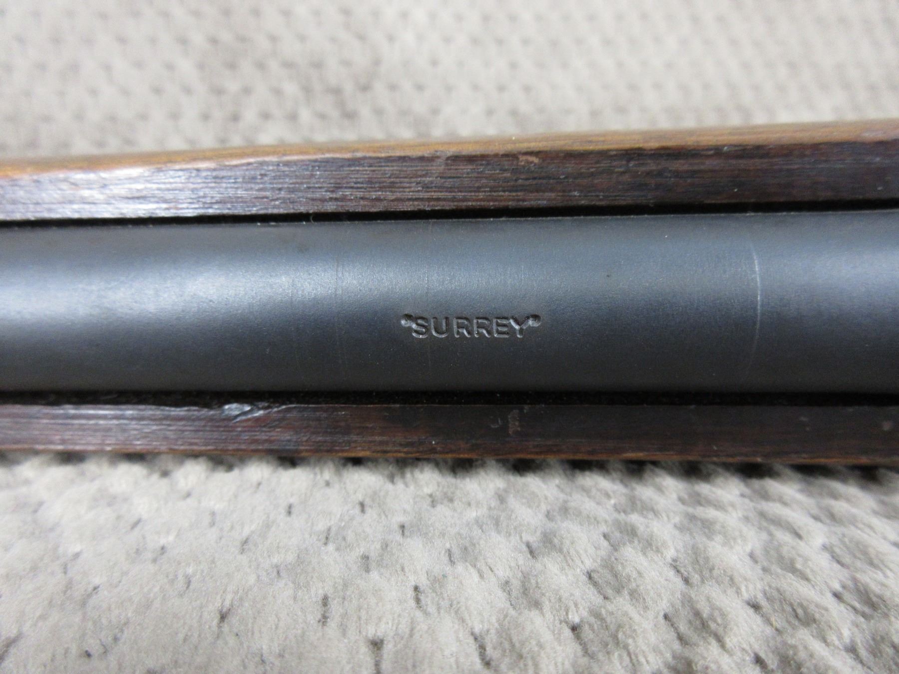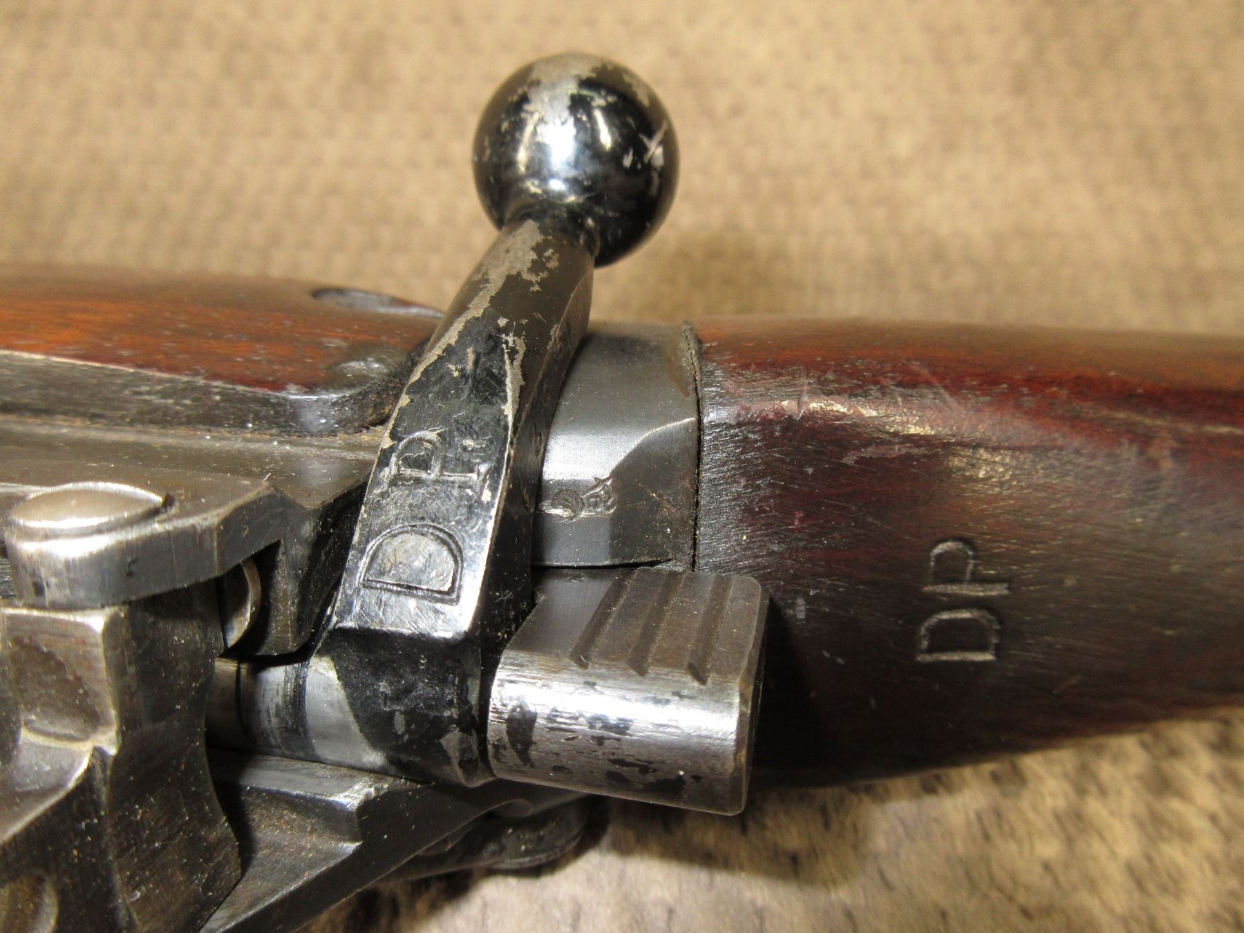 Non-Restricted - Sporterized Lee Enfield in 303 British No.4 Mk I* Long Branch 1943 - This bolt action 5 shot magazine rifle appears to be in good working order. Barrel is 25", bluing is fair and has some painted areas, rifling is very good, has both sights, stock good with usual marks, metal butt plate. Barrel says Surrey and has DP stamped in various places.