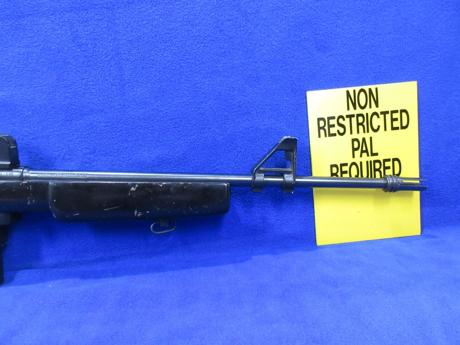 Non-Restricted - Squires Bingham in 22 LR - This semi-auto rifle with magazine appears to be in good to very good working order. Barrel is 18", bluing is good to very good, rifling is good to very good, has both sights, painted stock is good but has various paint chips, butt plate good, Ser # 861296