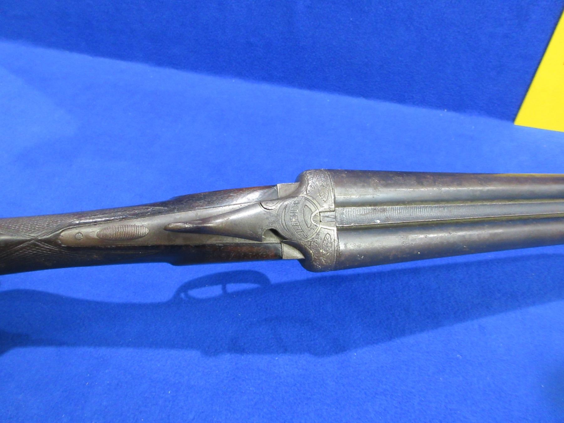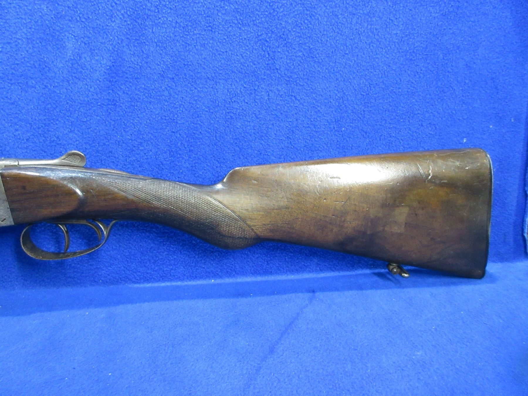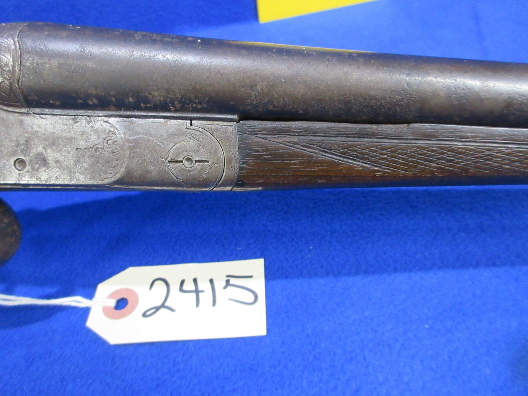 Non-Restricted - St. Etienne SXS in 16 Ga. 2 1/2" - This tip up SXS shotgun appears to be in working order, action is tight but opening lever spring is not working. Barrels are 27", bores are fair to good, bluing is poor to fair with rust and pitting, has bead front sight, stock is good for age with many usage marks, forearm has a small chip on right side under barrel, butt plate, comes with swivels. Ser # 5265
