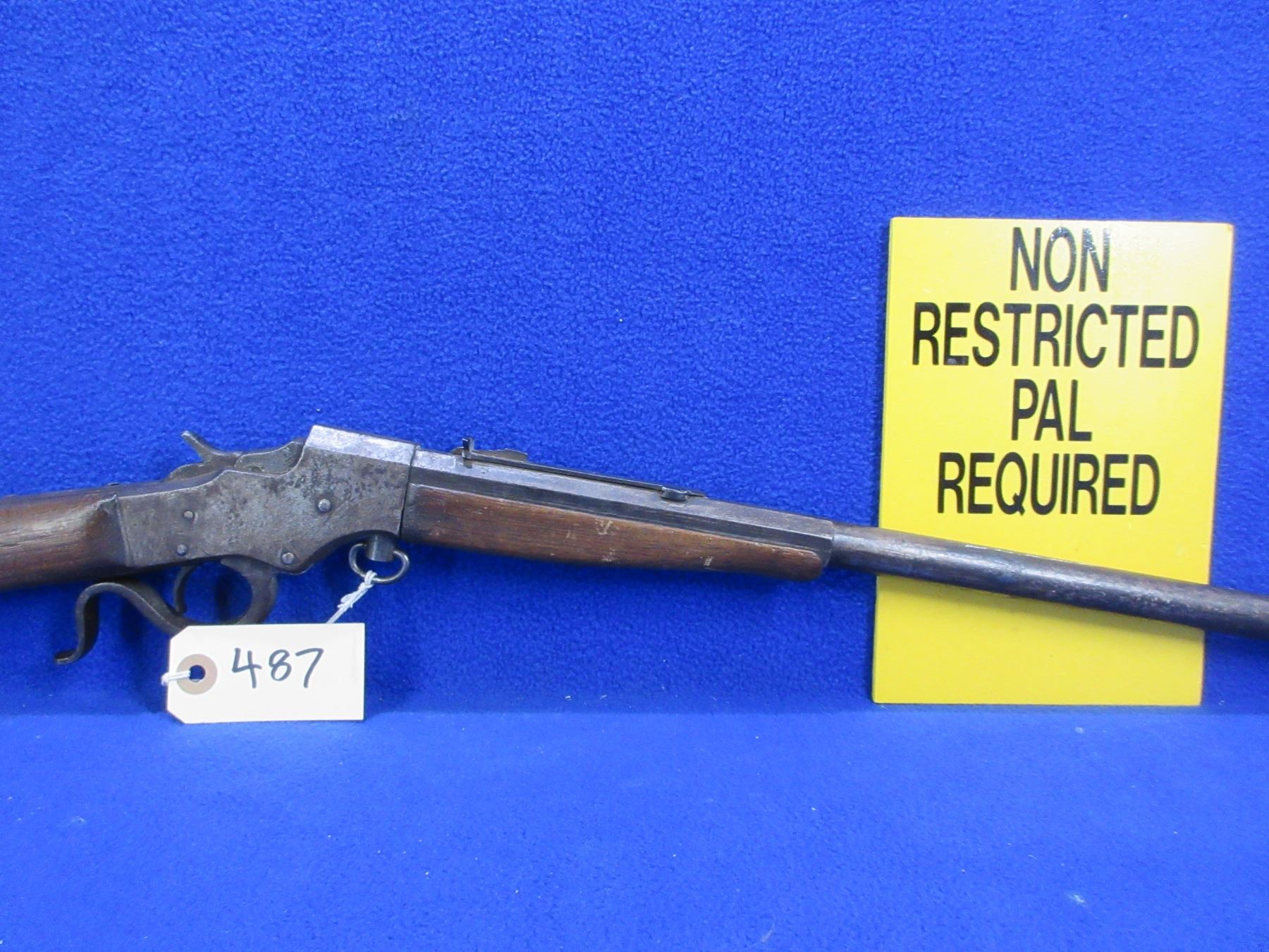 Non-Restricted - Stevens Favorite Style in 25 Stevens Rimfire - This is a single shot falling block rifle, action appears to be in good working order. Barrel is 22", rifling is fair to good, bluing is gone, has both sights, stock has a crack repair and is loose, forearm is good with many usage marks, length of pull is 12 1/2", metal crescent butt plate good. Ser # 216