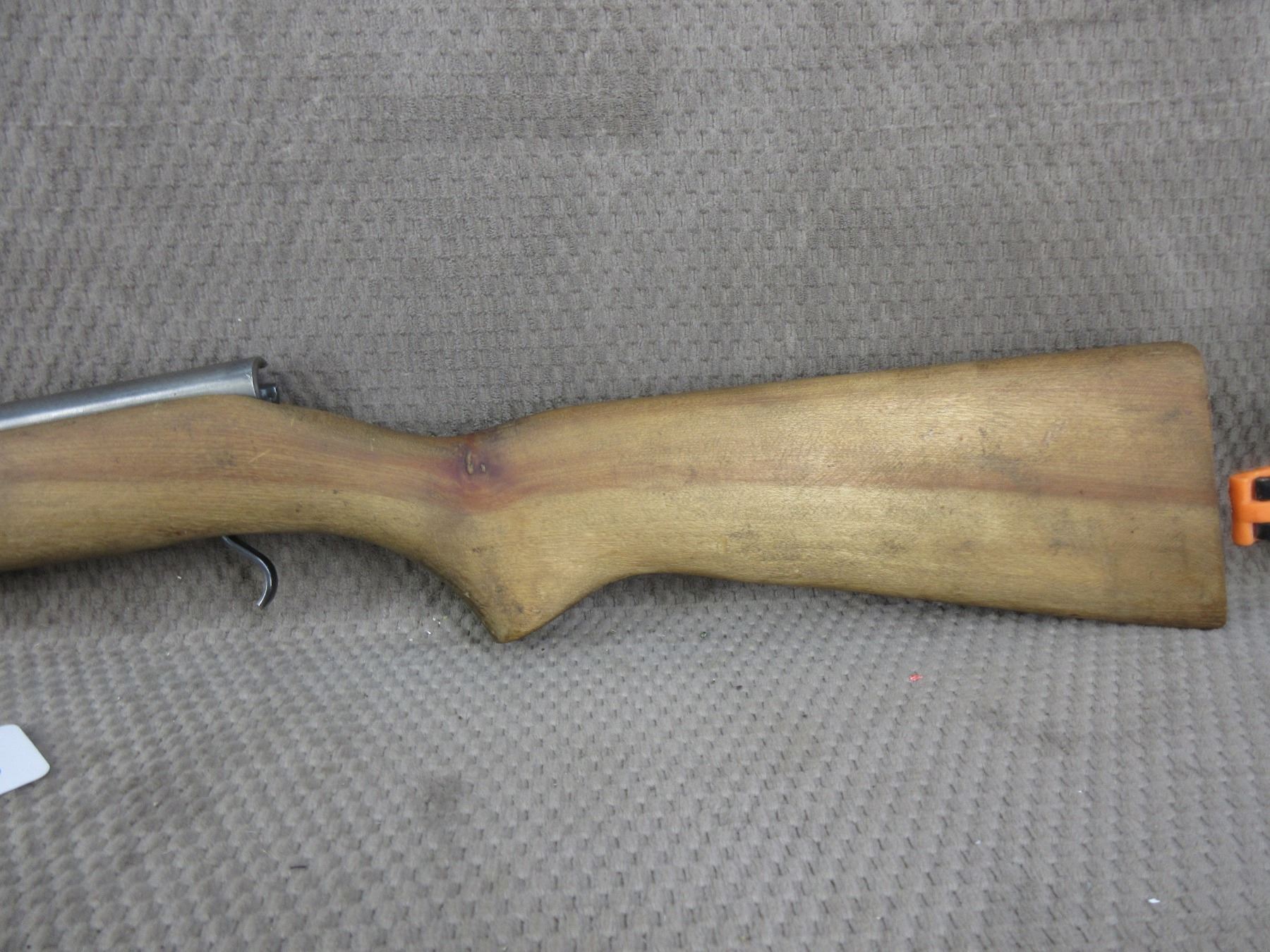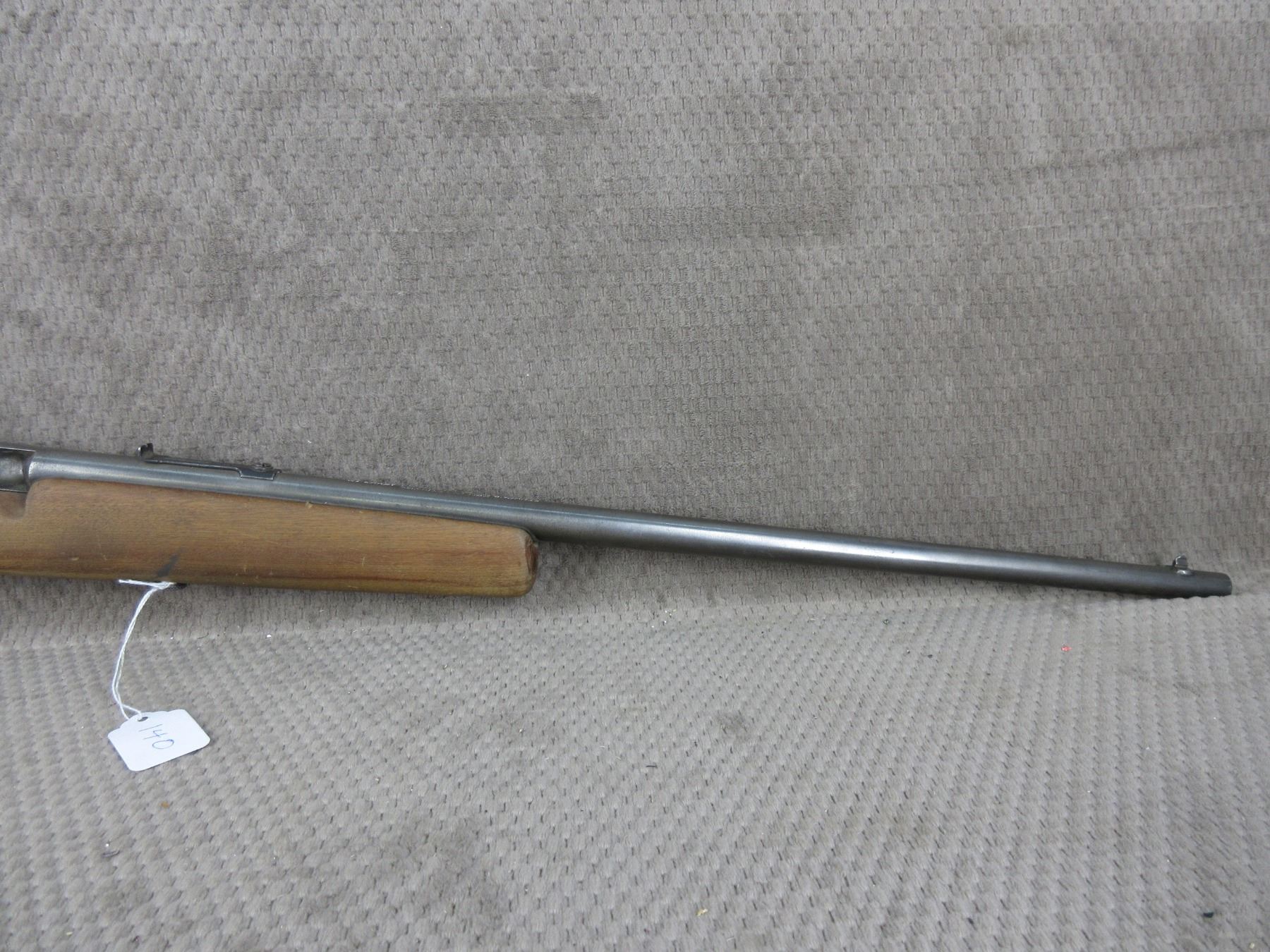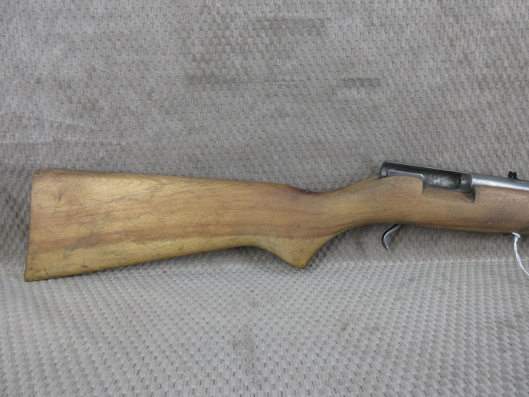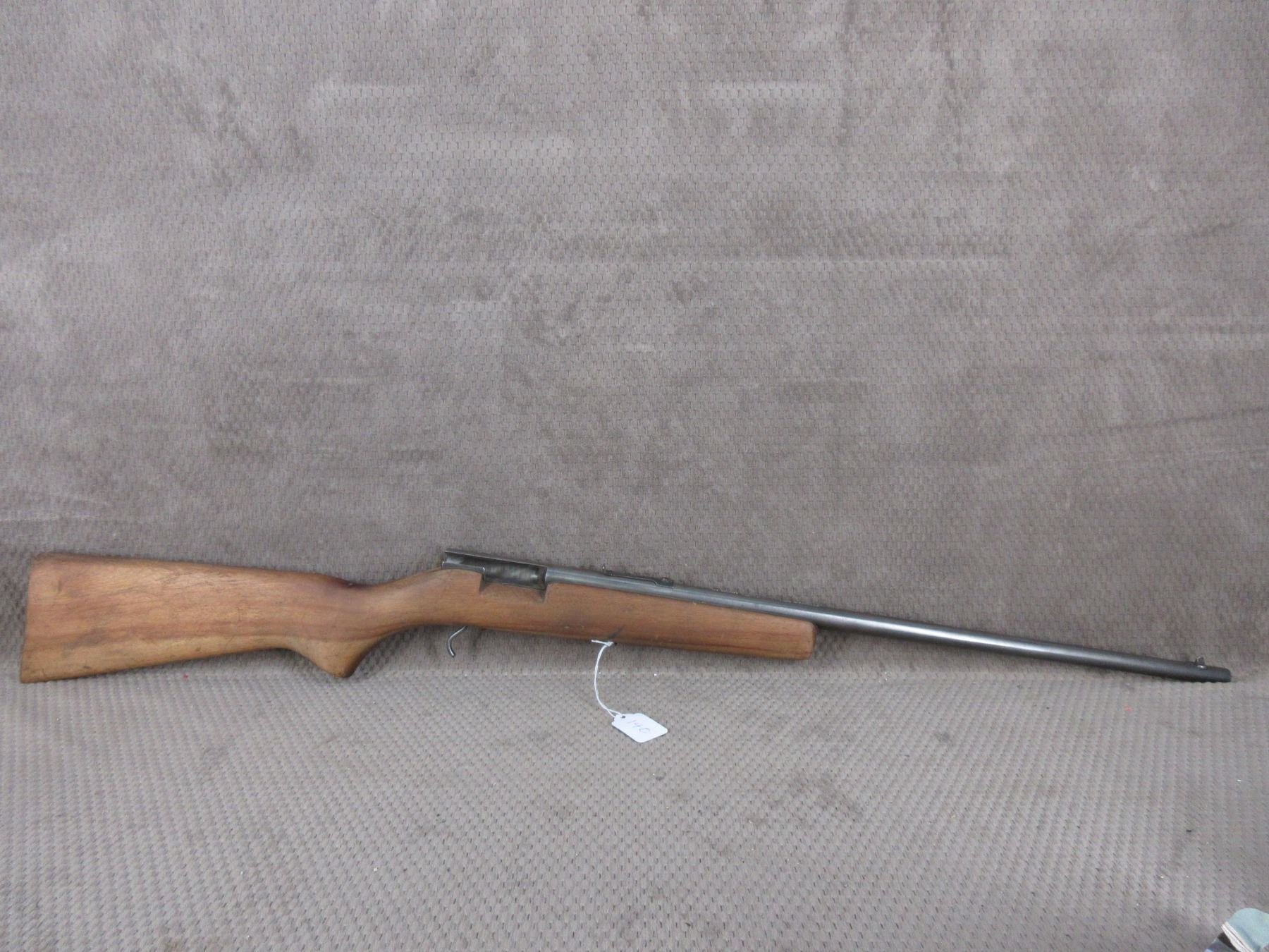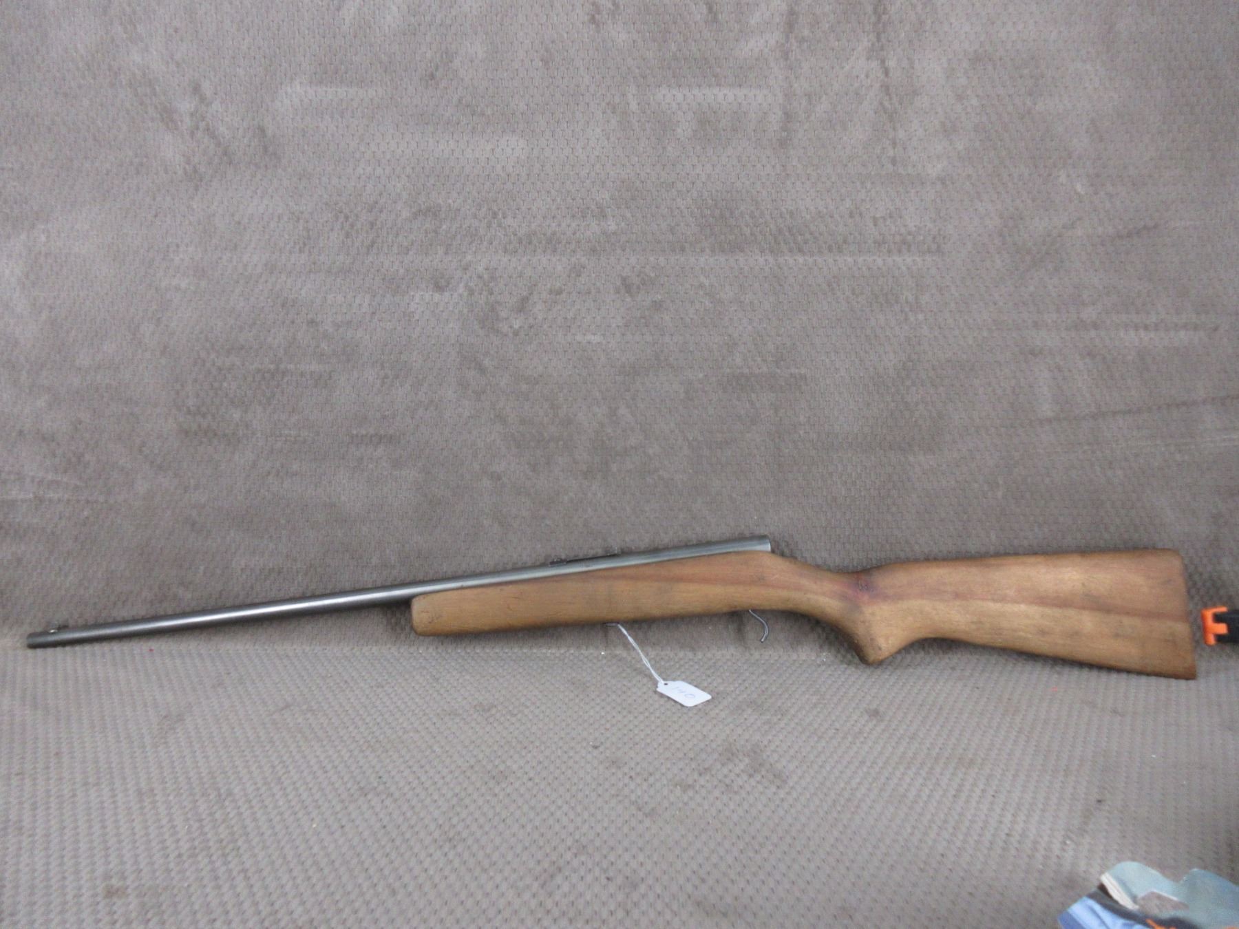 Non-Restricted - Stevens Model 15 in 22 Long Rifle - This single shot, bolt action rifle is a parts gun as bolt and trigger guard are missing, Barrel is 22", rifling is good, bluing mostly gone, has both sights, rear sight missing ramp, stock has small crack in wrist area, no butt plate.