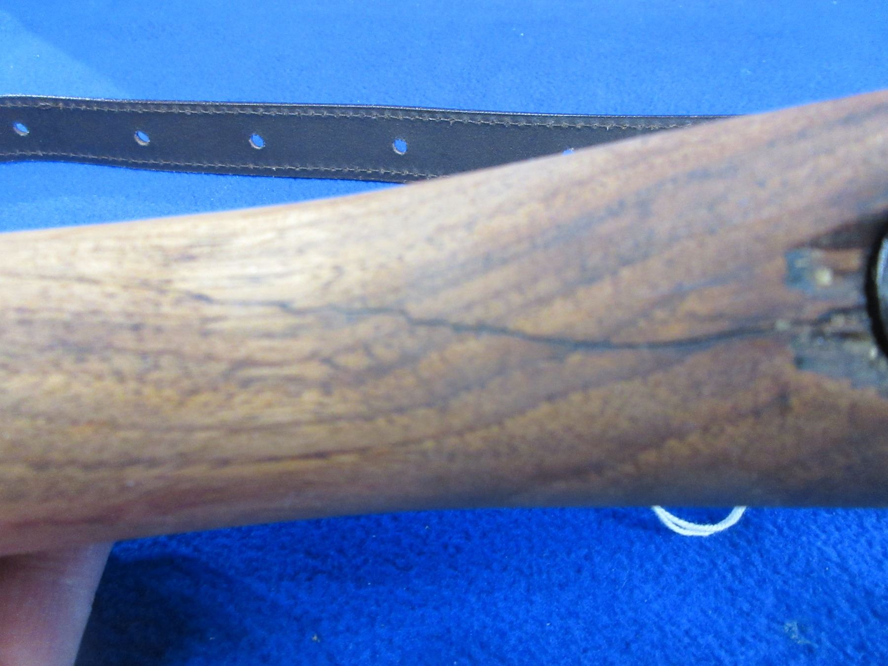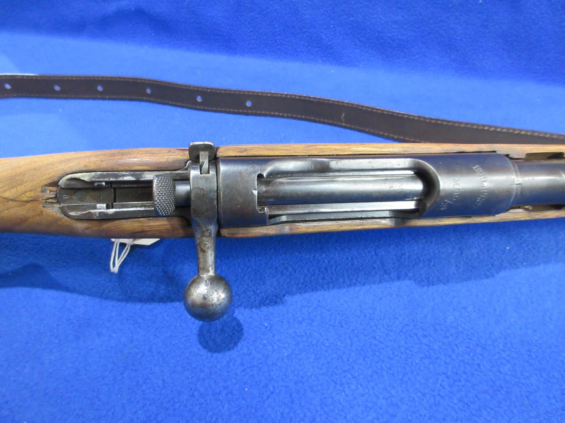 Non-Restricted - Steyr M95/24 in Should be 8X57 Mauser as barrel is not marked and consignor did not know - This is a straight pull bolt action rifle with internal stripper clip magazine, action appears to be in good working order. Barrel is 23", rifling is good to very good, bluing is good, has both sights, stock has a crack top and bottom in the wrist area, length of pull is 13 1/4", metal butt plate good, comes with swivels and a leather sling. Ser # 6702