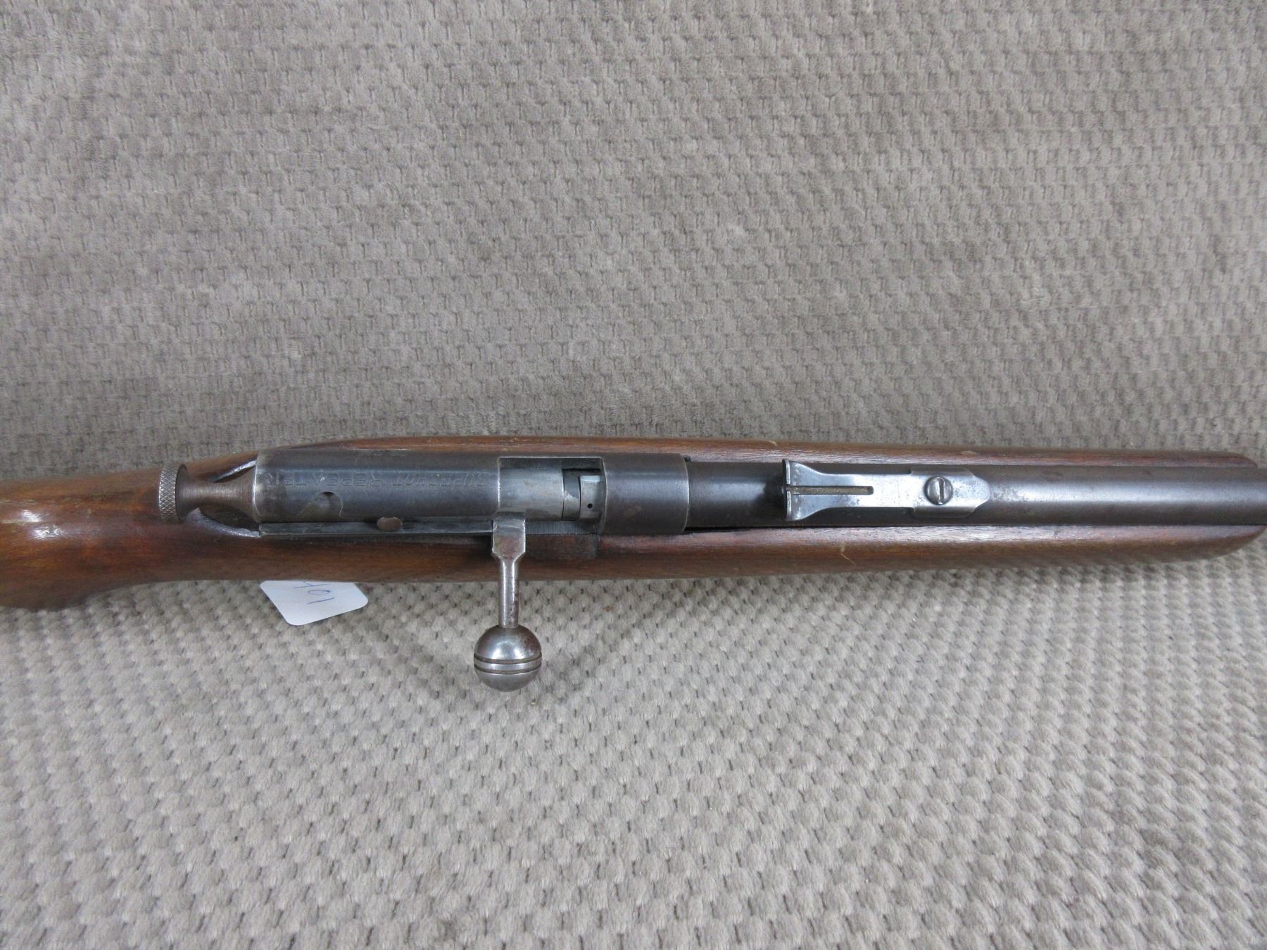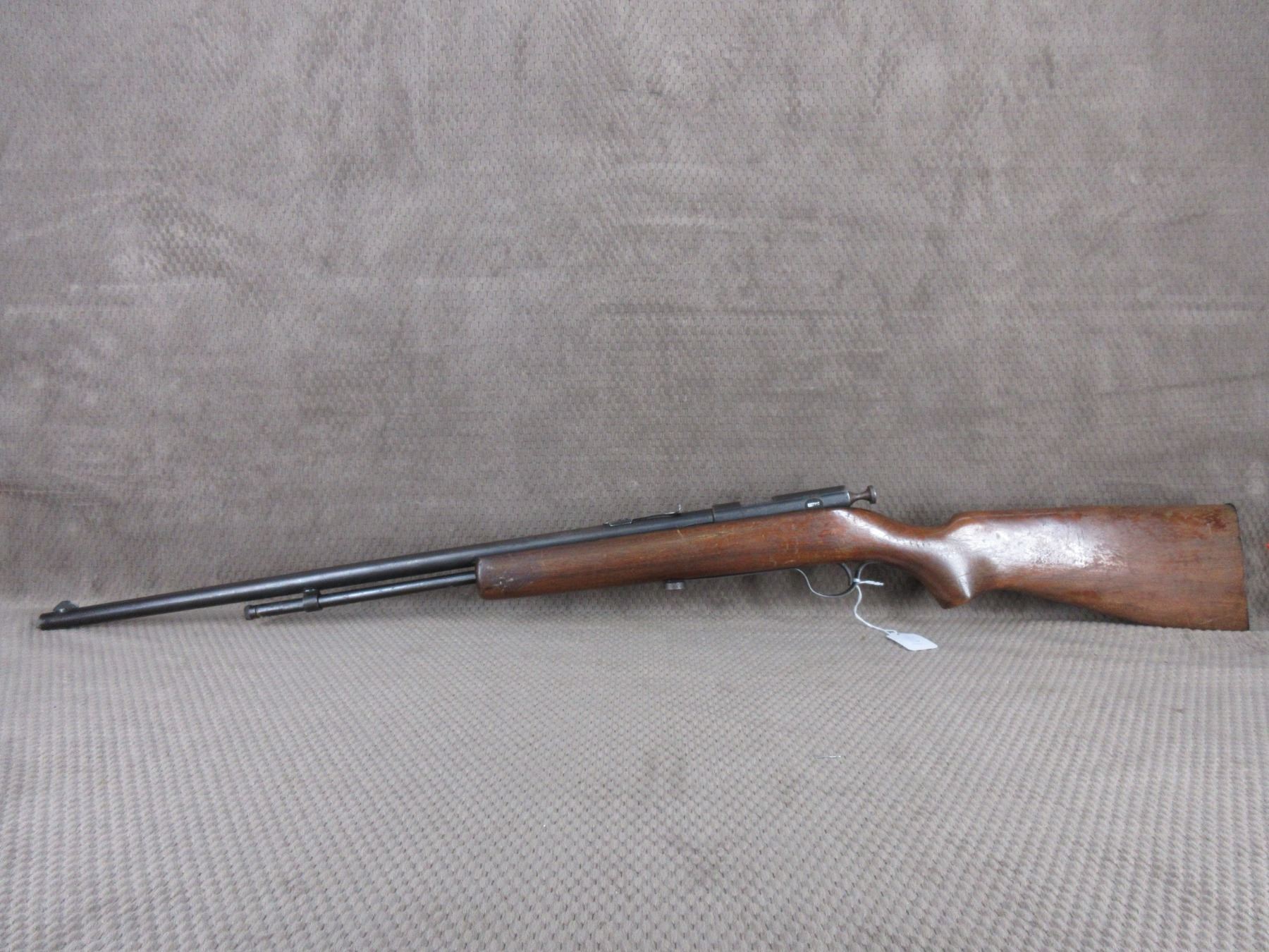 Non-Restricted - Sureshot (Cooey Model 60) in 22 Long Rifle - This bolt action tube magazine rifle appears to be in good working order. Barrel is 23 3/4", rifling is very good, bluing good but turning grey, has both sights, rear sight missing ramp, stock good but missing most of the finish, metal butt plate.