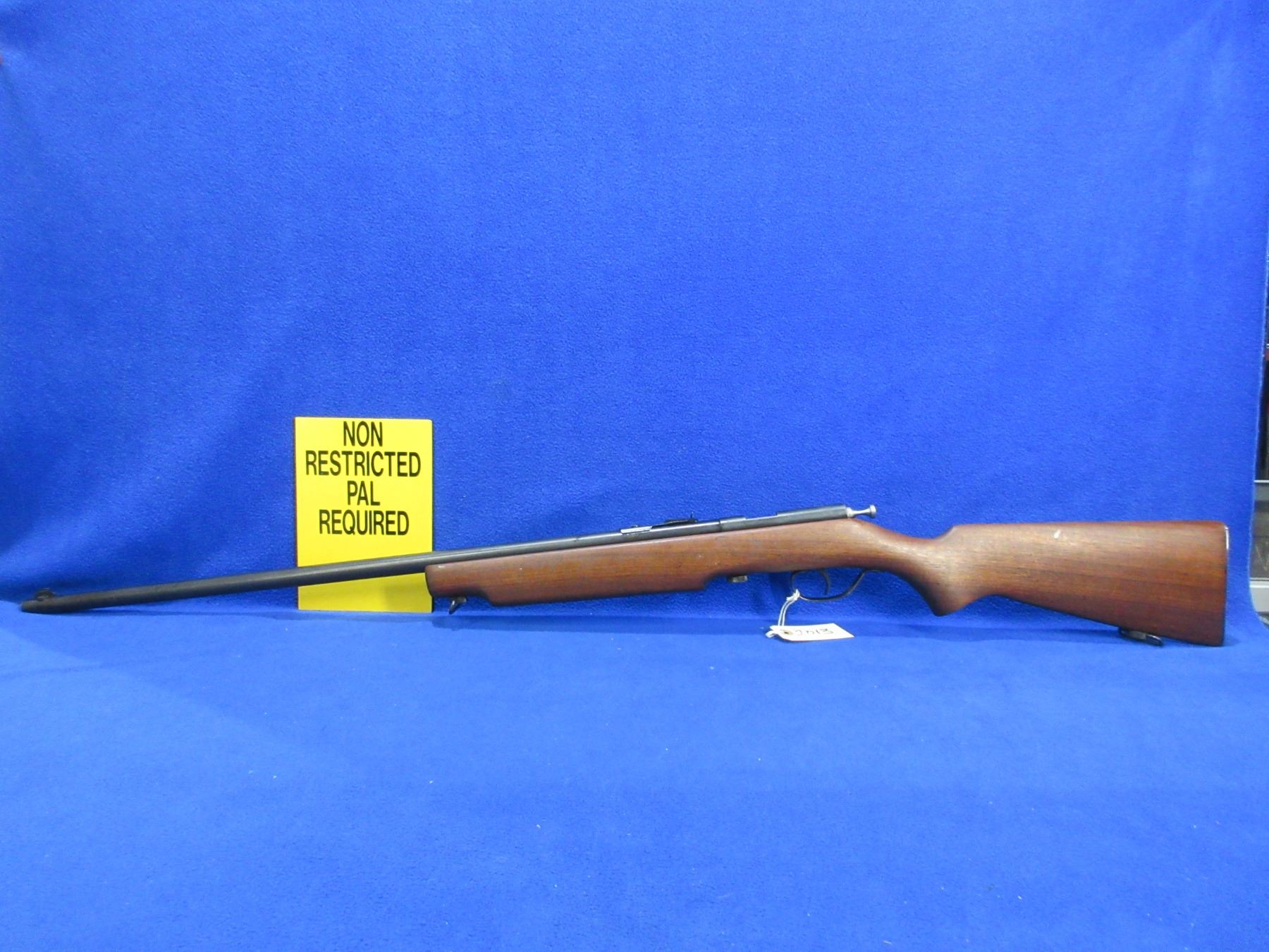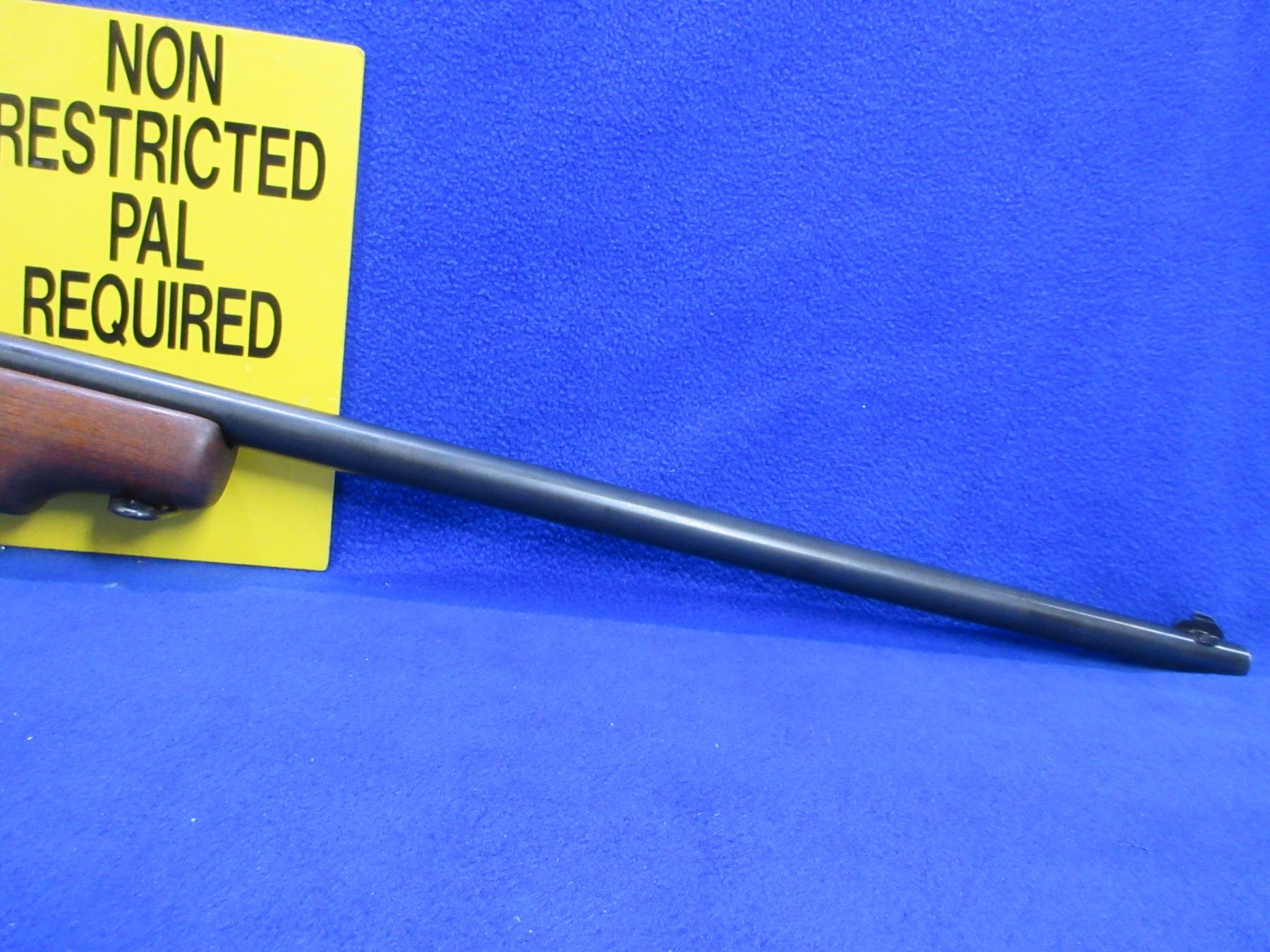 Non-Restricted - Sureshot by Cooey in 22 Cal. - This is a single shot bolt action rifle, action appears to be in good to very good working order. Barrel is 27", rifling is good to very good, bluing is good to very good, has both sights, stock is good to very good, length of pull is 13 1/2", metal butt plate good. Ser # None