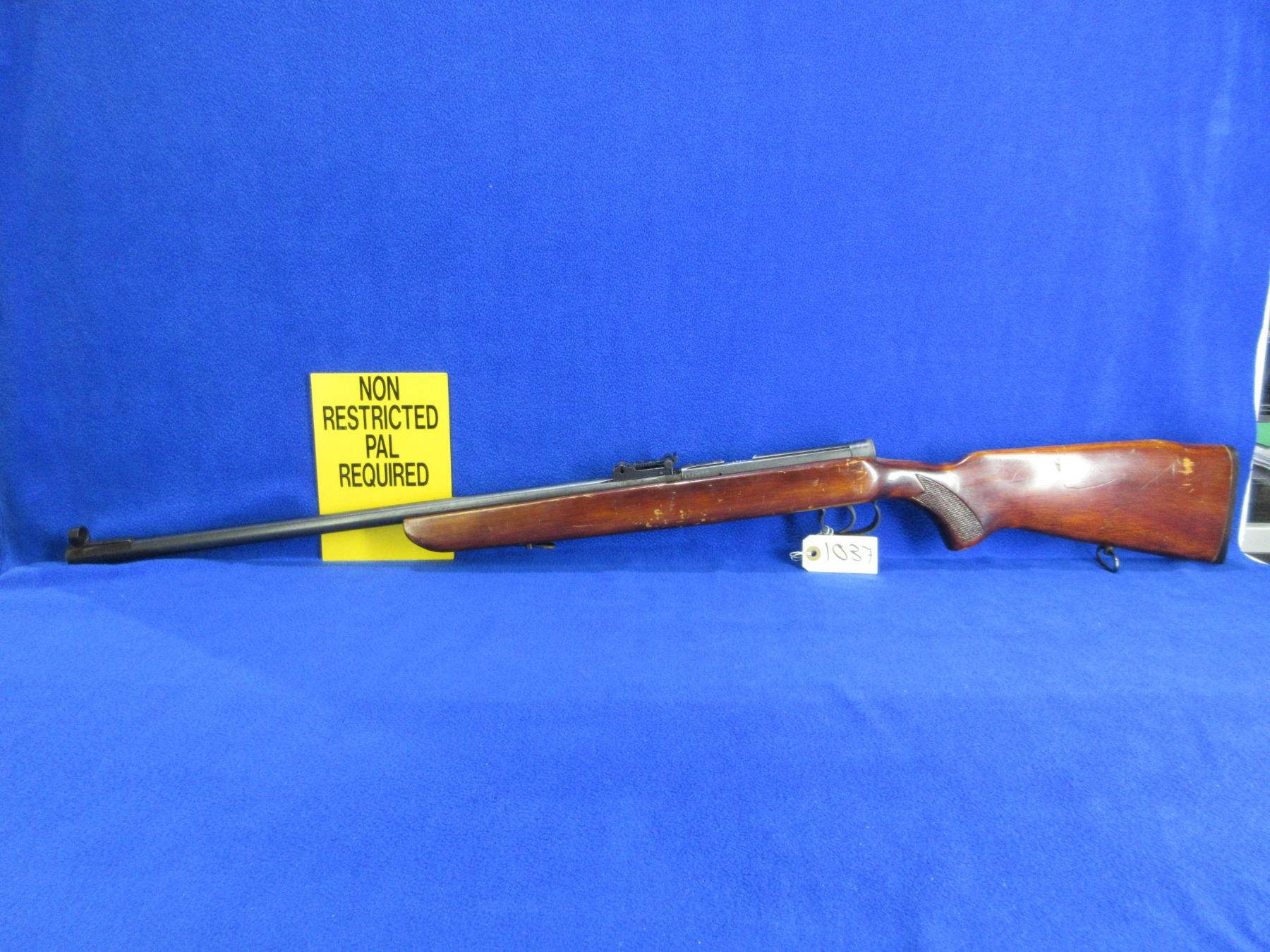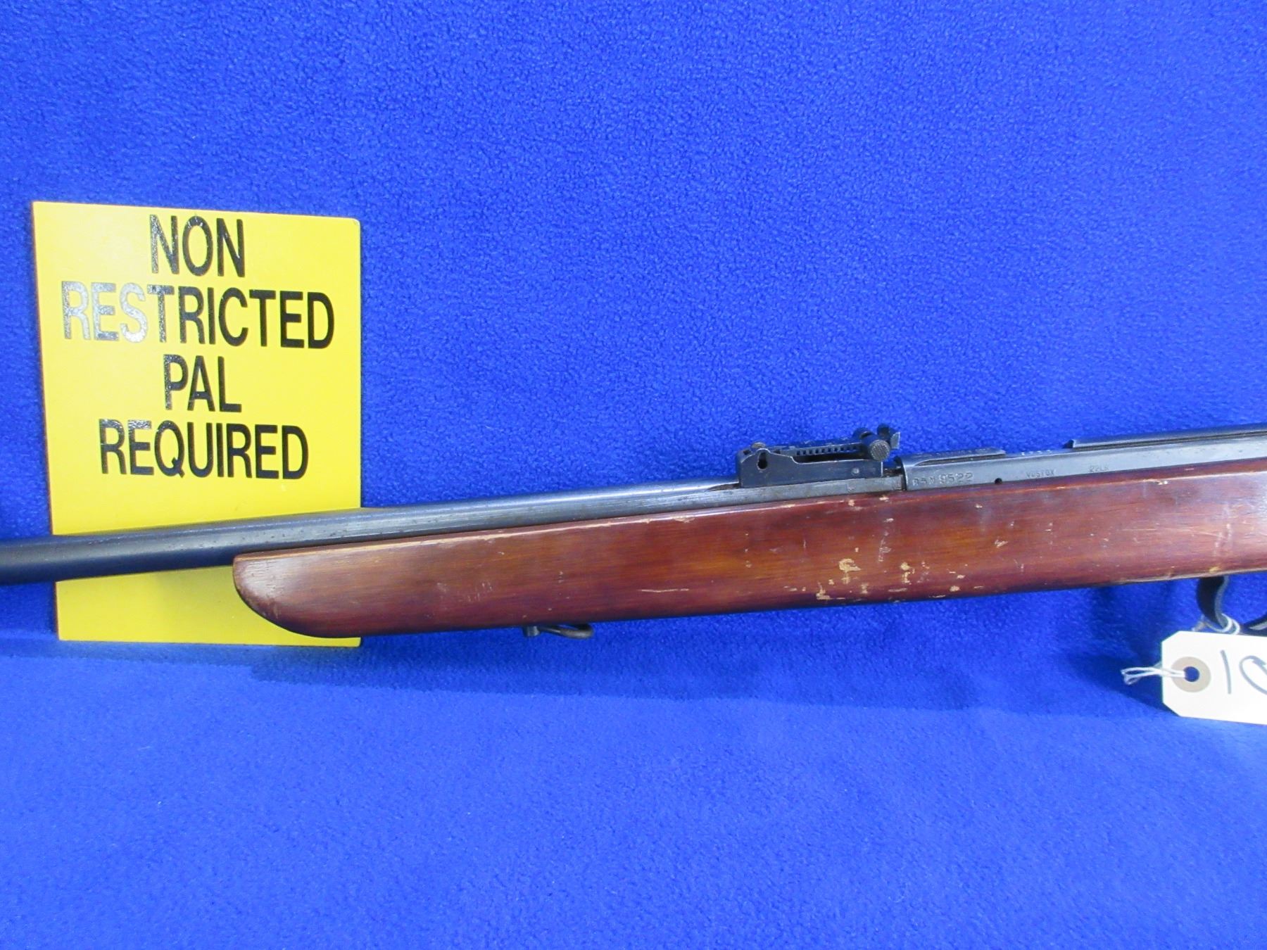 Non-Restricted - TOZ Model 8-01 in 22 LR - Marked "CCCP" - This single shot bolt action rifle appears to be in good to very good working order. Barrel is 25 1/4", rifling is good to very good, bluing is good with some light pitting, has both sights, stock is good with many usage marks, butt plate good, comes with swivels. Ser # 85N9522