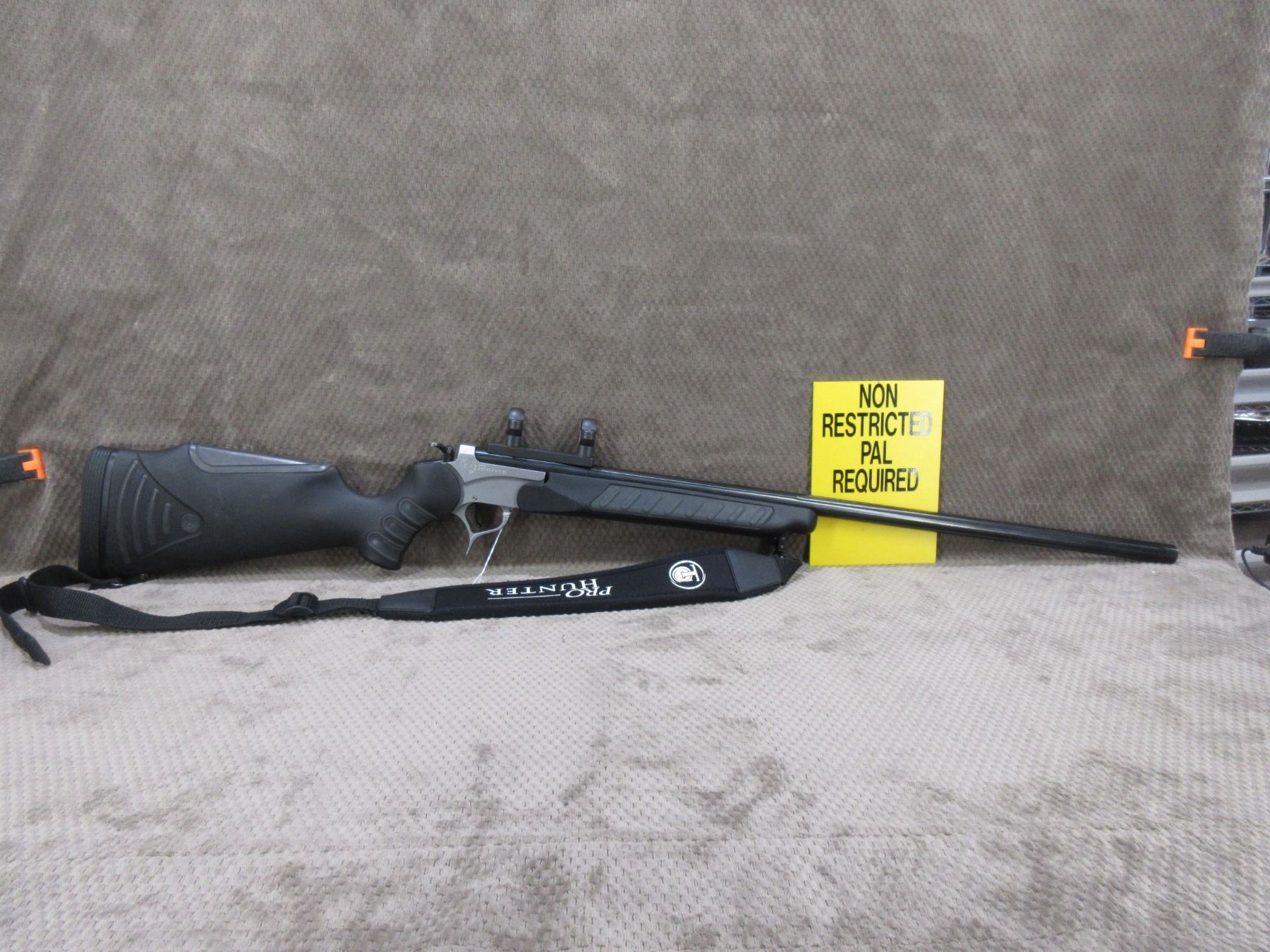 Non-Restricted - Thompson/Center Encore Pro Hunter in 270 Win. - This single shot tip barrel rifle appears to be in very good working order. Fluted barrel is 28", bluing is very good, rifling is very good, has no sights but has solid base and 1" rings, synthetic stock very good, recoil pad good, has factory swivels and strap, Ser # PS79049