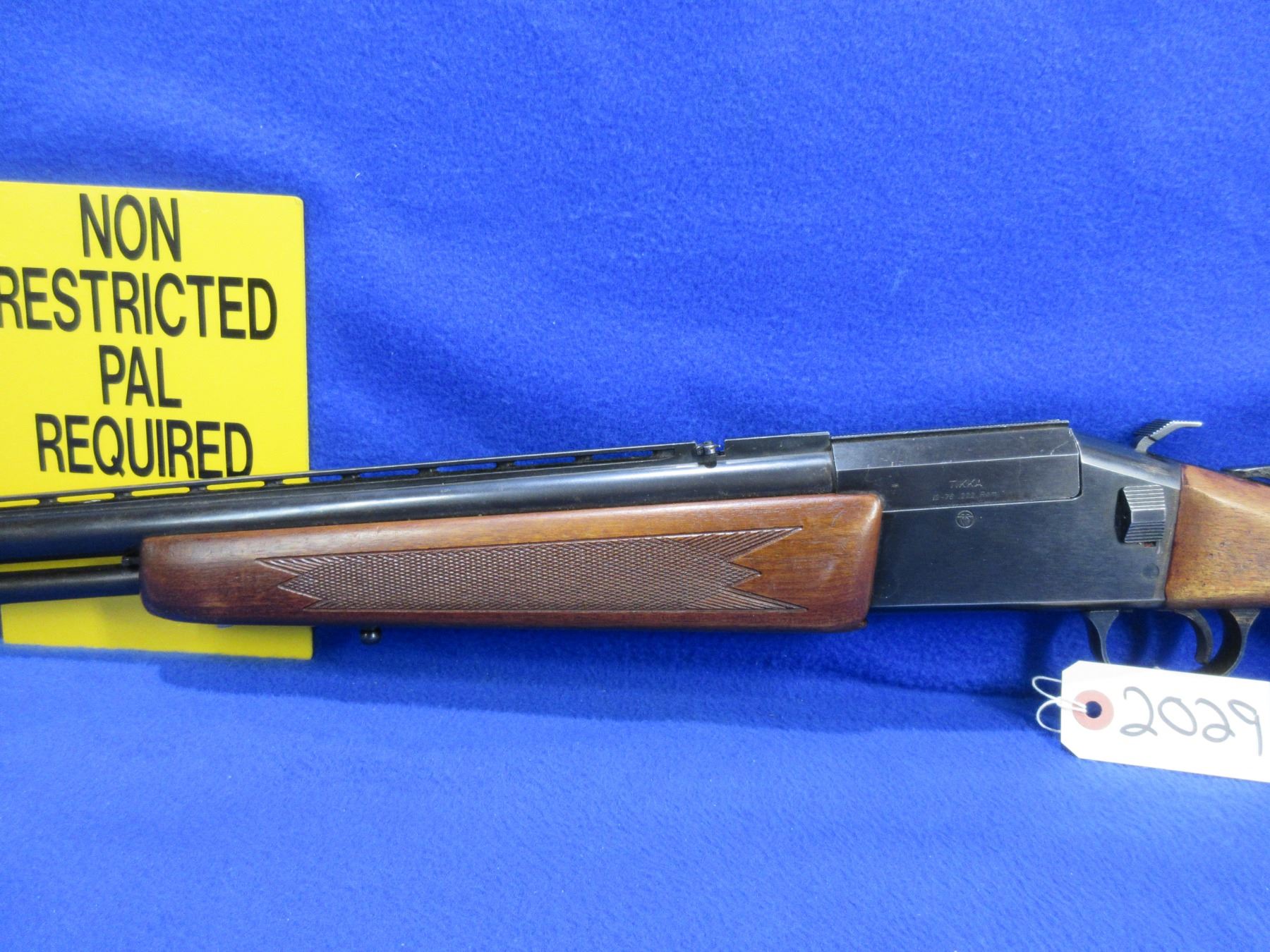 Non-Restricted - Tikka M70 Combo in 12 Ga. 3"/222 Rem. - This tip up combo shotgun/rifle appears to be in good to very good working order. 12 Ga. Vent rib barrel is 25" - bore is good to very good, rifle barrel is 23" - rifling good to very good, bluing is good, has both sights, stock has been refinished and has a slight crack where the comb has been added and has been shortened, and there is a chip in the toe, forearm has an incorrect nut, rubber pad has a chip and is not fitted correctly. Ser # 63486