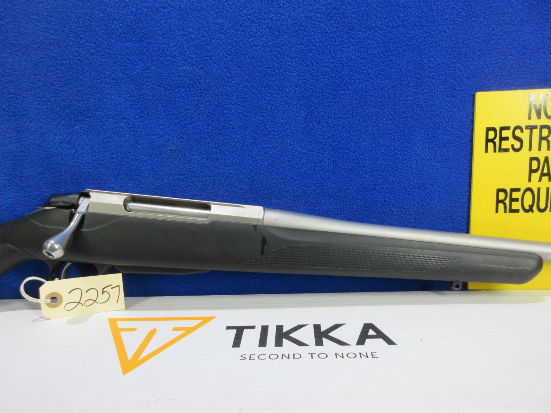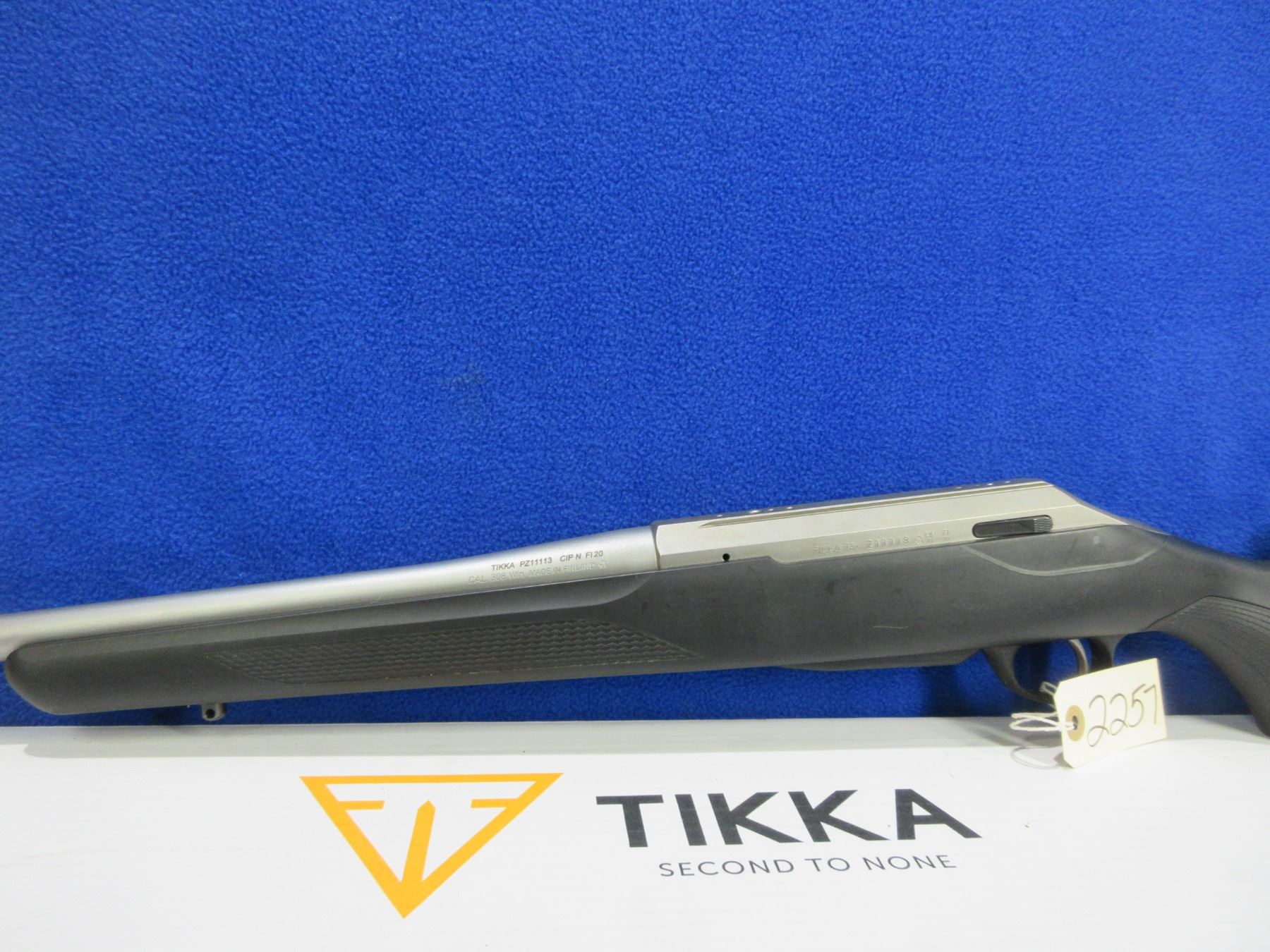 Non-Restricted - Tikka Model T3x in 308 Win. - This is a bolt action rifle with removable magazine, action appears to be in good to very good working order. Barrel is 22 1/2", rifling is good to very good, silver finish is good to very good, has no sights and has drilled and tapped integral dovetail, synthetic stock is good to very good, length of pull is 14", rubber recoil pad good, comes with swivel studs, swivels and original box. Ser # Z11113