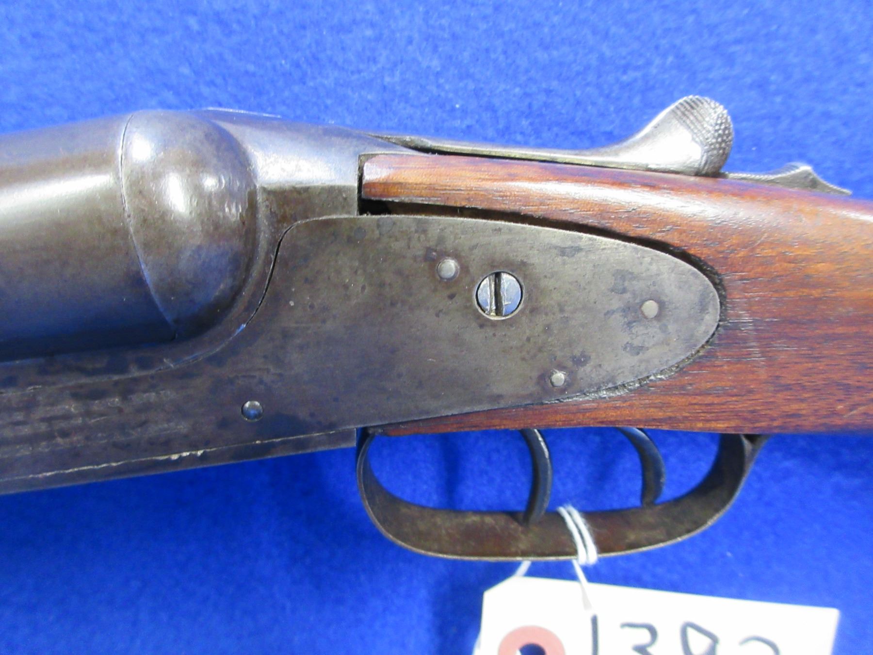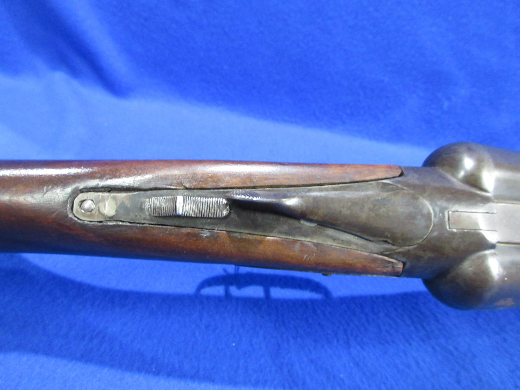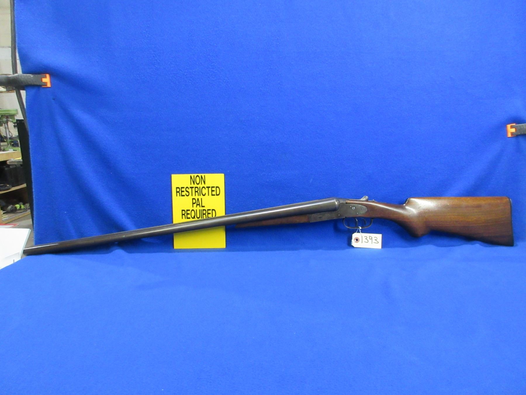 Non-Restricted - Tobin Arms Mfg. SXS in 12 Ga. 2 3/4" - This tip up SXS shotgun appears to be in good working order. Barrels are 30", right bore is good, left bore has two dents at approx. 7" and 10" from muzzle, bluing is turning brown or gone, front bead sight is broken off, stock is good but not fitted correctly, forearm is good for age, butt plate good. Ser # 15505