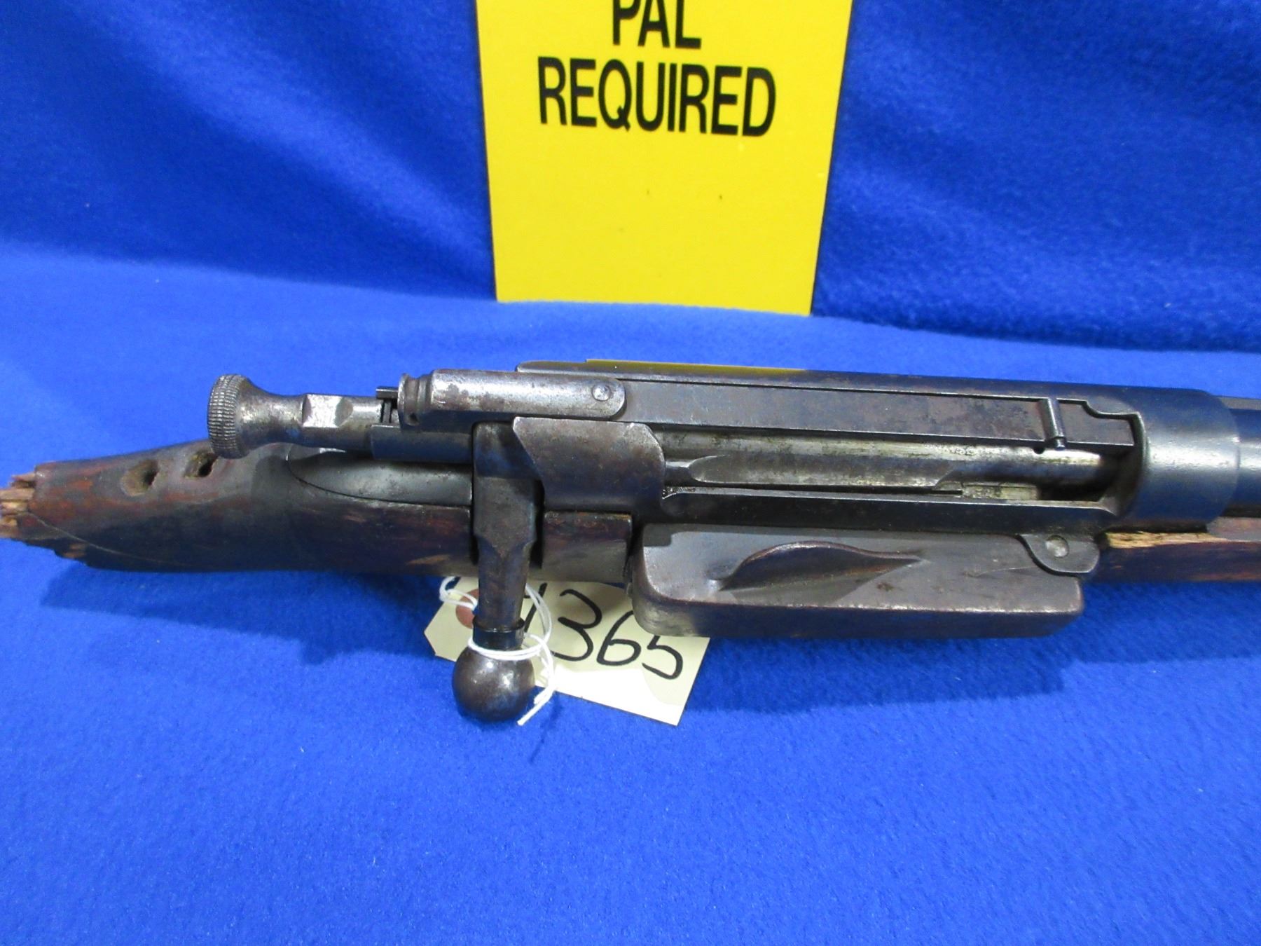 Non-Restricted - U.S. Springfield 1899 in 30-40 Krag - This bolt action rifle with side load magazine appears to be in good working order but stock is broken. Barrel is 21 3/4", bore is poor, bluing is fair but heavily pitted, has rear sight, front sight is bent and has been welded, stock is broken off, trigger guard is missing. Ser #357010