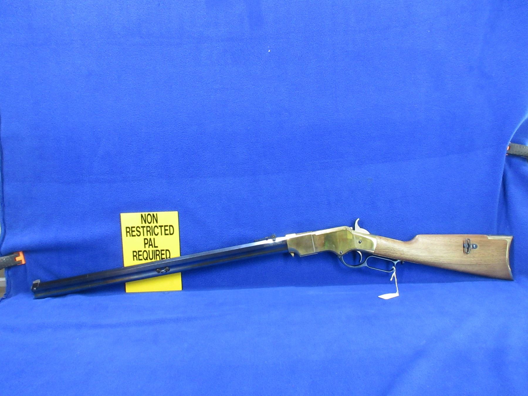 Non-Restricted - Uberti Model 1860 Henry in 44-40 Cal. - This lever action rifle with tube magazine appears to be in very good working order, appears in like new condition. Octagon barrel is 24", rifling is very good, bluing is very good, has both sights, stock very good, brass crescent butt plate very good. Ser # 06450