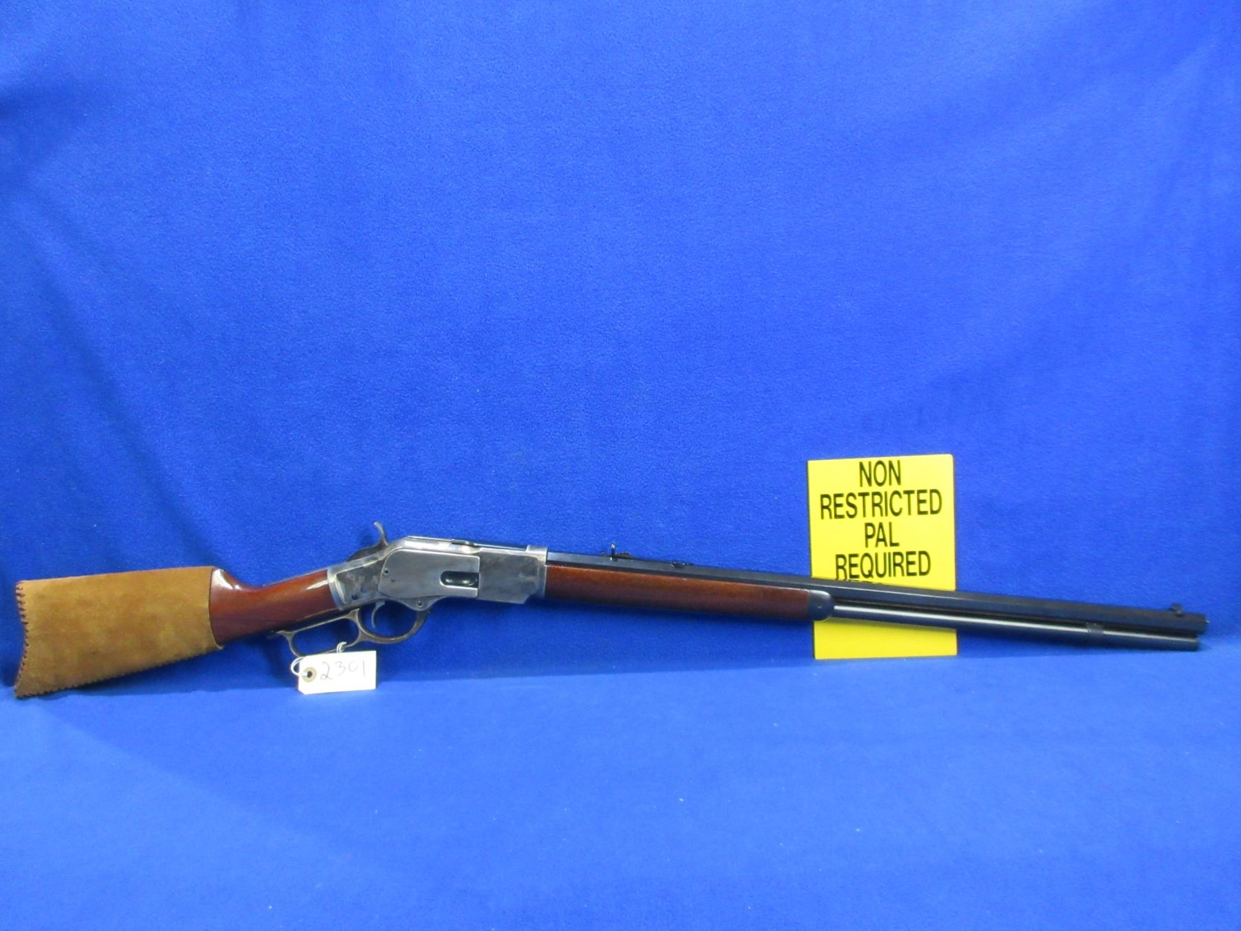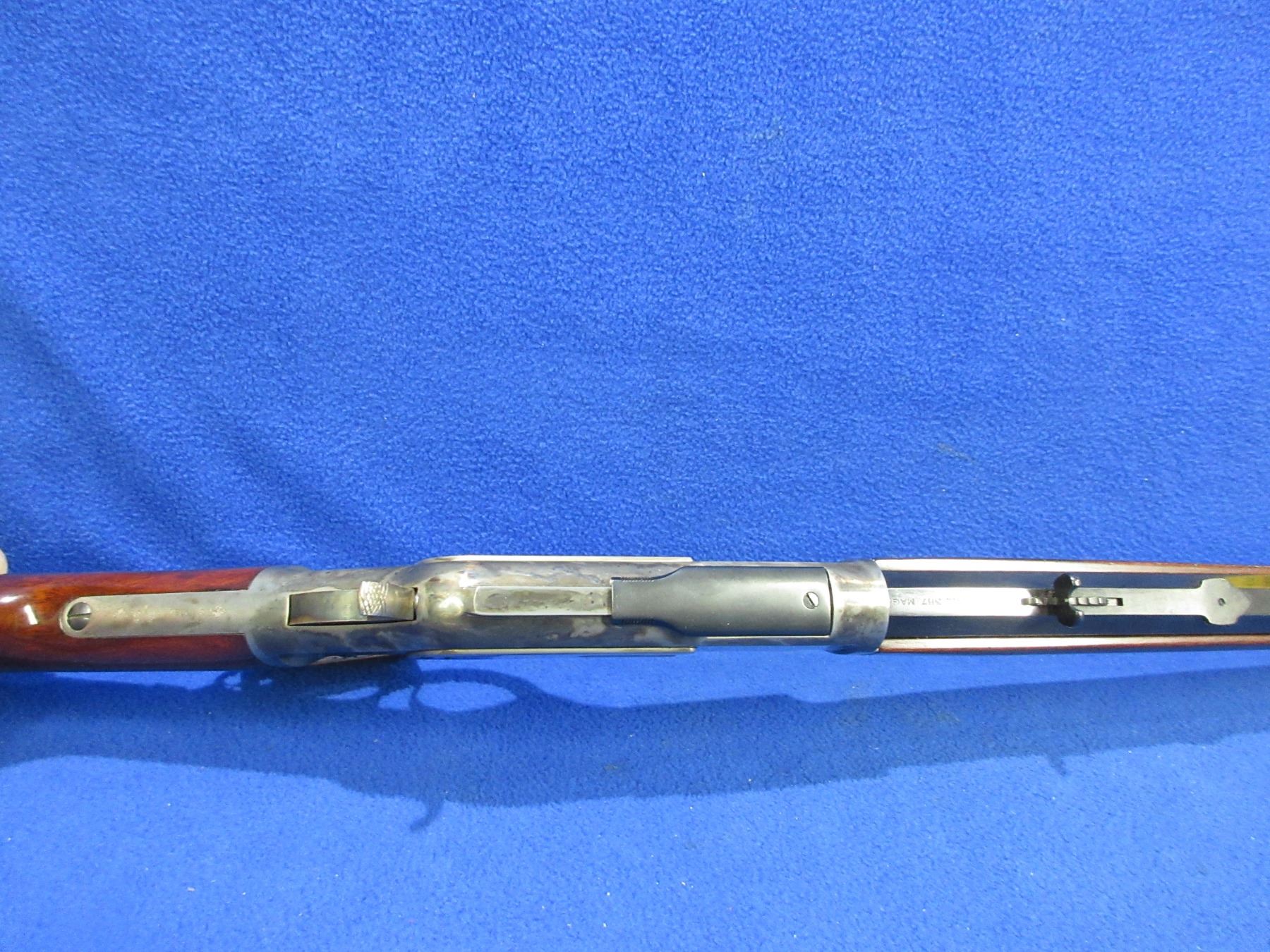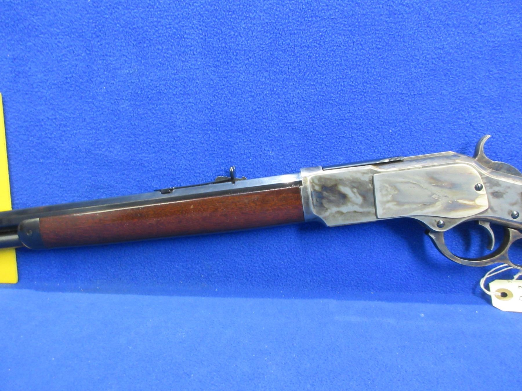 Non-Restricted - Uberti Model 1873 in 357 Mag - This is a lever action rifle with tube magazine, case hardened action appears to be in very good working order. Octagon barrel is 24", rifling is very good, bluing is very good, has both sights, stock and forearm are good to very good with minor handling marks, length of pull is 13". Catalogue #1584, comes with suede rifle butt cover. Ser # W03039