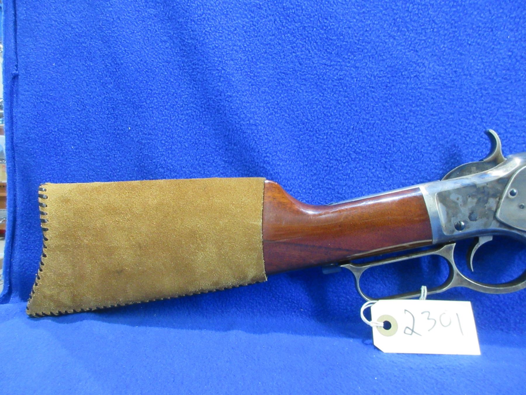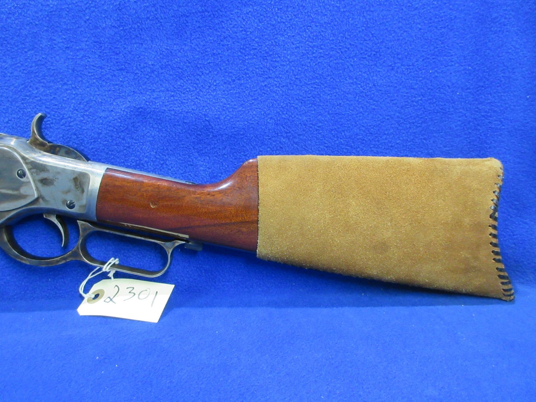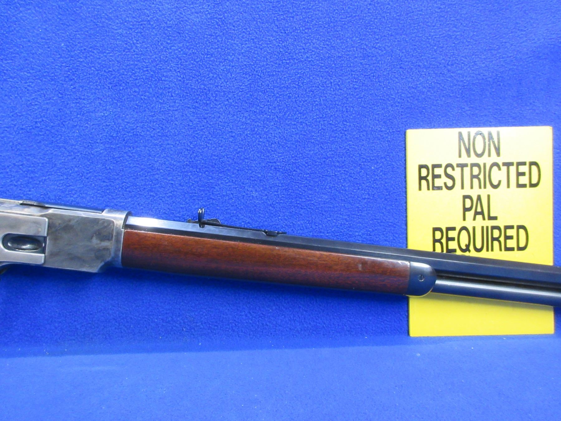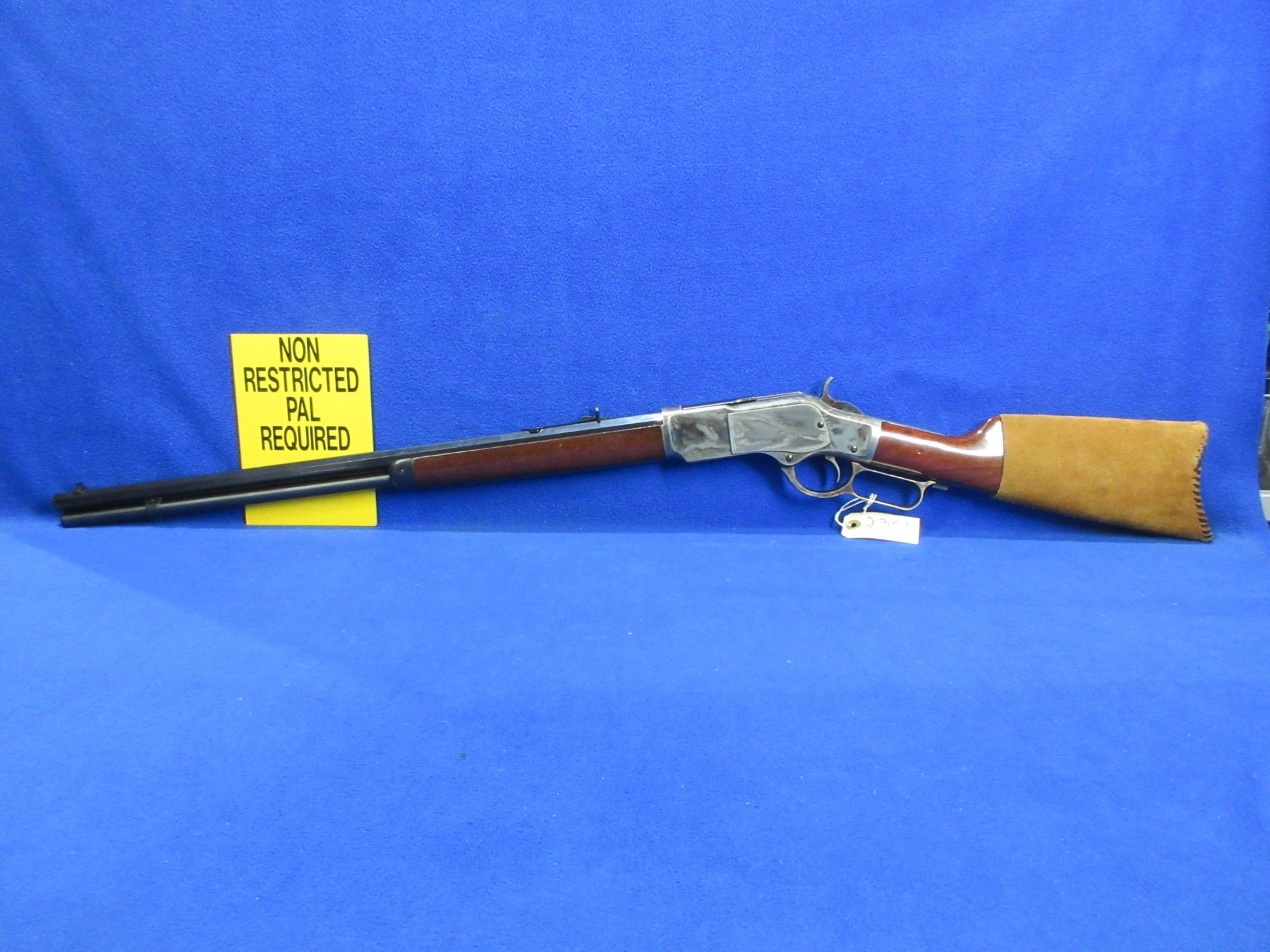 Non-Restricted - Uberti Model 1873 in 357 Mag - This is a lever action rifle with tube magazine, case hardened action appears to be in very good working order. Octagon barrel is 24", rifling is very good, bluing is very good, has both sights, stock and forearm are good to very good with minor handling marks, length of pull is 13". Catalogue #1584, comes with suede rifle butt cover. Ser # W03039