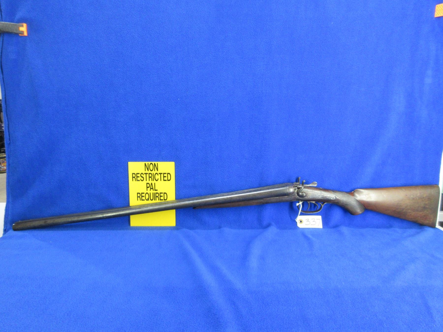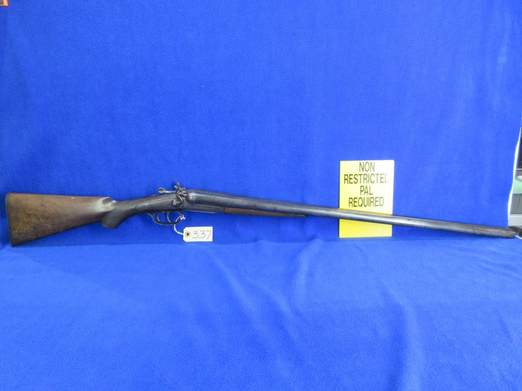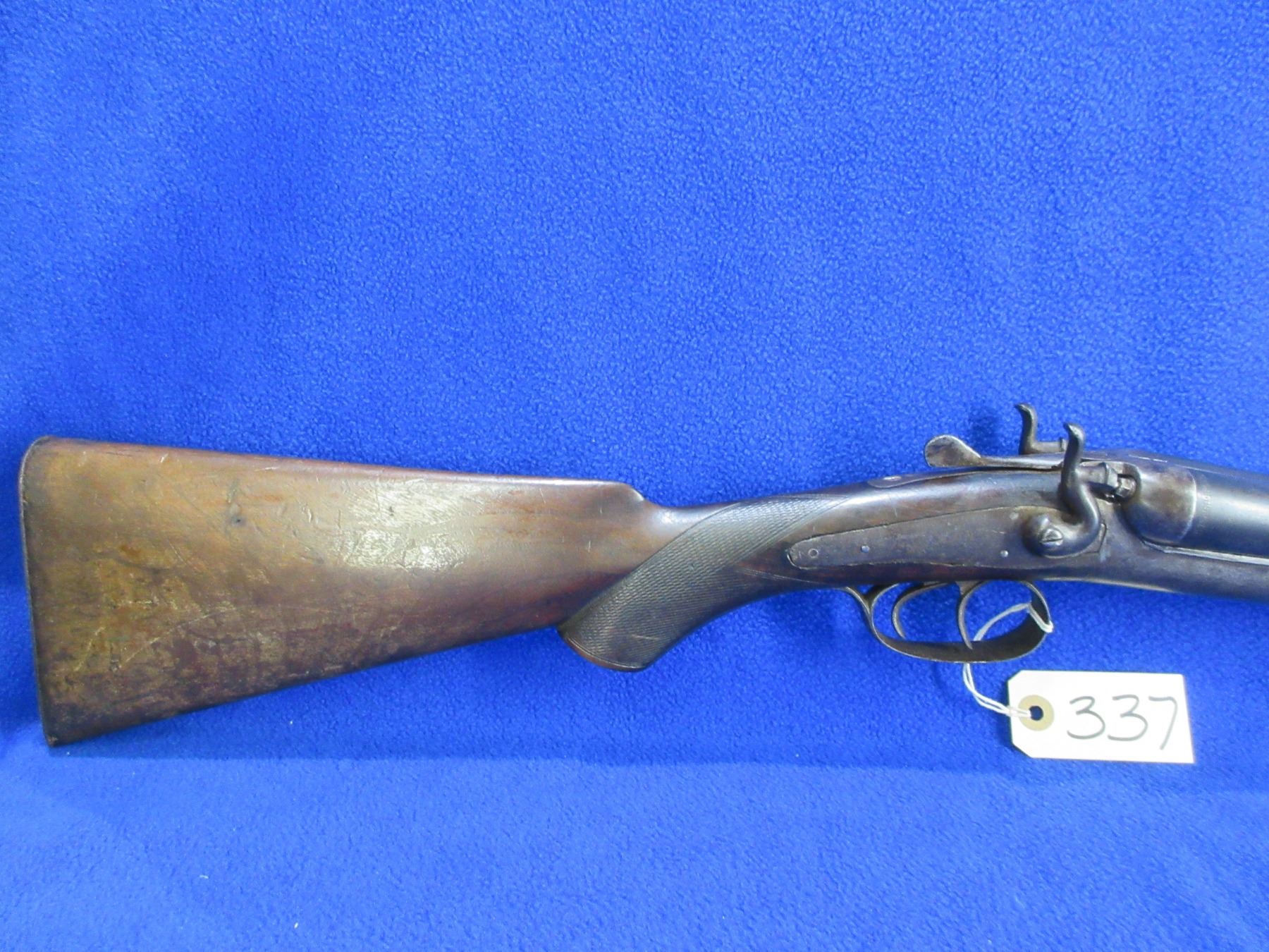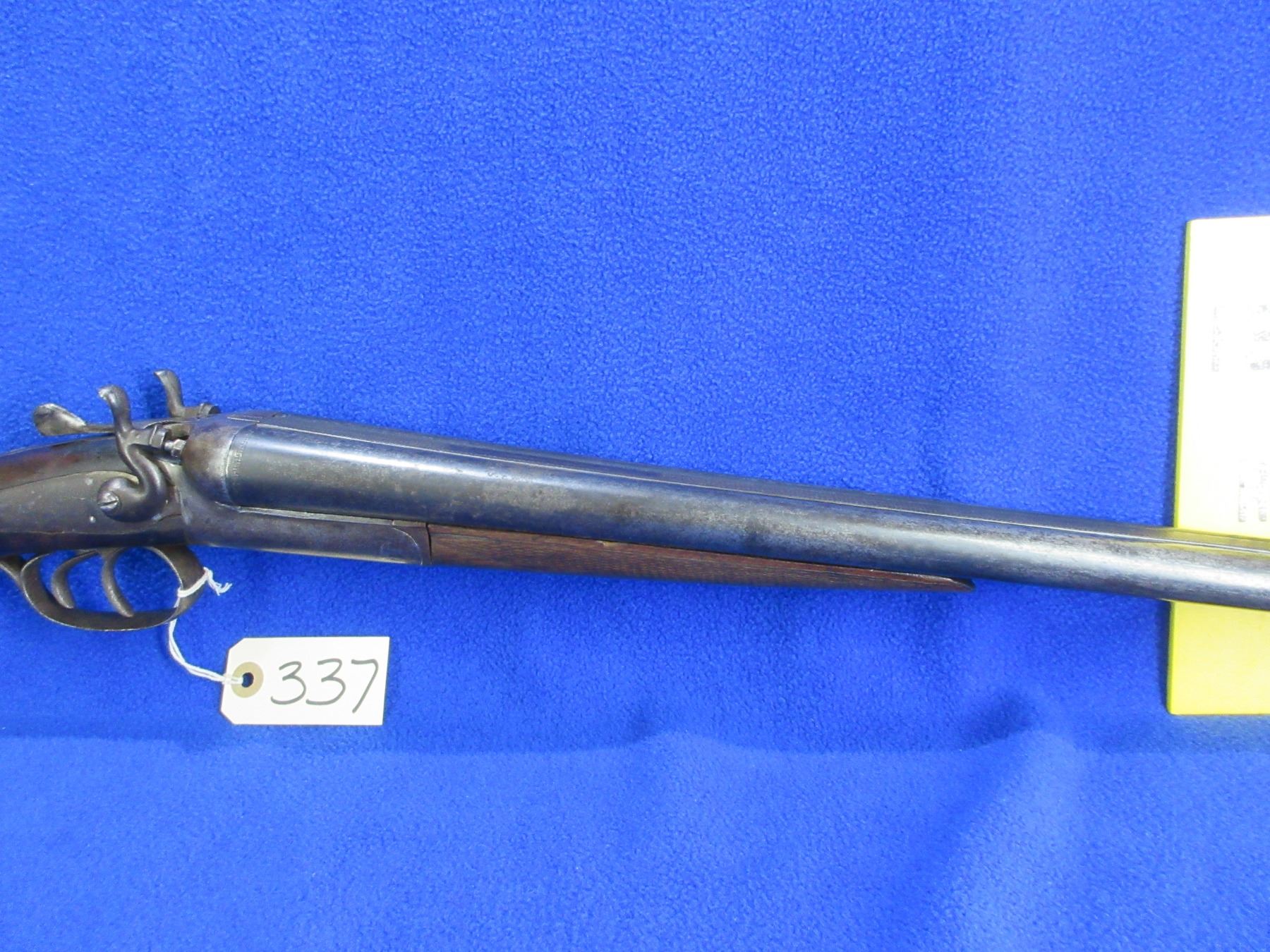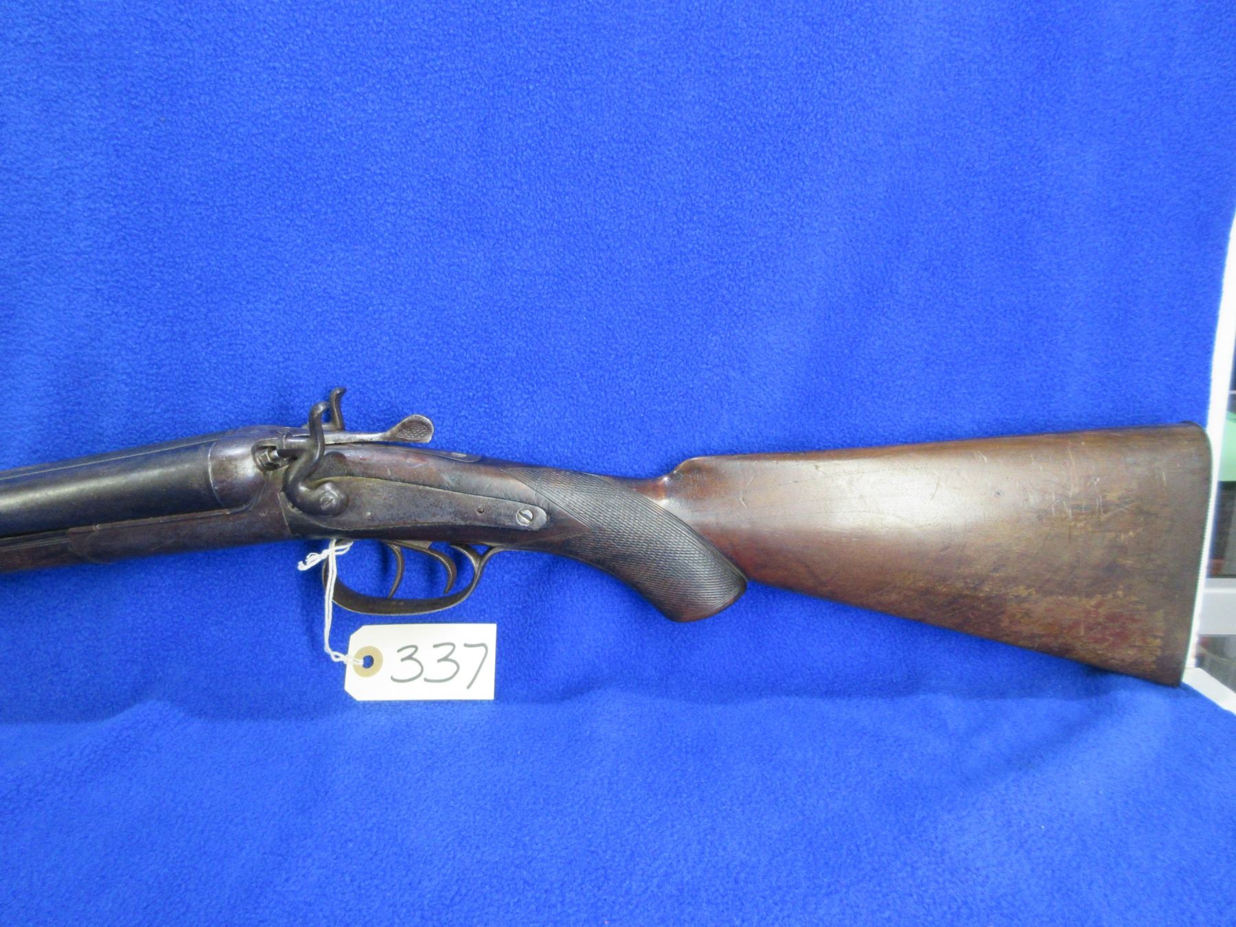Non-Restricted - Unknown SXS in 12 Ga. 2 3/4" - This is a tip up SXS hammer shotgun, action is tight and appears to be in working order. Barrels are 30", bores are fair to good, bluing is turning grey with some rust and pitting, has bead front sight, stock is good for age with many usage marks, forearm is good for age with usage marks, metal butt plate. Ser # 19009