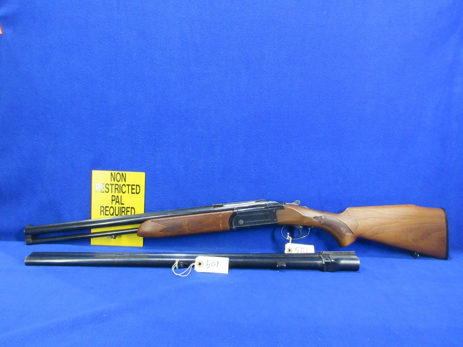 Non-Restricted - Valmet Model 212 Combo in 12 Ga. 2 3/4"/222 Rem. - This is a tip up combo shotgun/rifle, action appears to be in good to very good working order. 12 Ga. vent rib barrels are 28", bores are good to very good, bluing is good, has front bead sight, serial # P00274. Shotgun/rifle barrels are 23 1/2" - bore is good to very good, rifling is good to very good, bluing is good but has a solder repair on the solid rib by the action, has both sights, serial # 50795. Action bluing is good, stock is good to very good, forearm is good to very good with minor usage marks, length of pull is 14", butt plate good. Ser # 50795