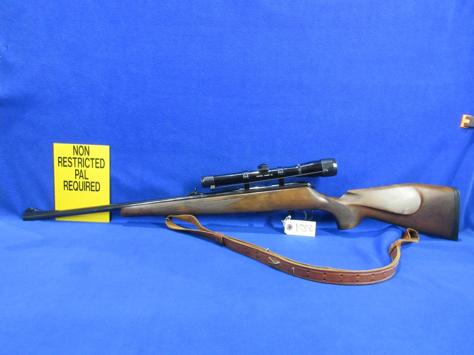 Non-Restricted - Voere Germany in 22 LR - This bolt action rifle with removable magazine appears to be in very good working order. Barrel is 21 1/2", rifling is very good, bluing is good to very good, has both sights and a Bushnell Banner .22 scope with lens covers, scope appears clear, duplex crosshair. Stock is good to very good, rubber butt plate good, comes with swivels and a leather sling. Ser #884177