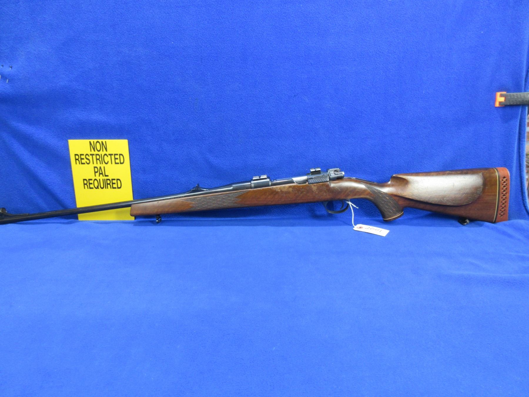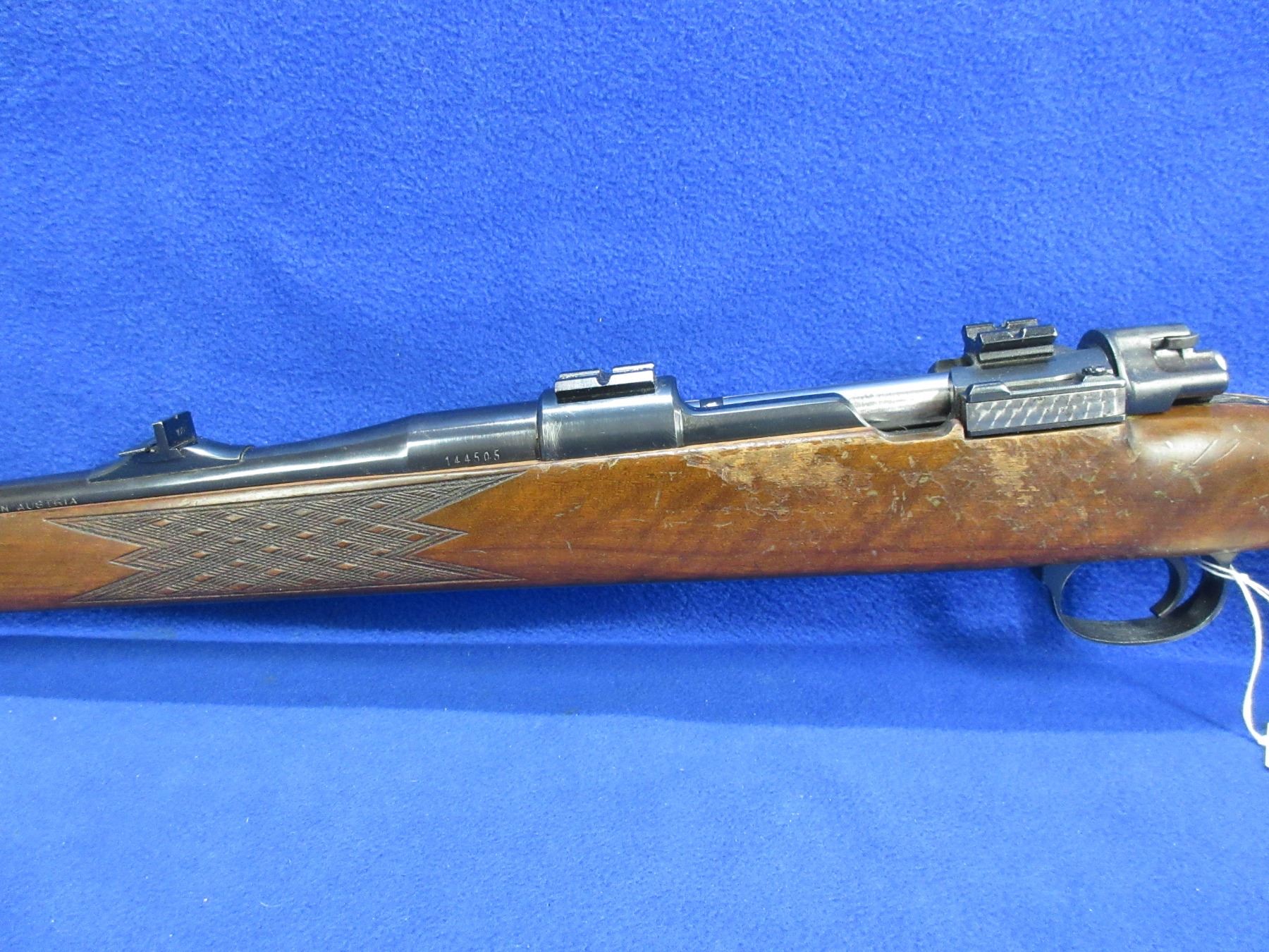 Non-Restricted - Voere Model M98 in 30-06 Sprg - This bolt action rifle with Timney trigger and floor plate magazine appears to be in good to very good working order. Barrel is 24", rifling is good to very good, bluing is good to very good, has both sights and Weaver style bases, stock is fair to good with many usage marks, rubber recoil pad good, comes with swivels. Ser # 144505