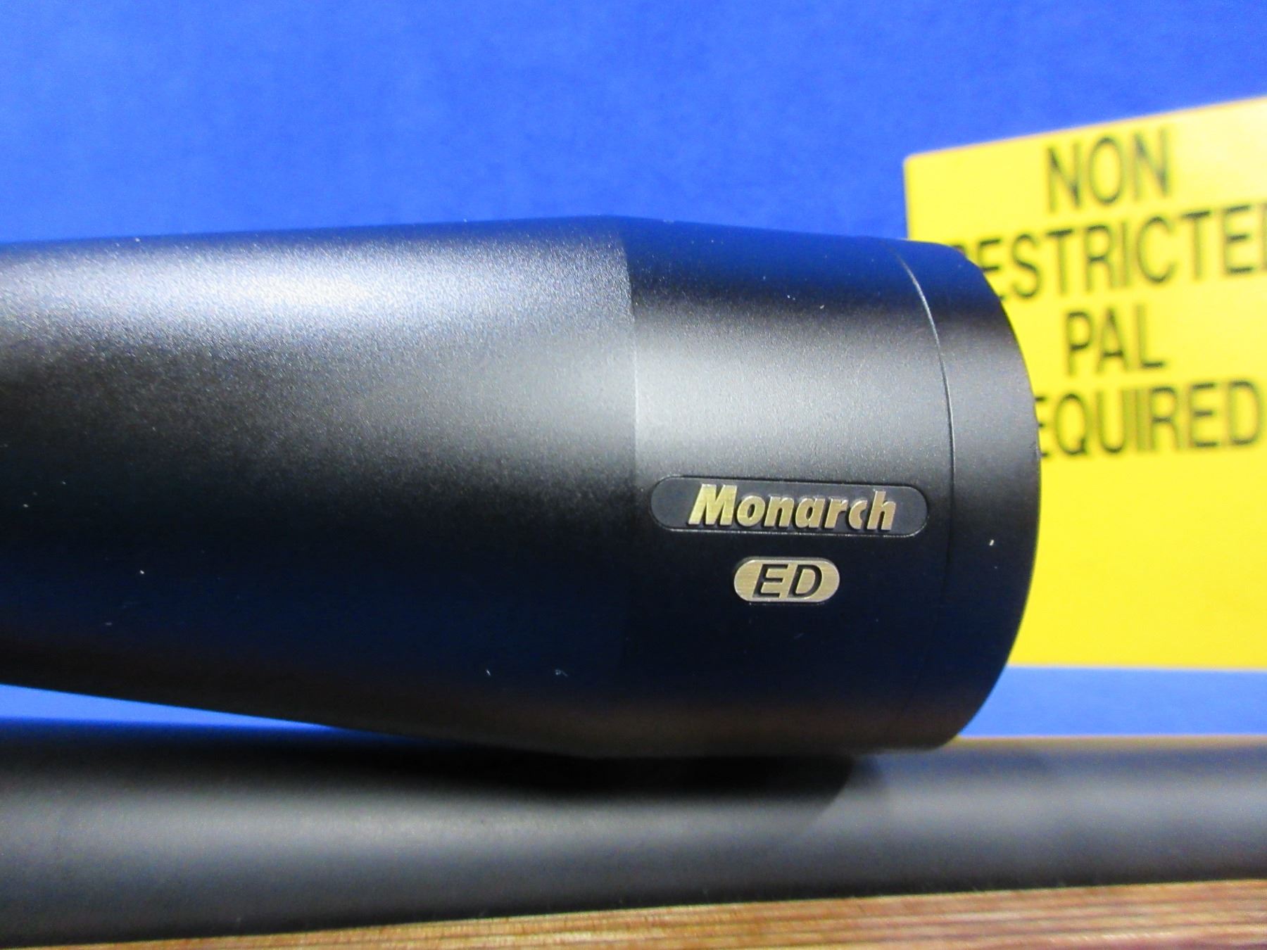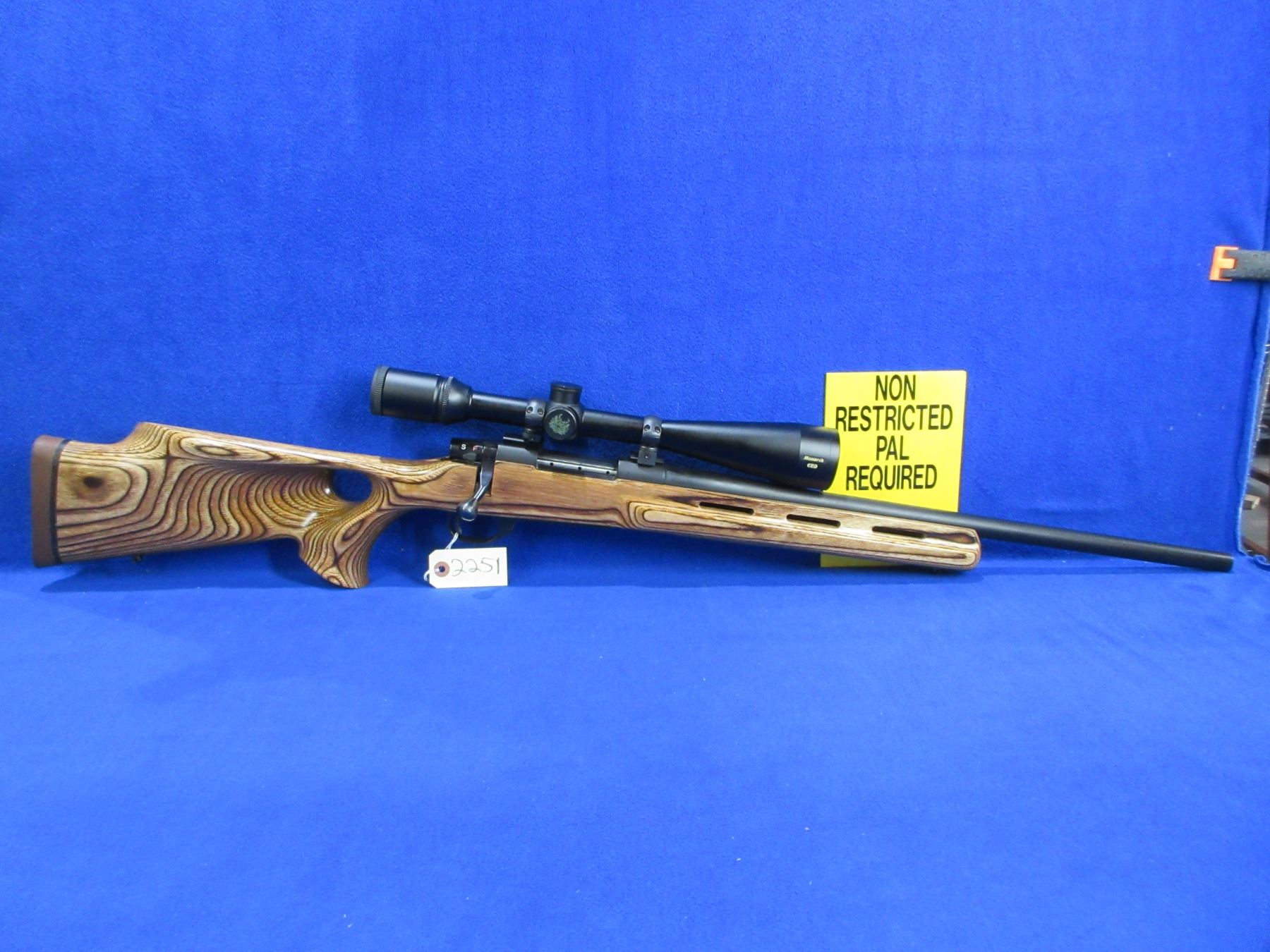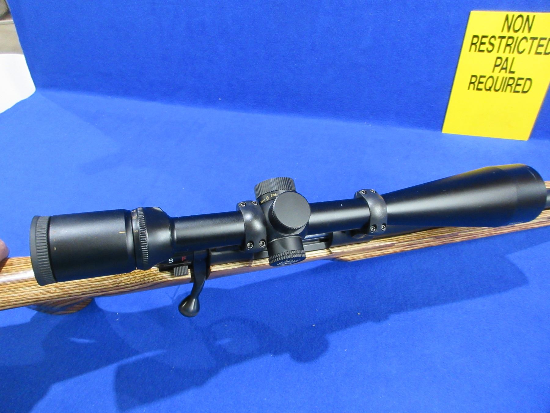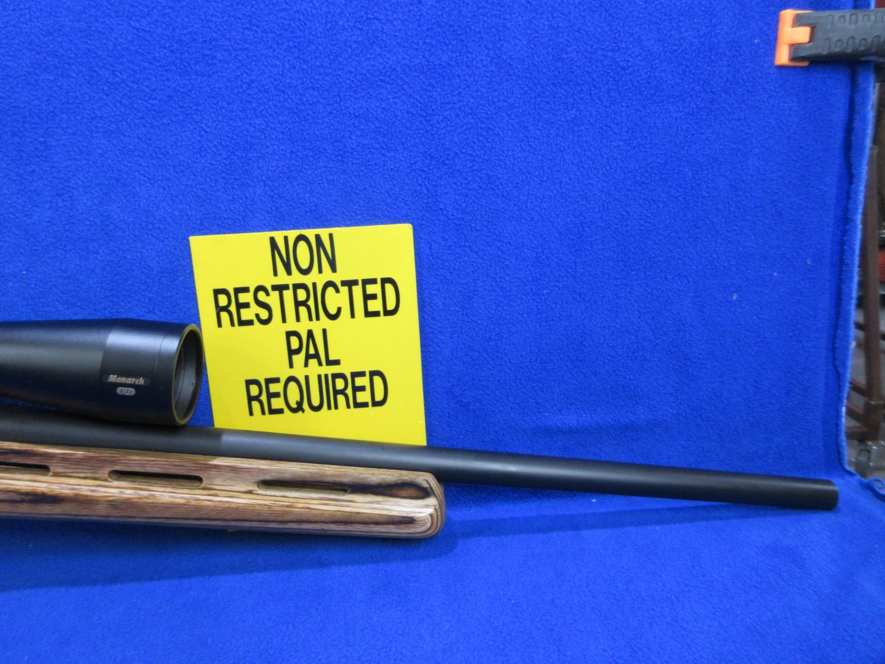Non-Restricted - Weatherby Vanguard in 224 Wby Magnum - This bolt action rifle with removable magazine appears to be in very good working order. Barrel is 22", rifling is very good, bluing is good to very good, has no sights but has Nikon Monarch ED 8-32x50 scope - fine crosshair with dot - appears clear, laminated thumbhole stock is very good, rubber recoil pad good, comes with swivel studs. Ser #VS346052