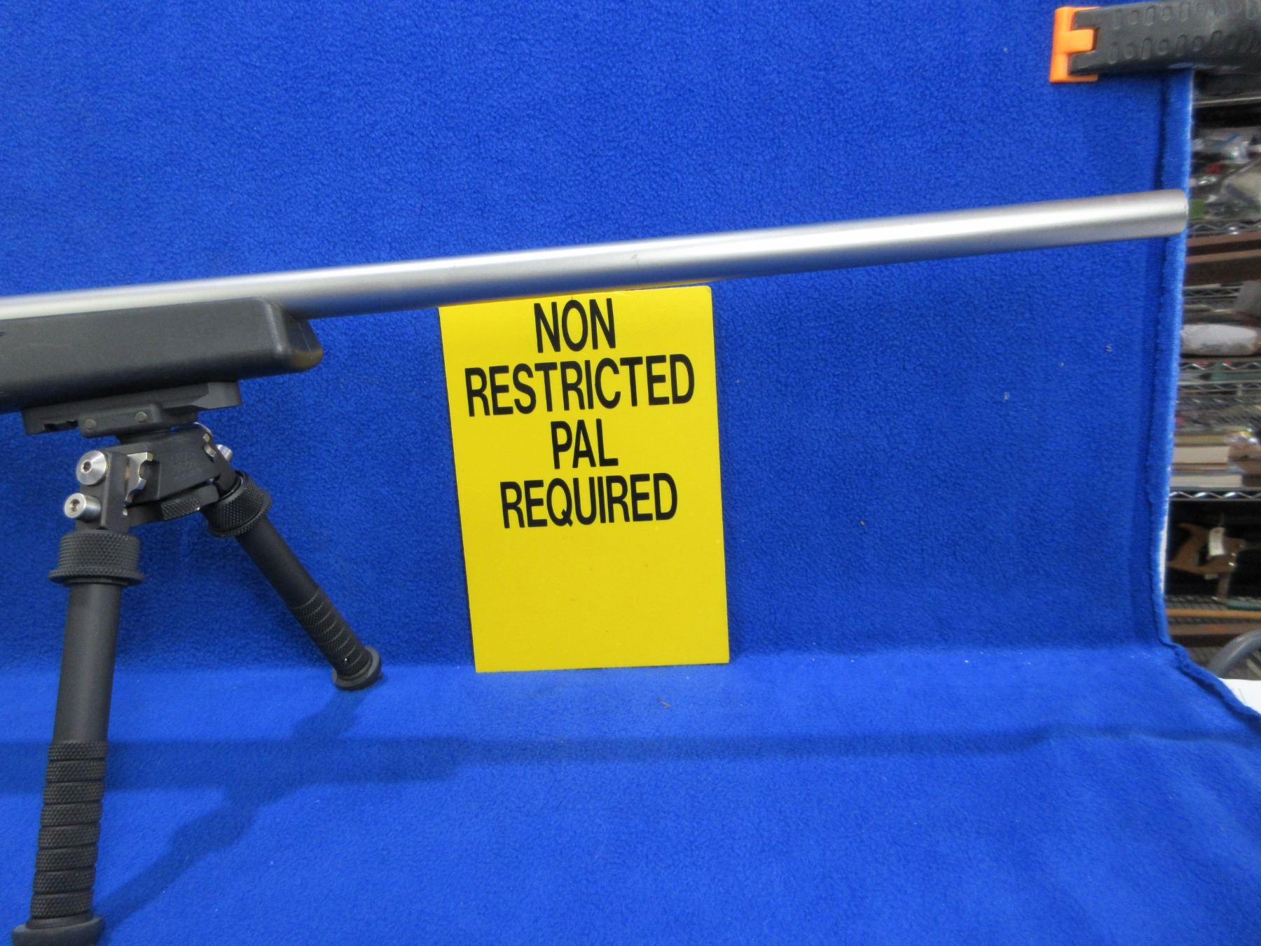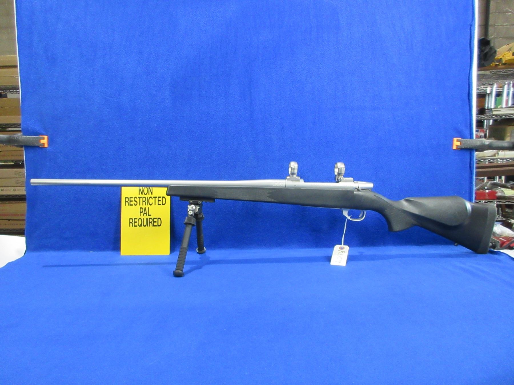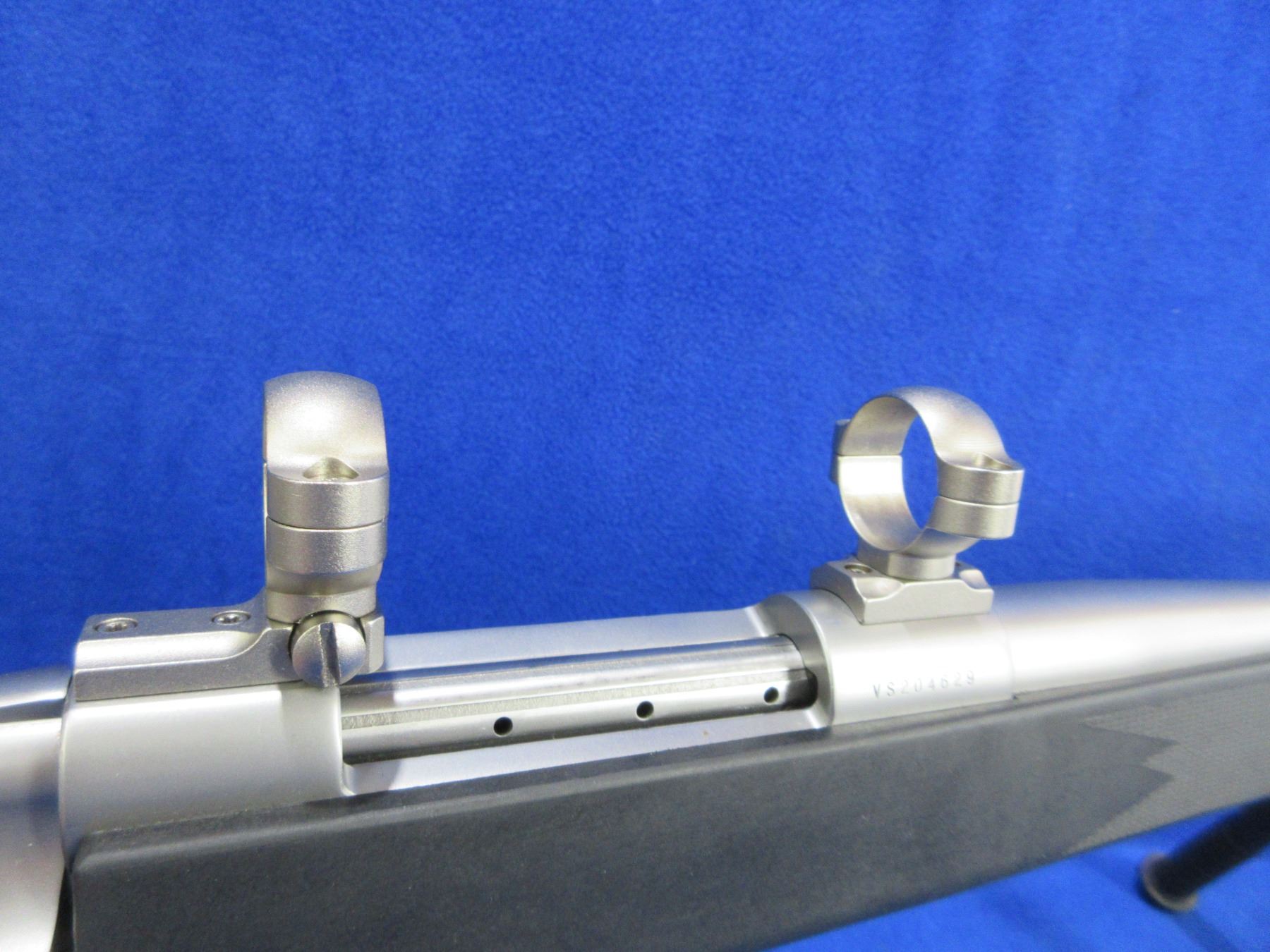 Non-Restricted - Weatherby Vanguard in 257 Wby Mag - This bolt action rifle with floorplate magazine appears to be in good to very good working order. Stainless barrel is 24", rifling is very good, stainless steel finish is very good, has no sights but comes with Leupold rings and bases, synthetic stock is good to very good, rubber recoil pad, comes with swivel studs and Atlas bipod (approx. value $400). Ser #VS204629