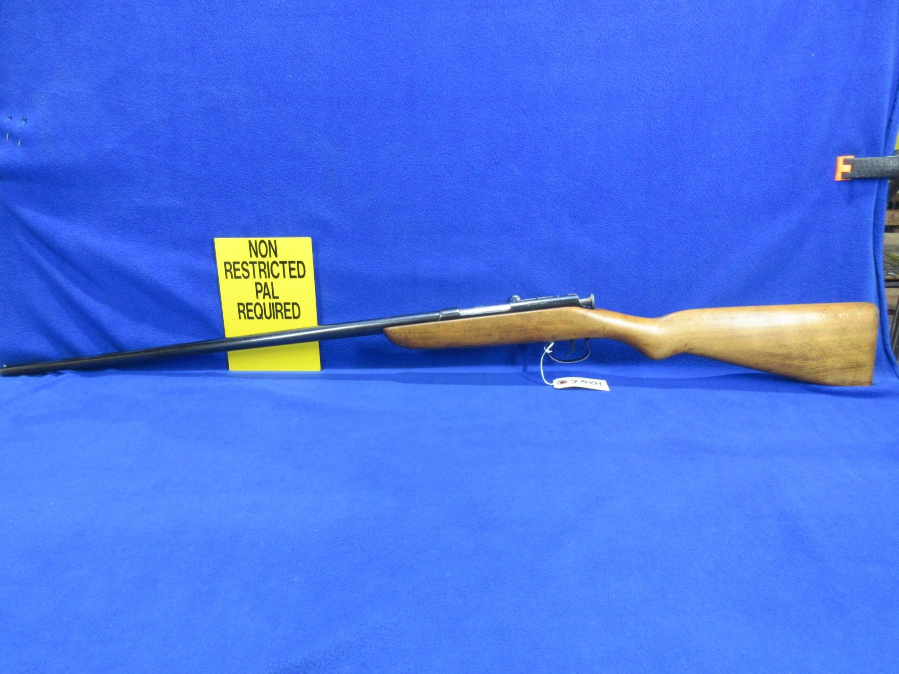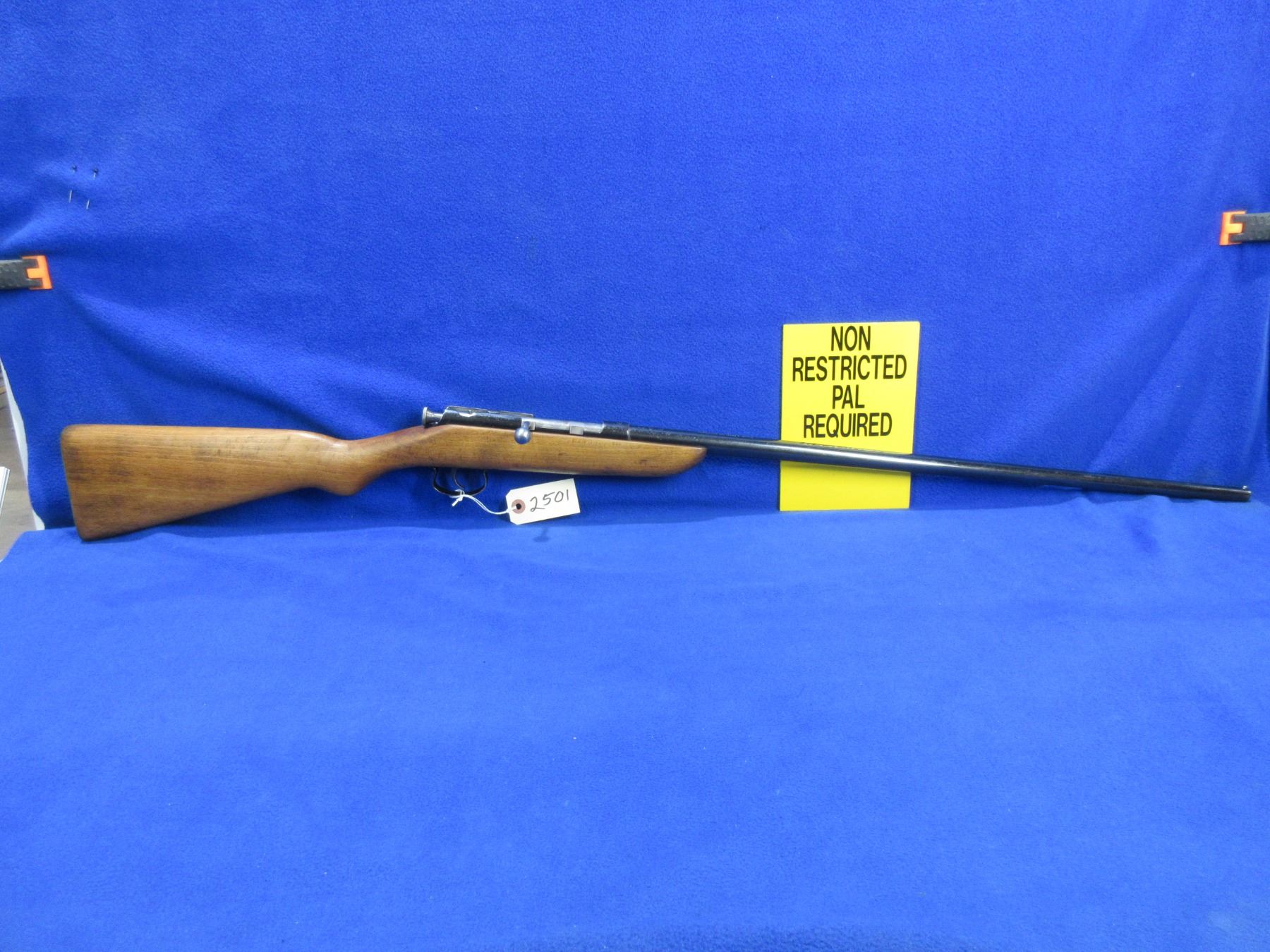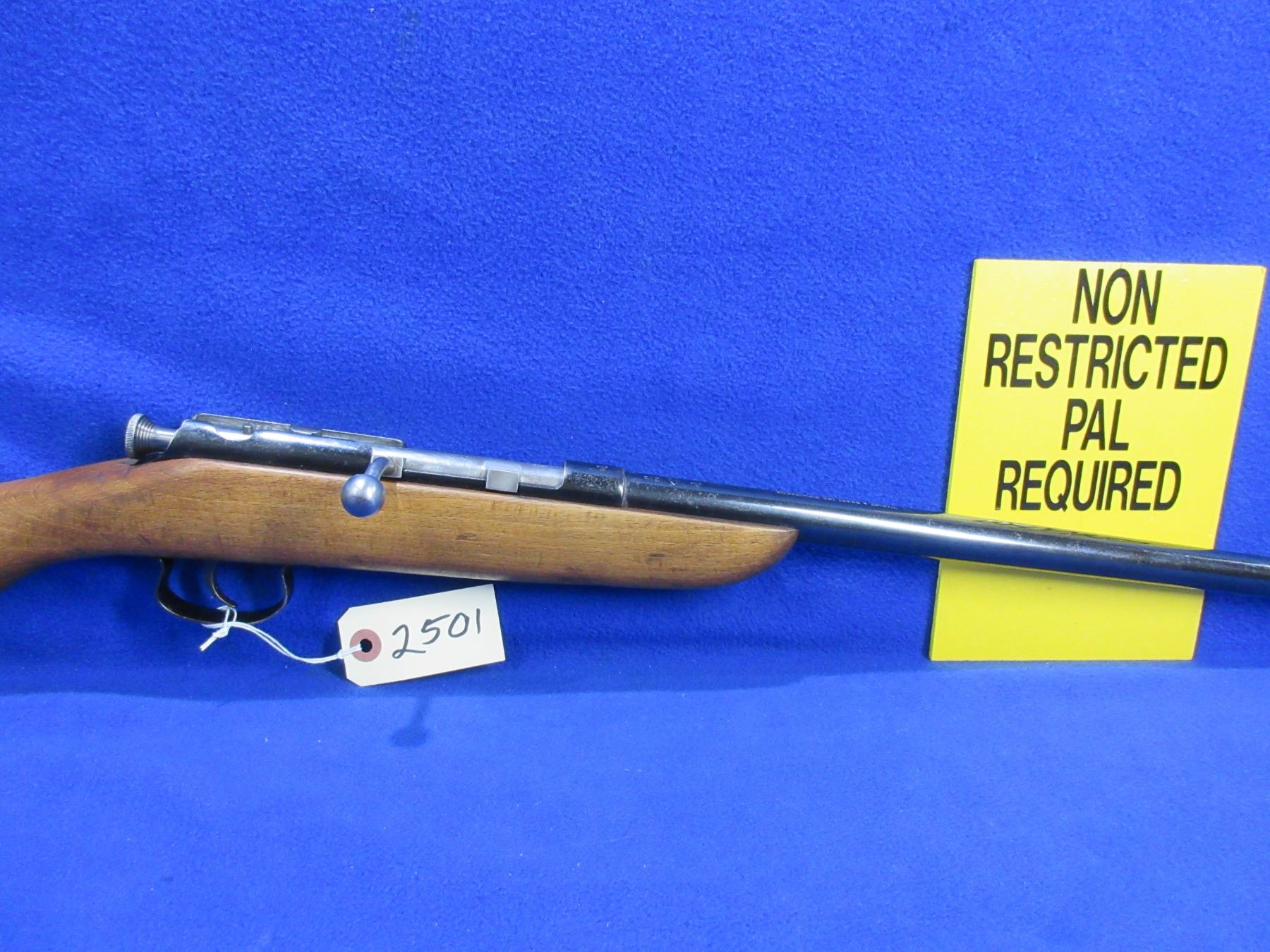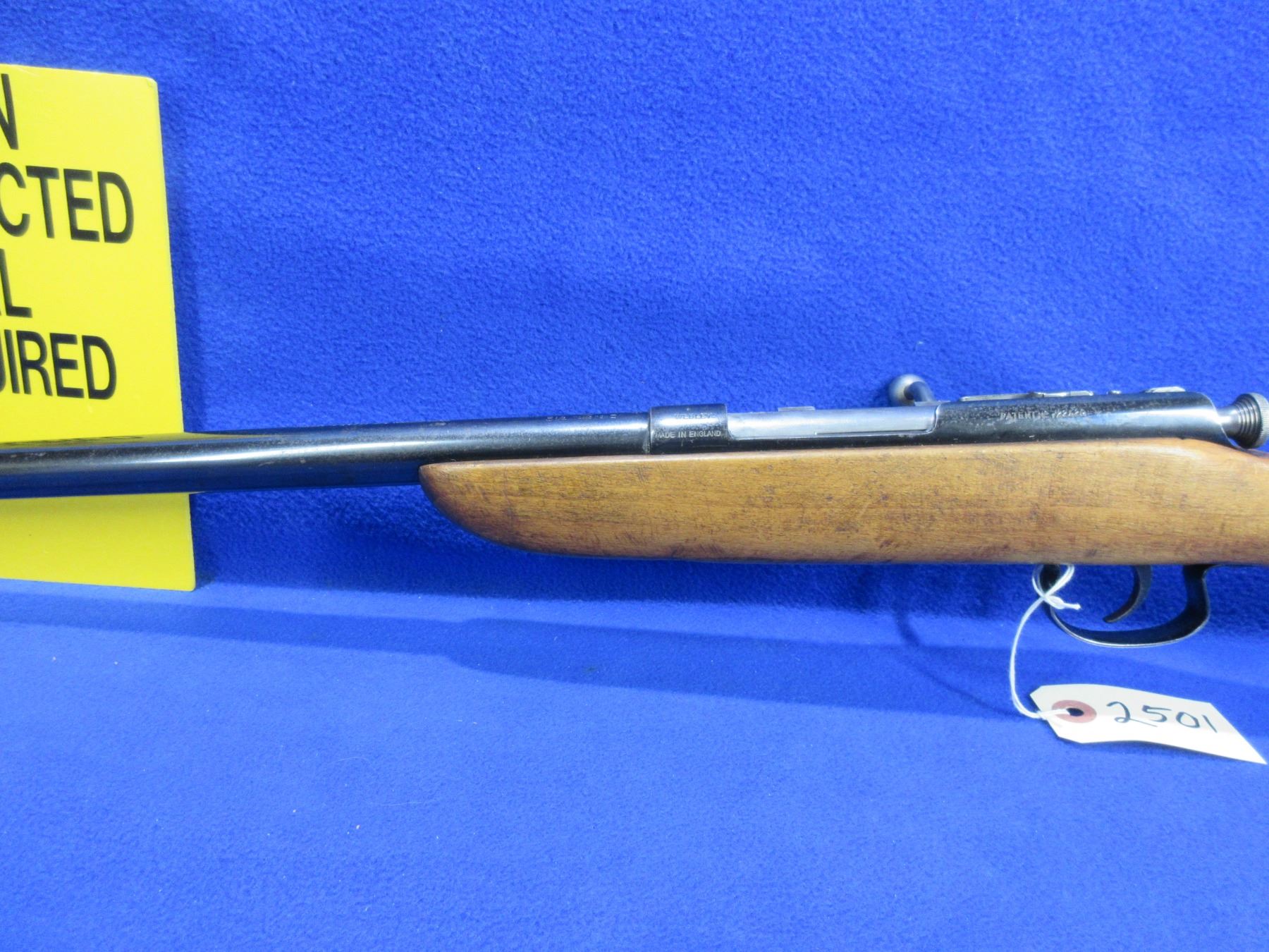 Non-Restricted - Webley & Scott in 410 Ga 2 1/2" - This single shot bolt action shotgun appears to be in good to very good working order. Barrel is 25 1/2", rifling is good to very good, bluing is good, has a front bead sight, stock is good to very good, no butt plate. Ser # None
