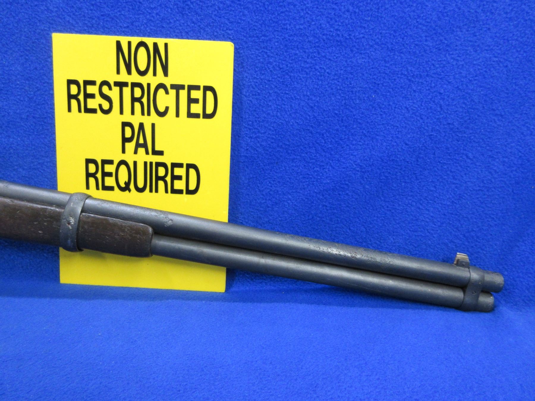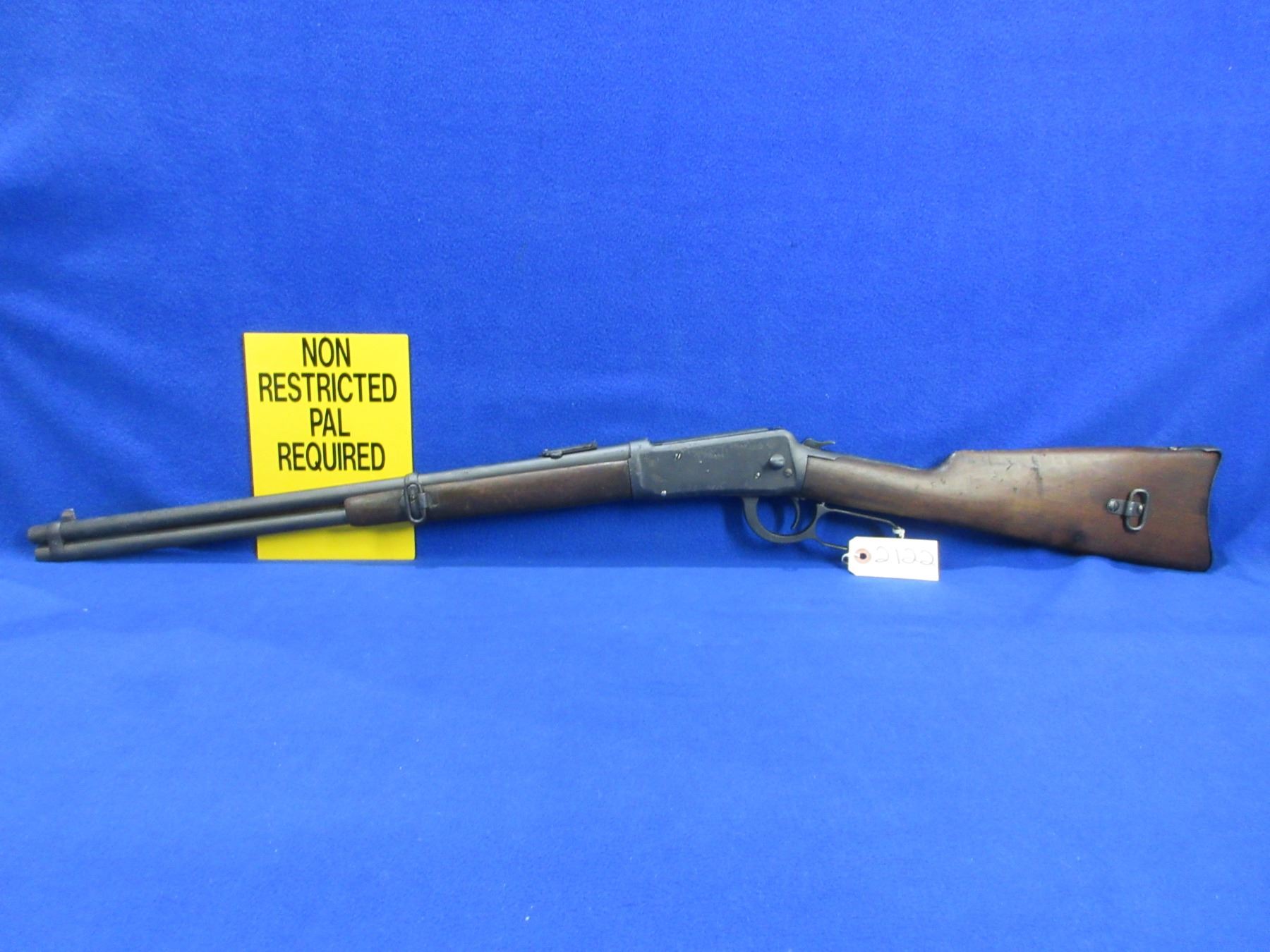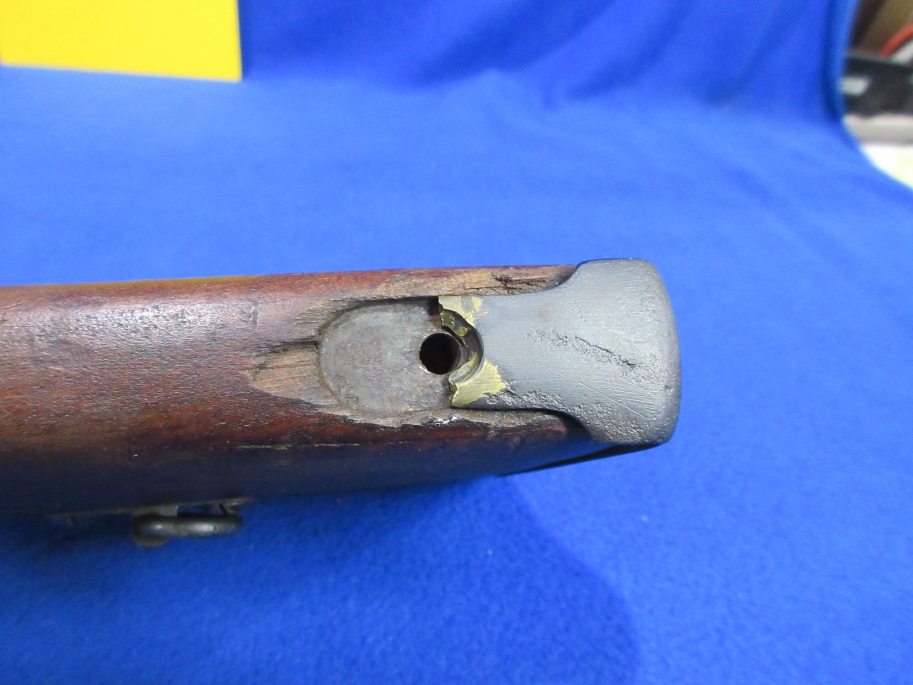Non-Restricted - Winchester Model 1894 in 30 WCF Belgian Congo or French Contract - Made in 1913, this lever action rifle with tube magazine appears to be in fair to good working order. Barrel is 20", rifling is good, barrel has been reblued over pitting, has both sights but rear sight is missing the slide, stock has a chip on the right side of the upper tang that has been glued back in, forearm has many usage marks and appears painted, metal crescent butt plate is broken at the top screw hole, saddle ring is missing, comes with side swivels . Ser #687128