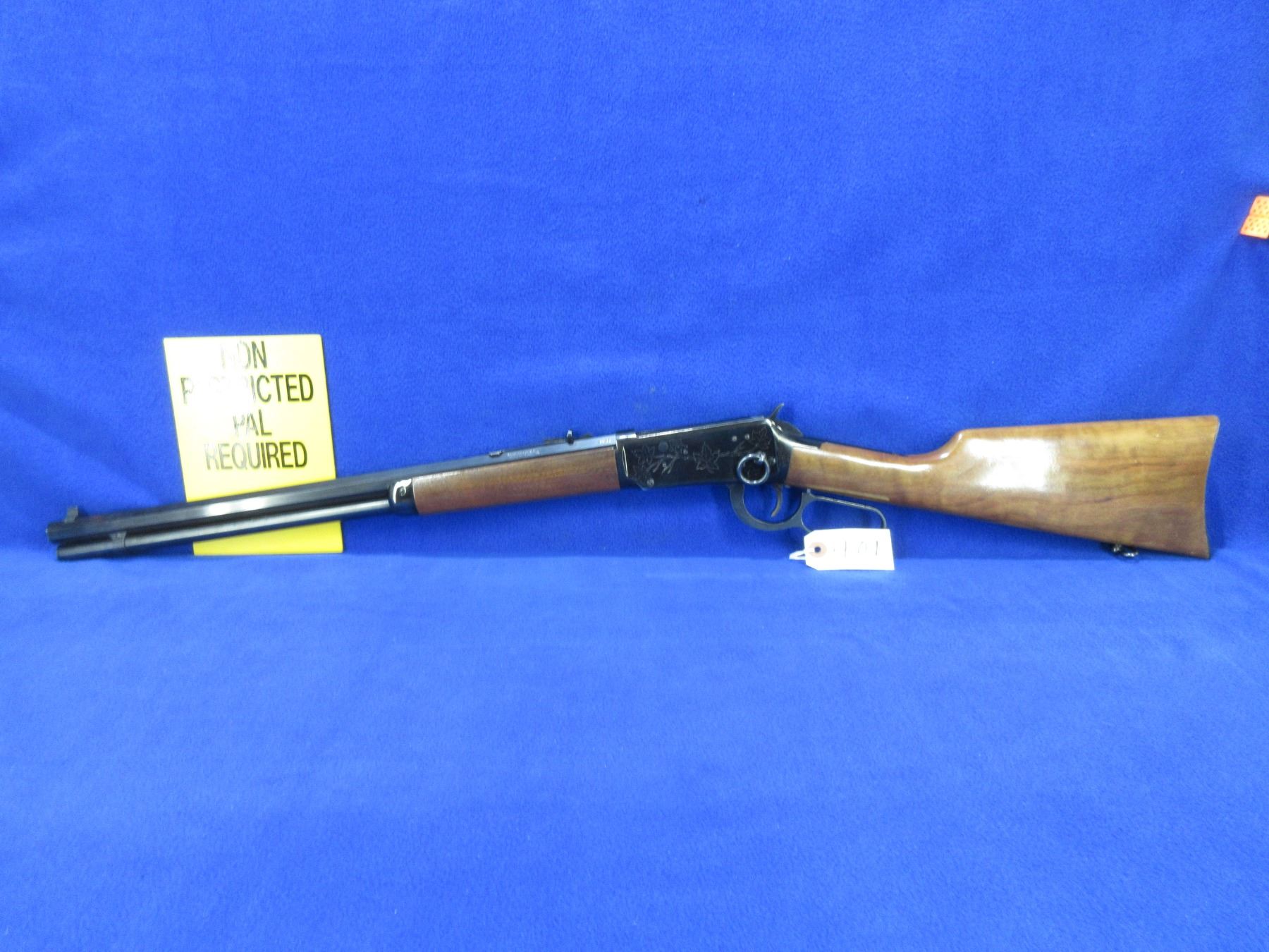 Non-Restricted - Winchester Canadian Centennial 1867 - 1967 in 30-30 - This lever action rifle with tube magazine appears to be in good to very good working order and has been fired. Octagon barrel is 20", rifling is good to very good, bluing is good with a scratch on magazine tube and marks on bottom of action, has both sights, stock and forearm are good to very good with usage marks, metal butt plate good. Ser # 7422