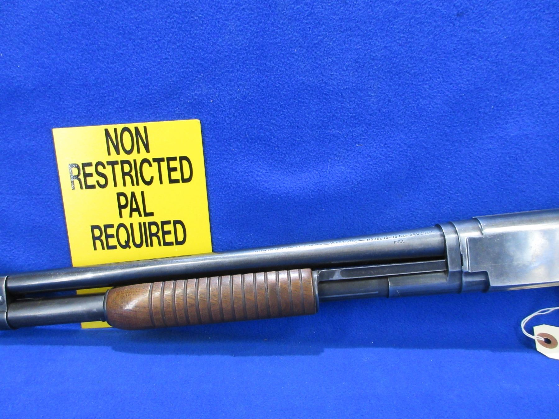 Non-Restricted - Winchester Model 12 in 12 Ga. 2 3/4" Full - This takedown pump action shotgun appears to be in good to very good working order. Barrel is 30", bore is shiny, bluing is good but turning grey, has bead front sight, stock is good with usage marks, forearm is good to very good with usage marks, butt plate good. Ser # 1215889