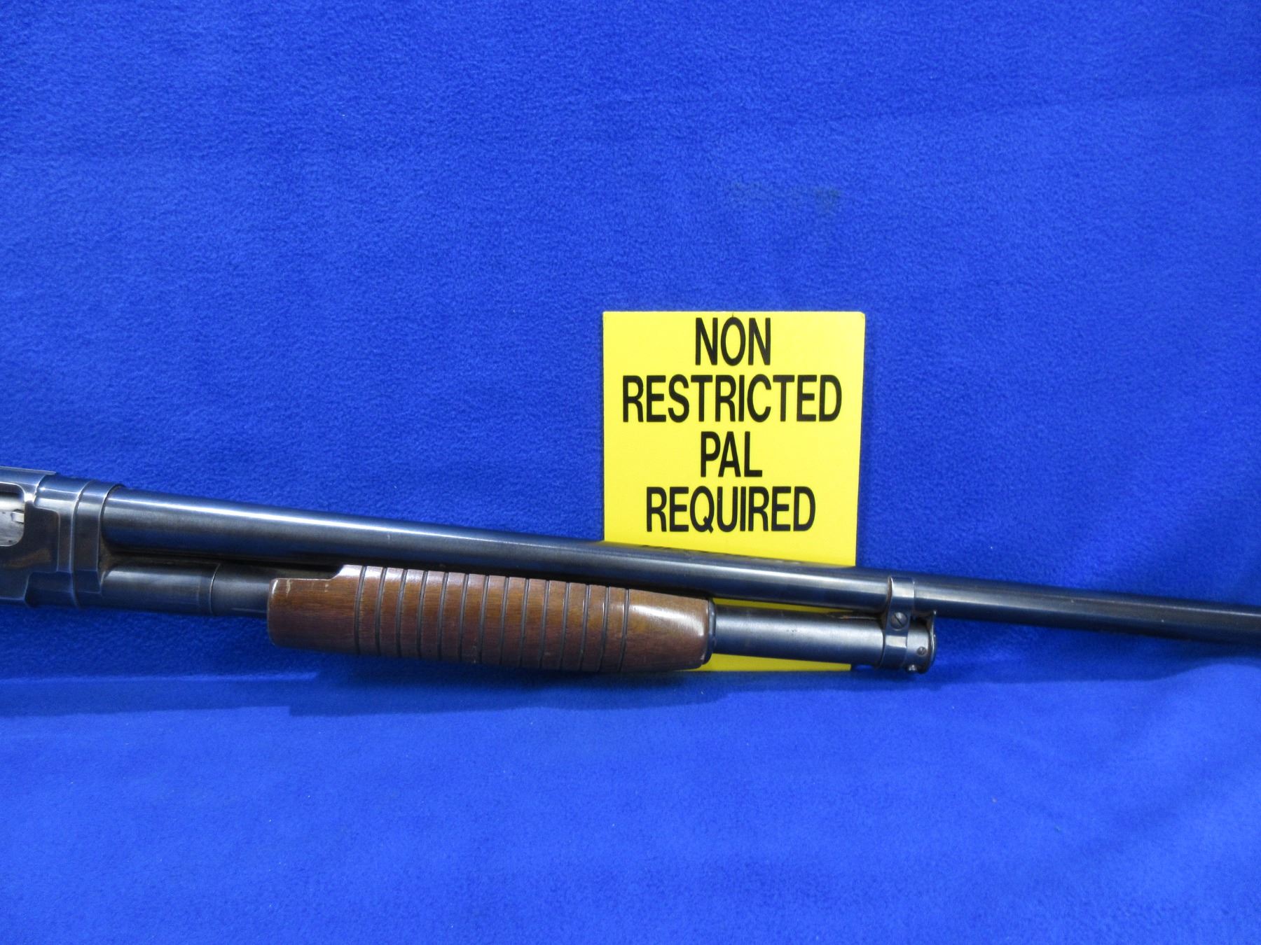 Non-Restricted - Winchester Model 12 in 12 Ga. 3" Full - This pump action take down shotgun appears to be in good to very good working order. Barrel is 30", bore is shiny, bluing is good with some pitting on barrel end, has bead front sight, stock has wrist repair, forearm is good to very good, rubber recoil pad good. Ser # 1615251