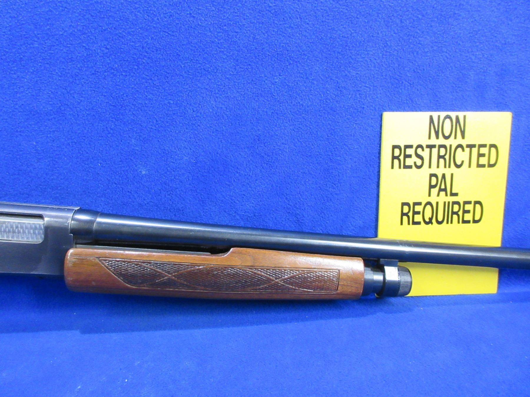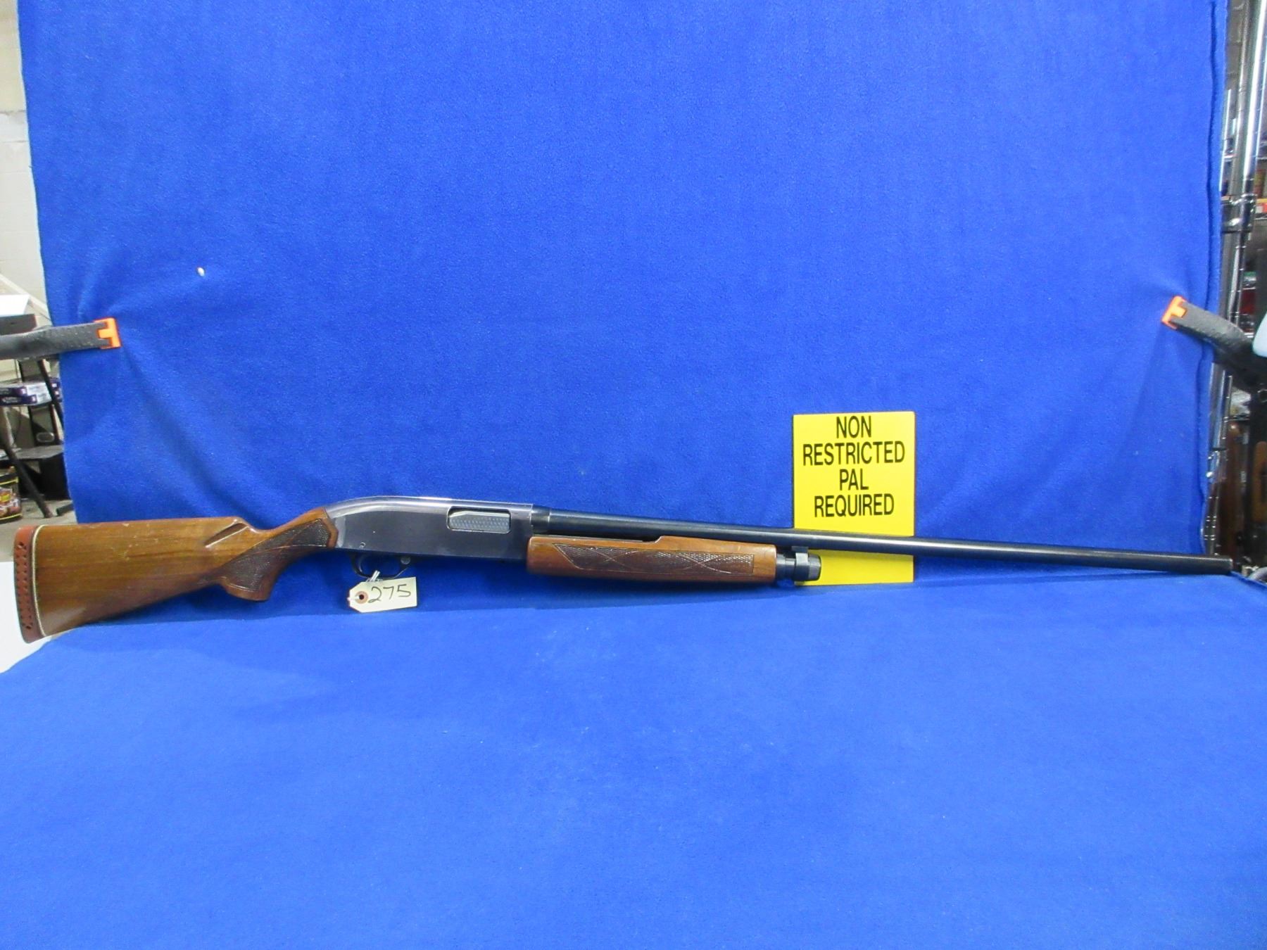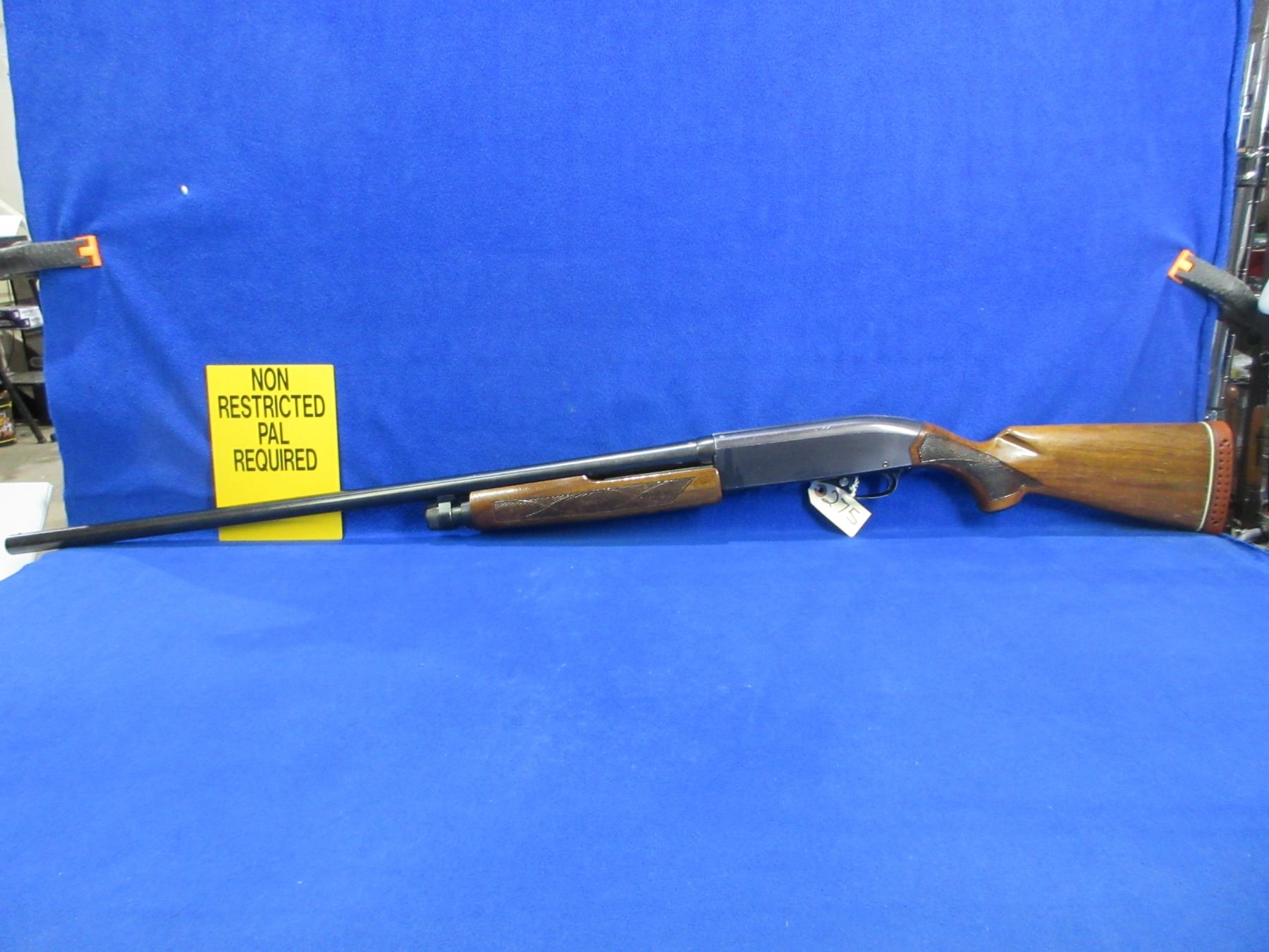 Non-Restricted - Winchester Model 1200 in 12 Ga. 2 3/4" Full - This pump action shotgun appears to be in good to very good working order. Barrel is 30", bore is good to very good, bluing is good with light scratches and light pitting near muzzle, has bead front sight, stock is good with usage marks , forearm has a crack on right side at top, rubber recoil pad. Ser # 438977