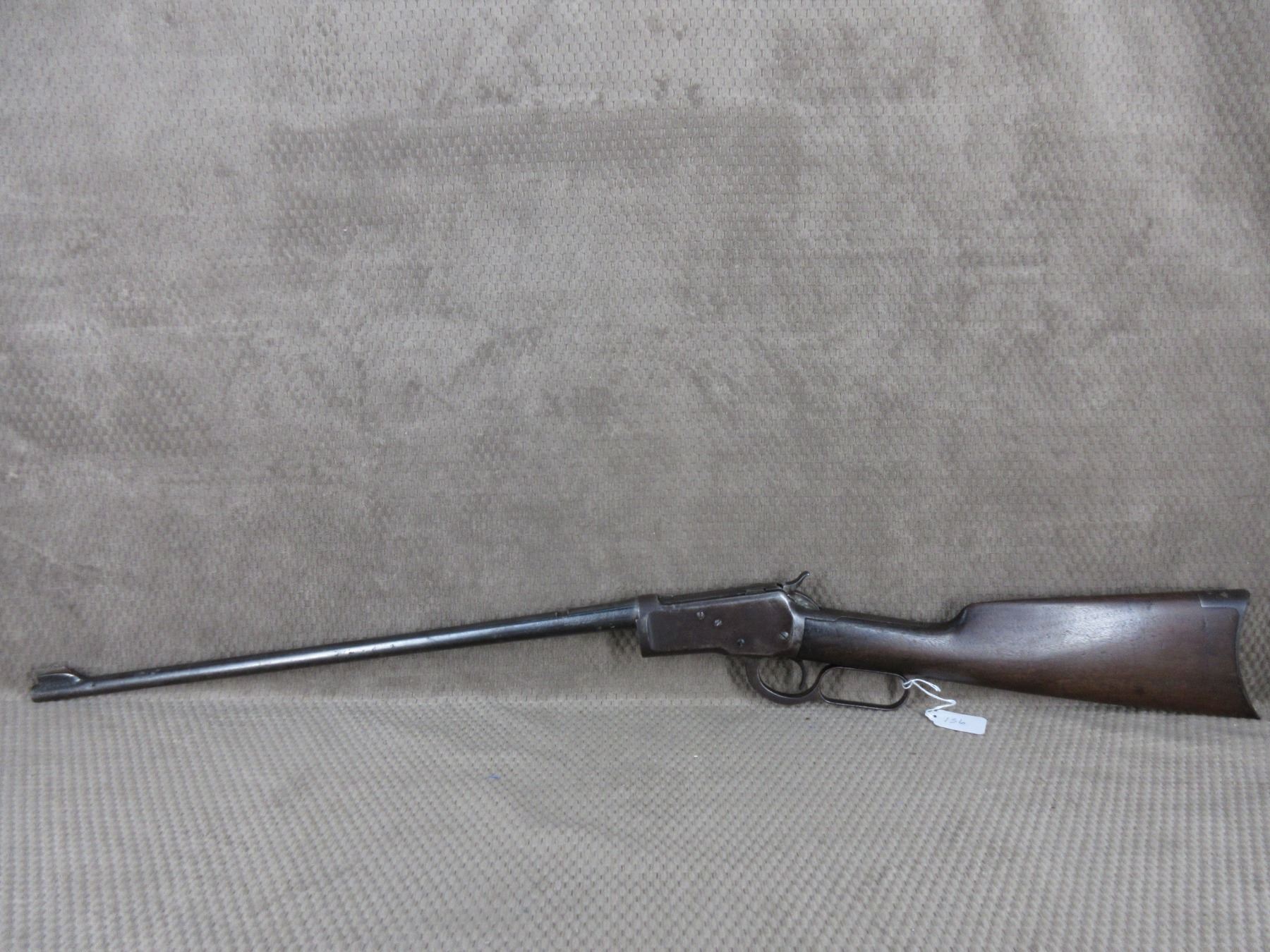 Non-Restricted - Winchester Model 1892 in 25-20 WCF - This lever action, tube magazine feed, is being sold as a parts gun as it is missing the tube magazine, forearm and various forearm pieces. The action appears to be in good working order. Barrel is 20", rifling is good but dark, bluing is fair, has front sight, missing rear sight, stock is fair to good with chip out by wrist and 2 gouges on right side, cresent metal butt plate. Manufactured in 1908.