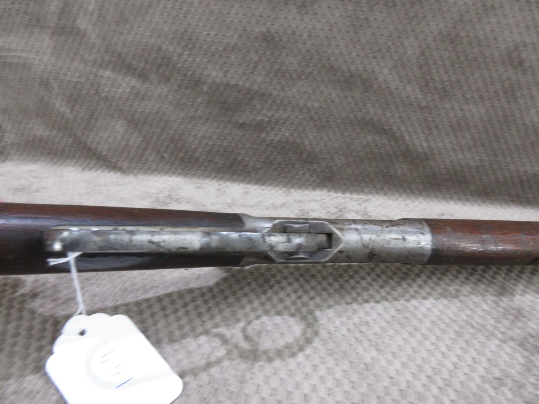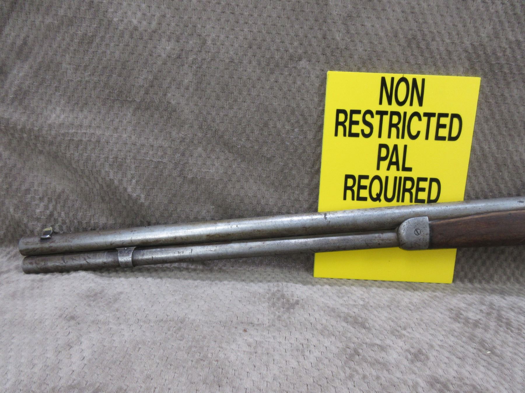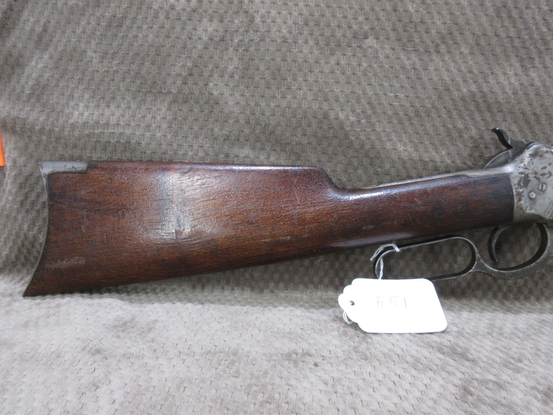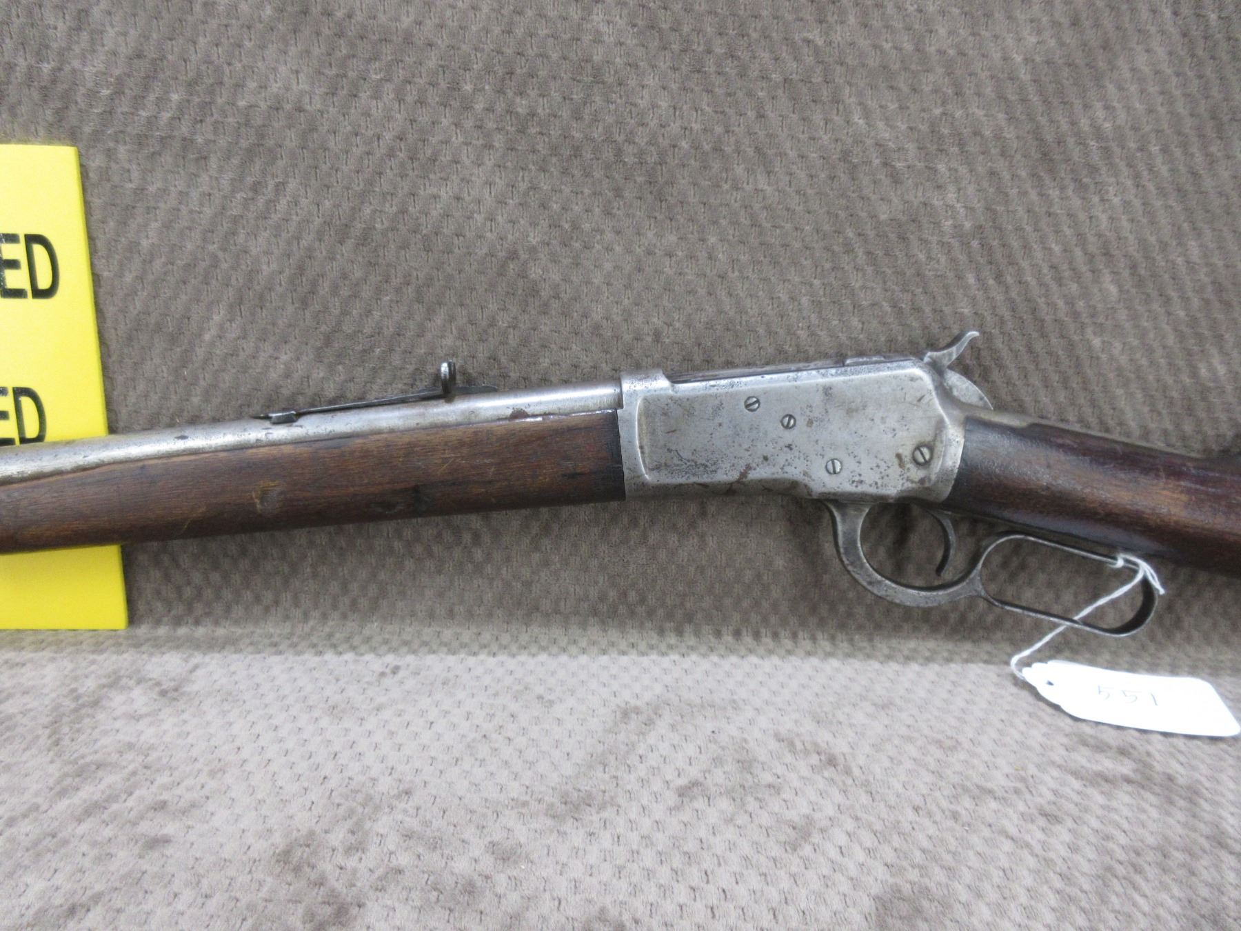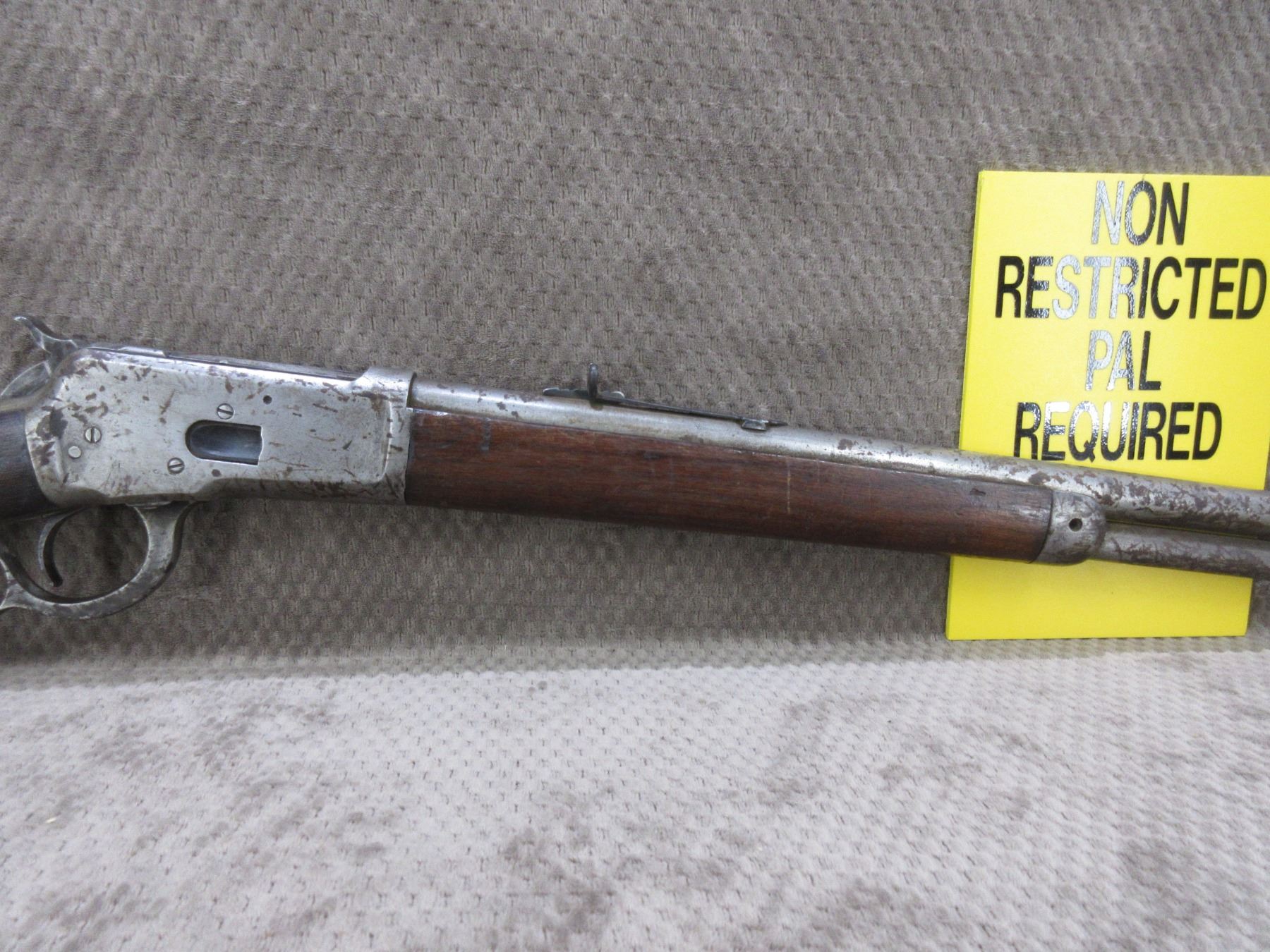 Non-Restricted - Winchester Model 1892 in 44 WCF (44-40) - This lever-action rifle with tube magazine was made in 1897 and appears to be in good working order. Round barrel is 24", bluing is mostly gone and has many pits and marks, rifling is approx. 60% as it has pitting, has both sights, stock has many usage marks, forearm has many usage marks and splinter out of one side, missing 1 foretip screw, metal crescent butt plate, Ser # 143993