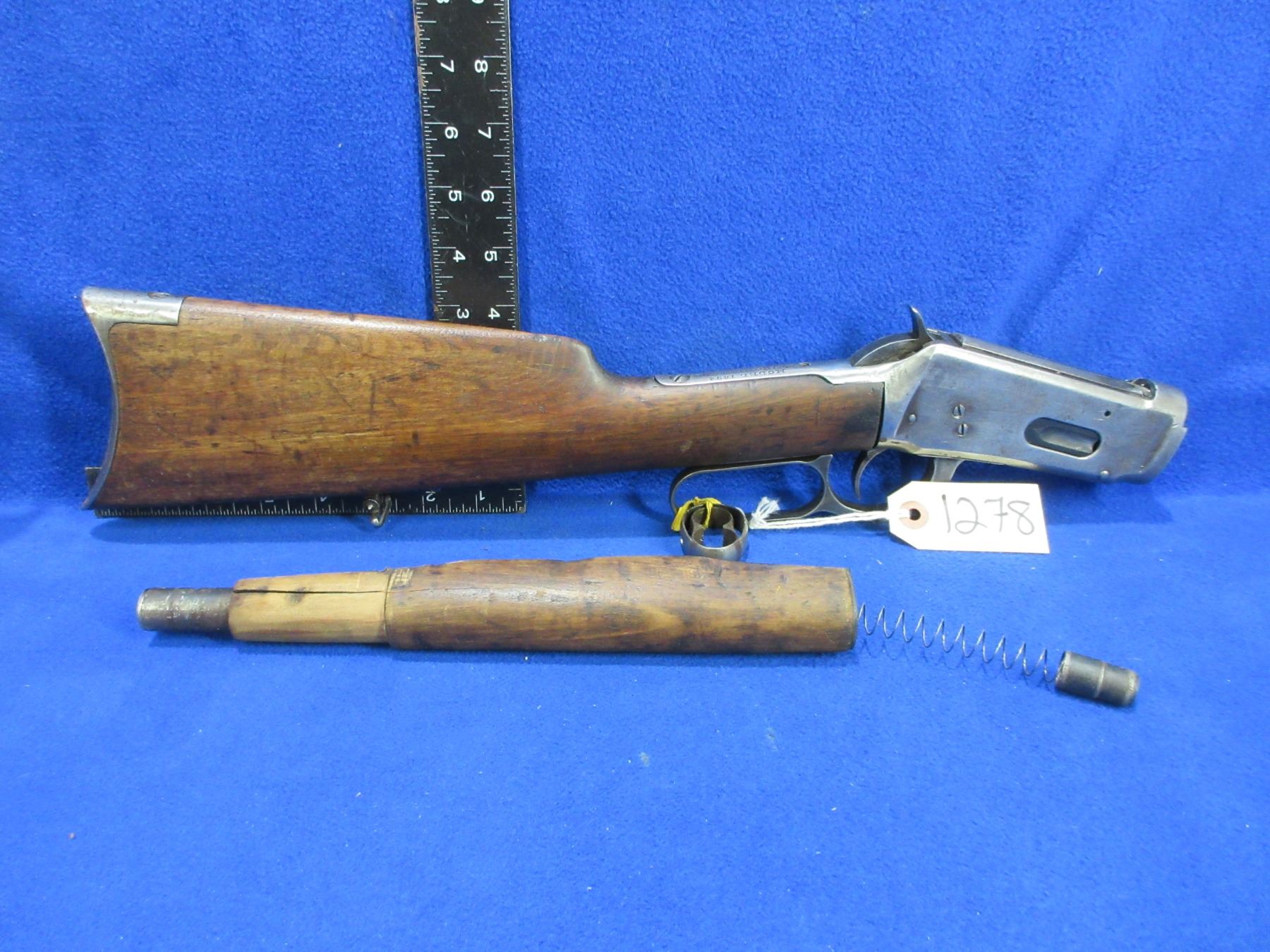 Non Restricted - Winchester Model 1894 Parts Gun - Comes with working action (cocks and fires), stock, metal crescent buttplate, rear swivel, magazine tube with spring, forearm and 2 barrel bands. Stock is good with many usage marks, forearm is cracked and has 2 large chips, bluing is gone. Ser. # 530182