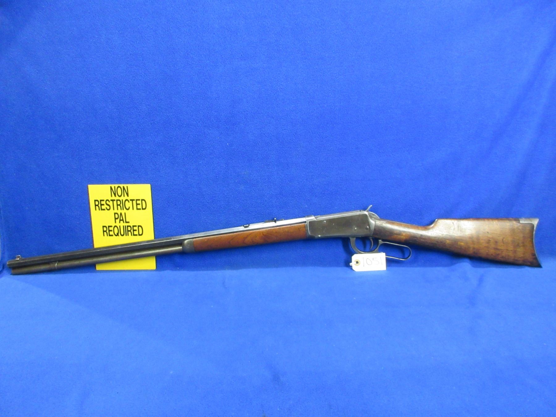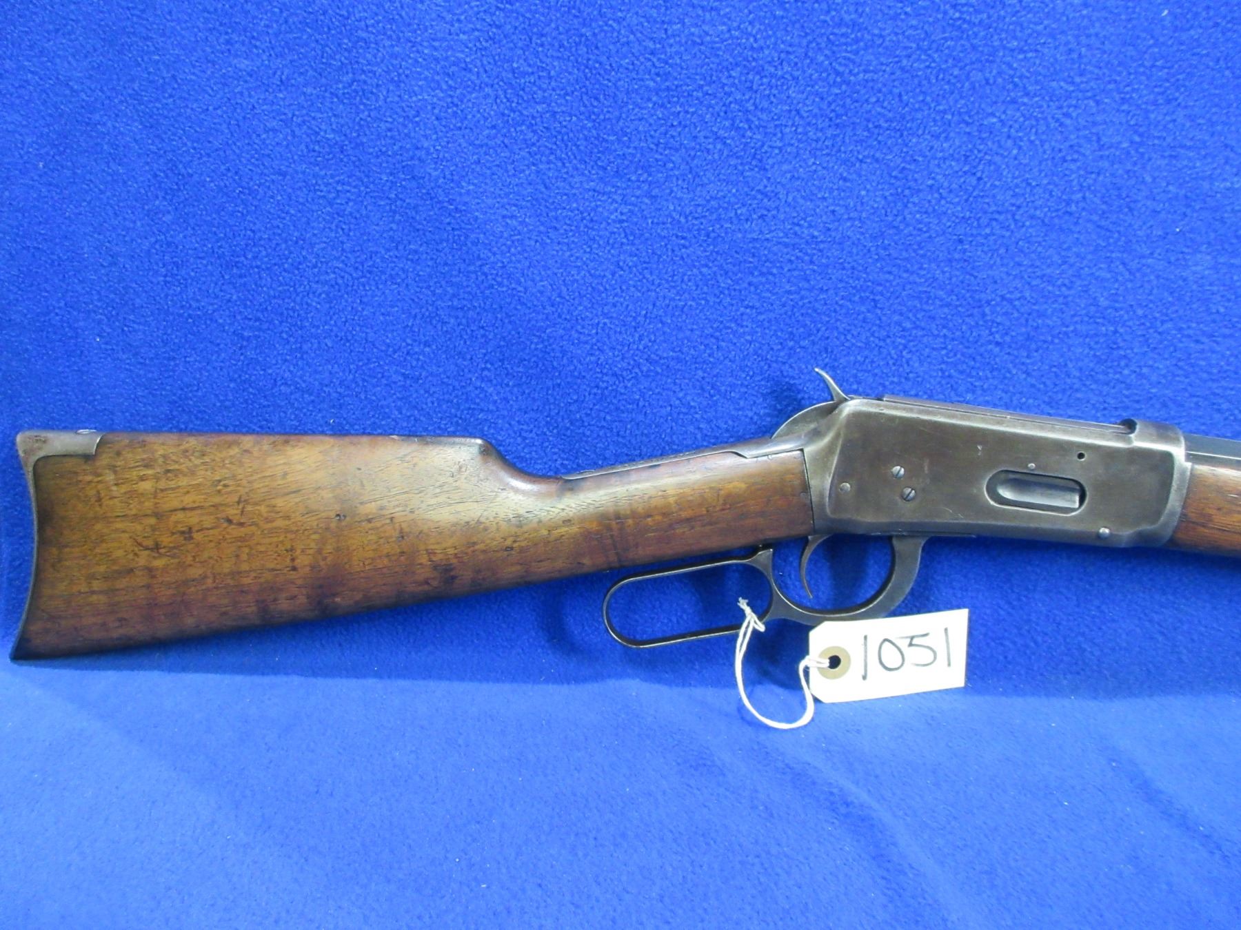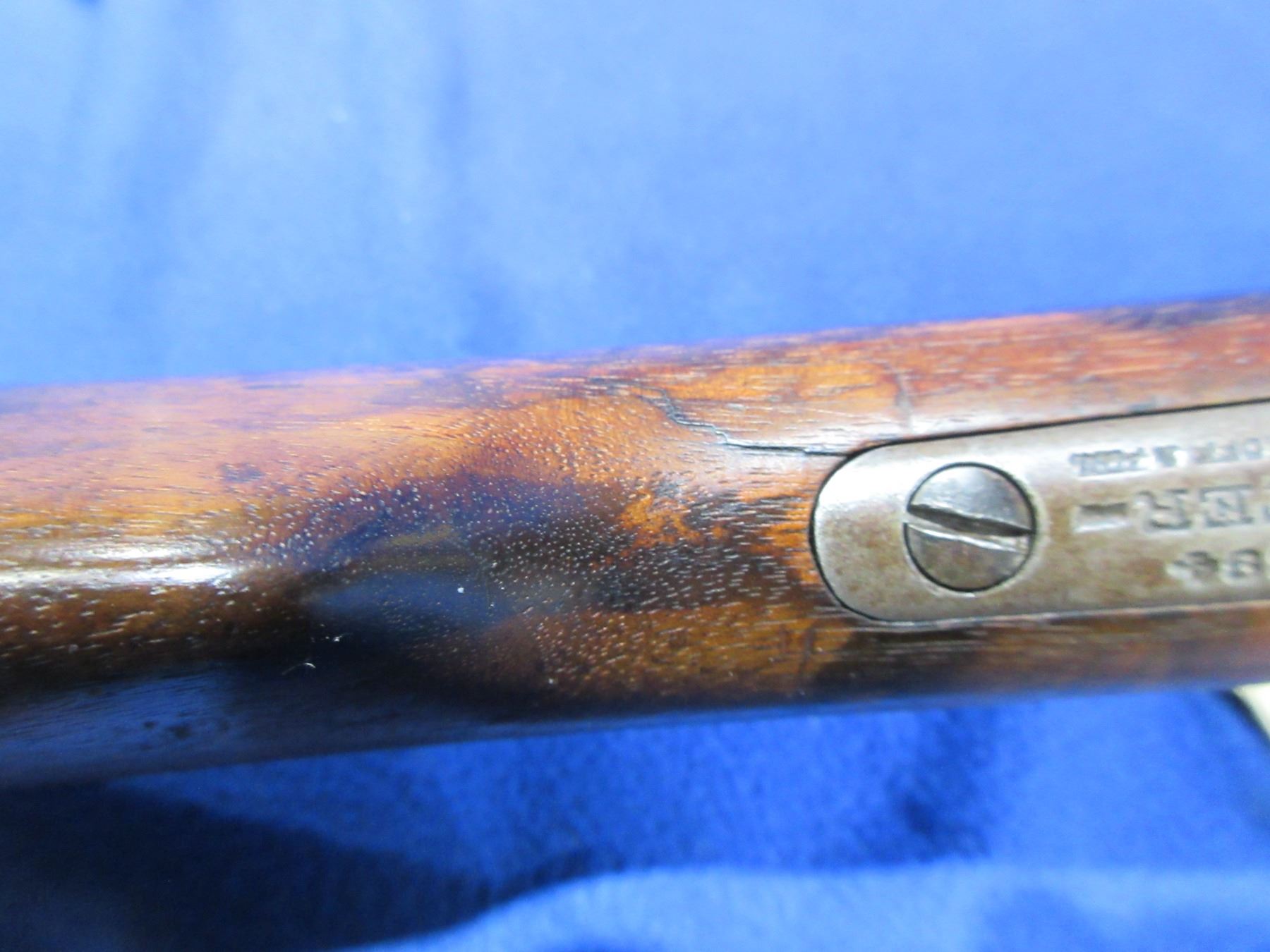 Non-Restricted - Winchester Model 1894 in 25-35 WCF - Made in 1919, this is a lever action rifle with tube magazine, action appears to be in good working order. Octagon barrel is 26", rifling is poor to fair, bluing is turning grey or gone, has both sights, stock has cracks behind the upper and lower tangs, forearm is good with usage marks, length of pull is 13 1/4", crescent metal butt plate good. Ser # 845677