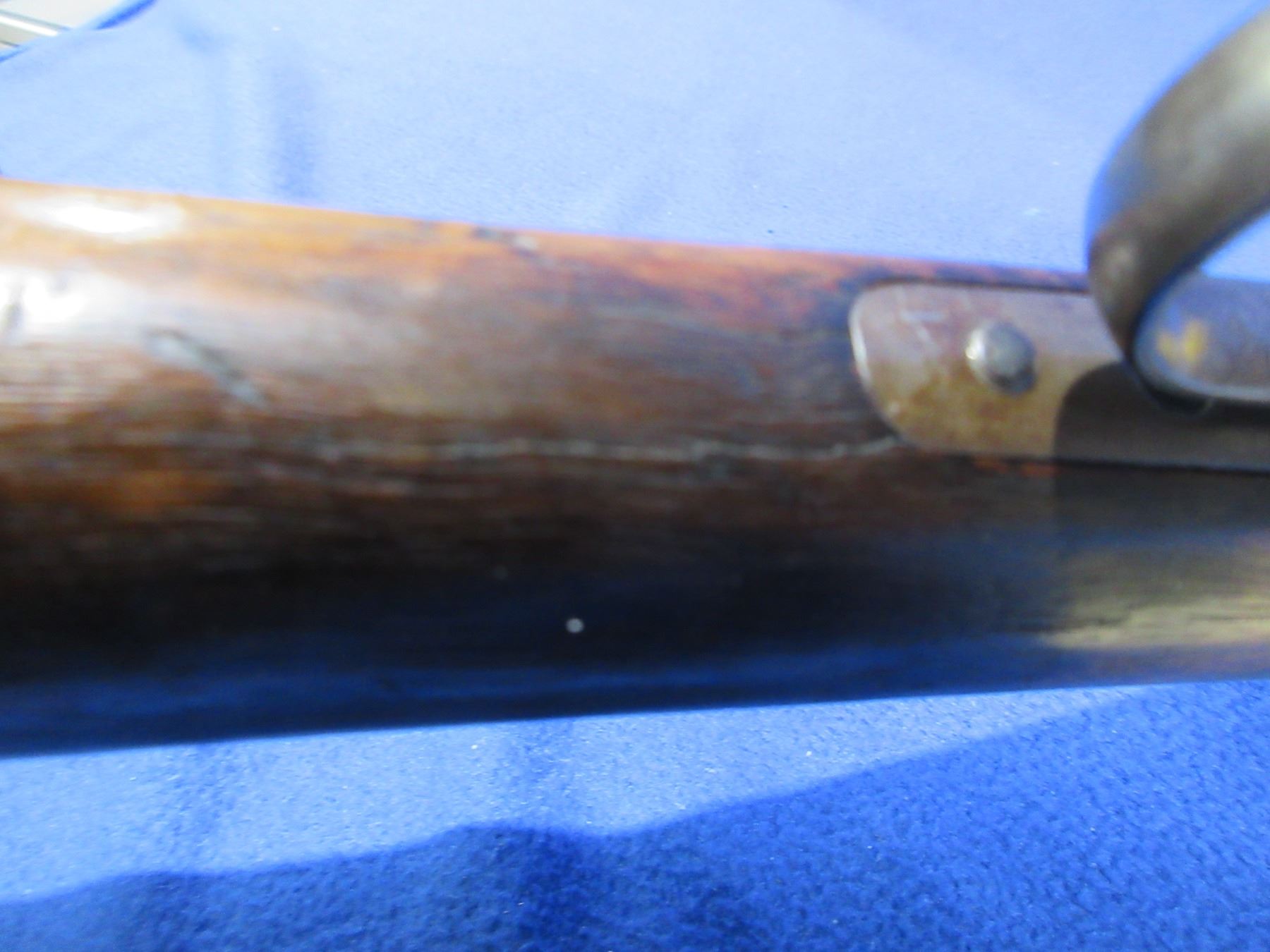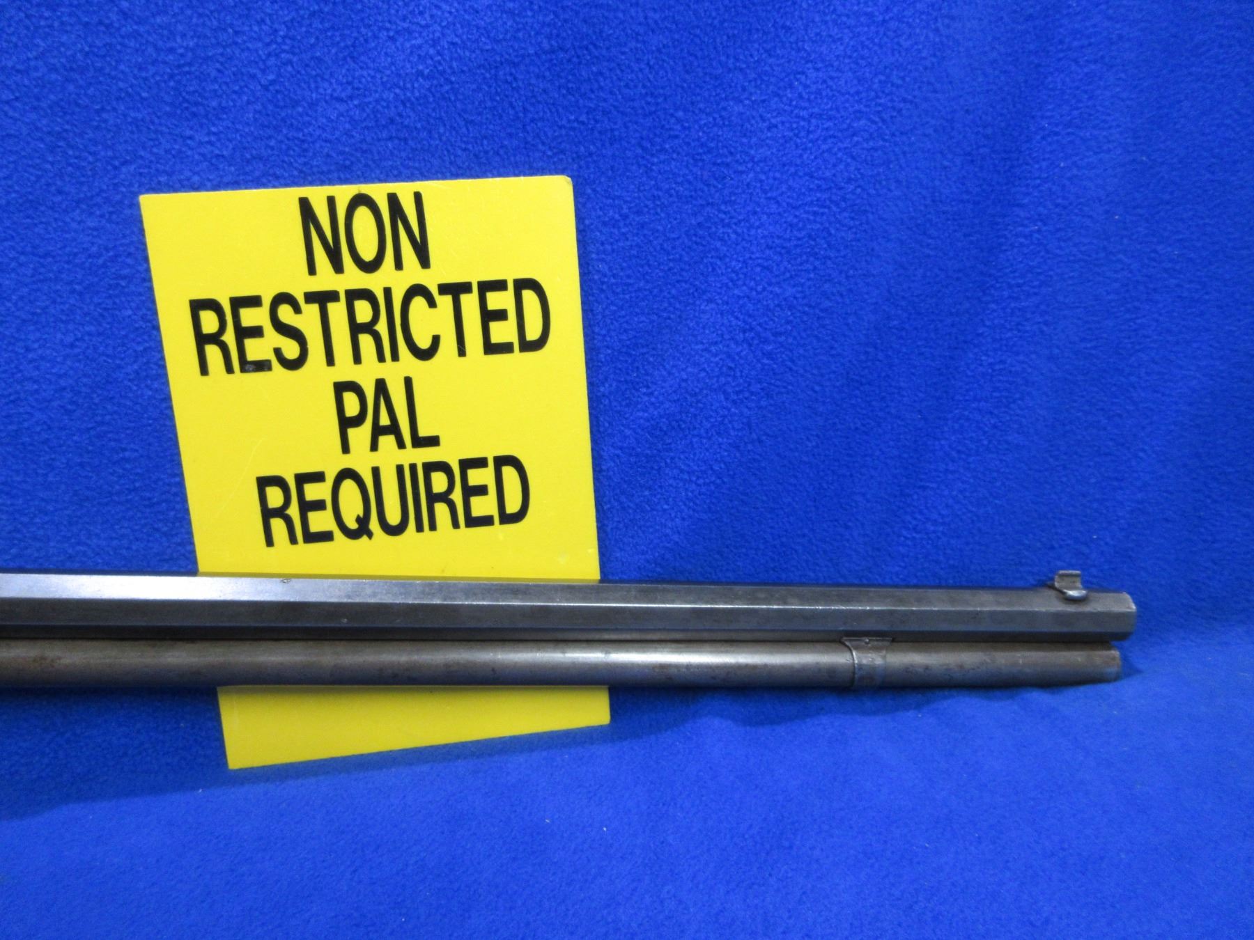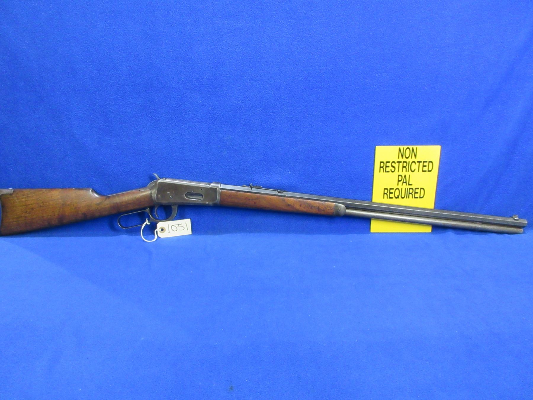 Non-Restricted - Winchester Model 1894 in 25-35 WCF - Made in 1919, this is a lever action rifle with tube magazine, action appears to be in good working order. Octagon barrel is 26", rifling is poor to fair, bluing is turning grey or gone, has both sights, stock has cracks behind the upper and lower tangs, forearm is good with usage marks, length of pull is 13 1/4", crescent metal butt plate good. Ser # 845677