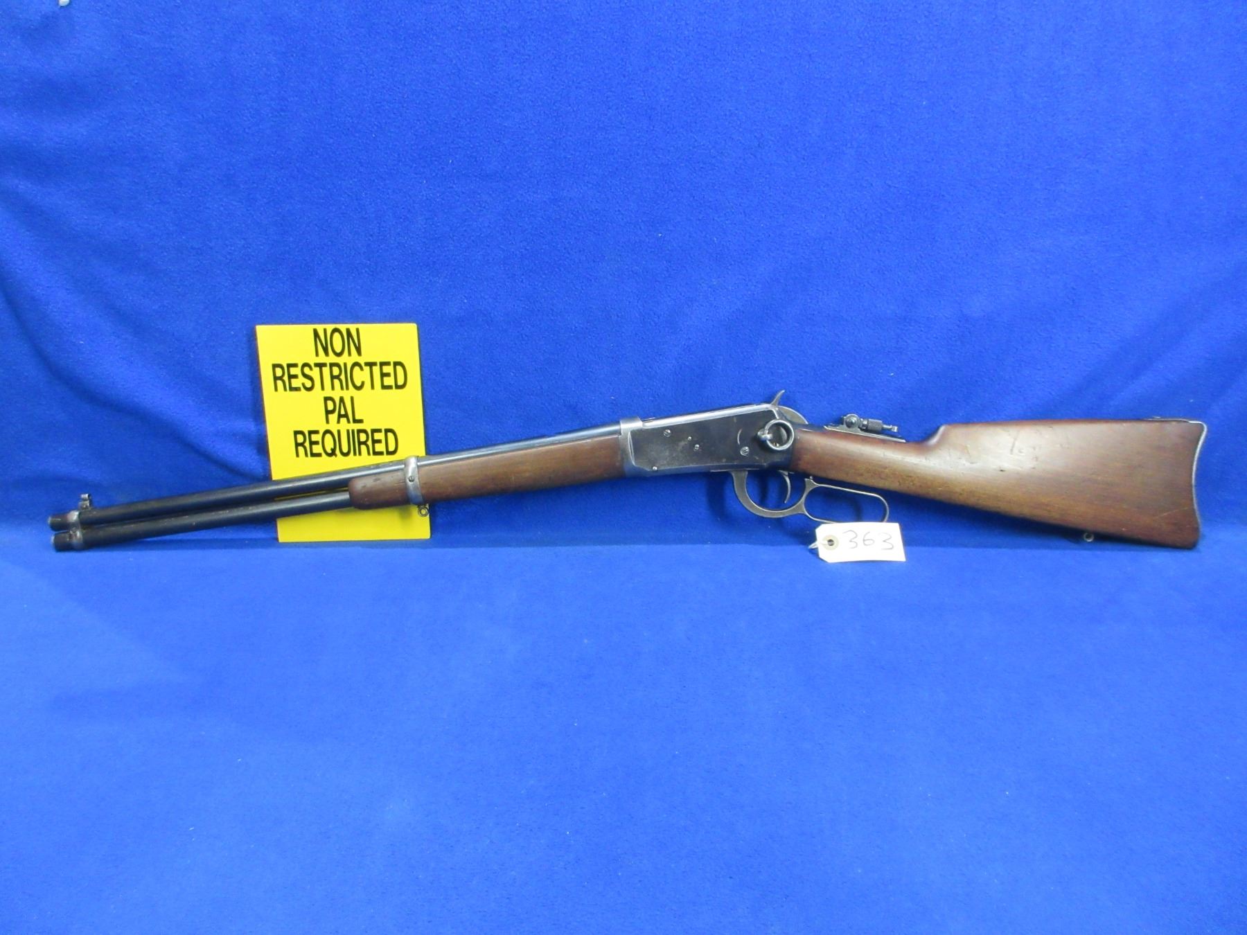 Non-Restricted - Winchester Model 1894 in 30WCF - Made in 1904, this Saddle Ring Carbine lever action rifle with tube magazine appears to be in good to very good working order. Barrel is 20", rifling is fair to good (needs wet cleaning), bluing is good for age, action is turning grey and etched 0731609 on bottom right, has front sight, missing rear sight but has rear flip-up peep sight, stock and forearm are good with usage marks, metal crescent butt plate good, comes with swivel studs. Ser #304629