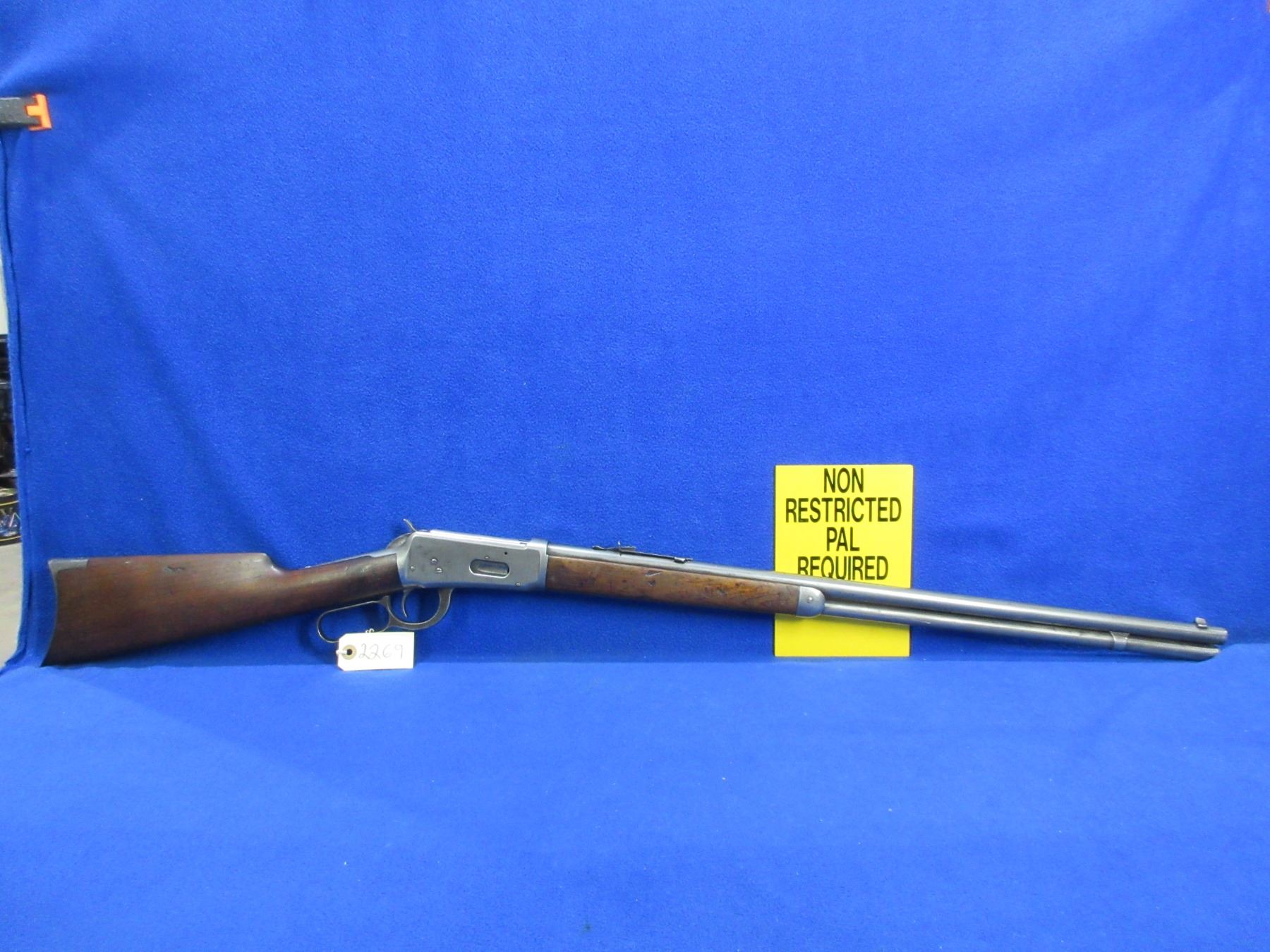 Non-Restricted - Winchester Model 1894 in 32-40 - Made in 1905, this is a lever action rifle with tube magazine, action appears to be in good to very good working order. Barrel is 26", rifling is poor to fair, bluing is almost gone, has both sights, stock is good with usage marks, forearm is good with many usage marks, length of pull is 13 1/4", crescent metal butt plate good. Ser #335091