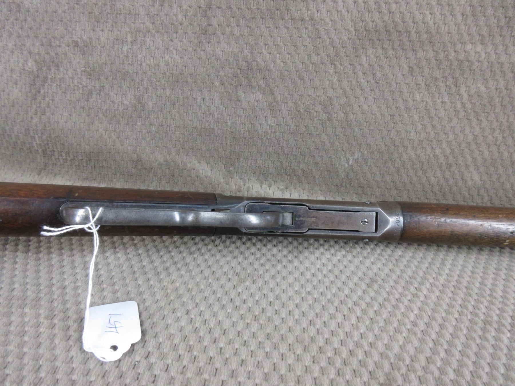 Non-Restricted - Winchester Model 1894 in 32 - This lever action rifle was made in 1902 and appears to be in good working order. Caliber marking on barrel says 32 and the other part has been filed off and also has marks like barrel was changed, barrel is 24", rifling is fair to good but dark, bluing is good for age, has both sights, stock has minor crack by hammer, forearm is good and both have many usuage marks, cresent butt plate is rusty.