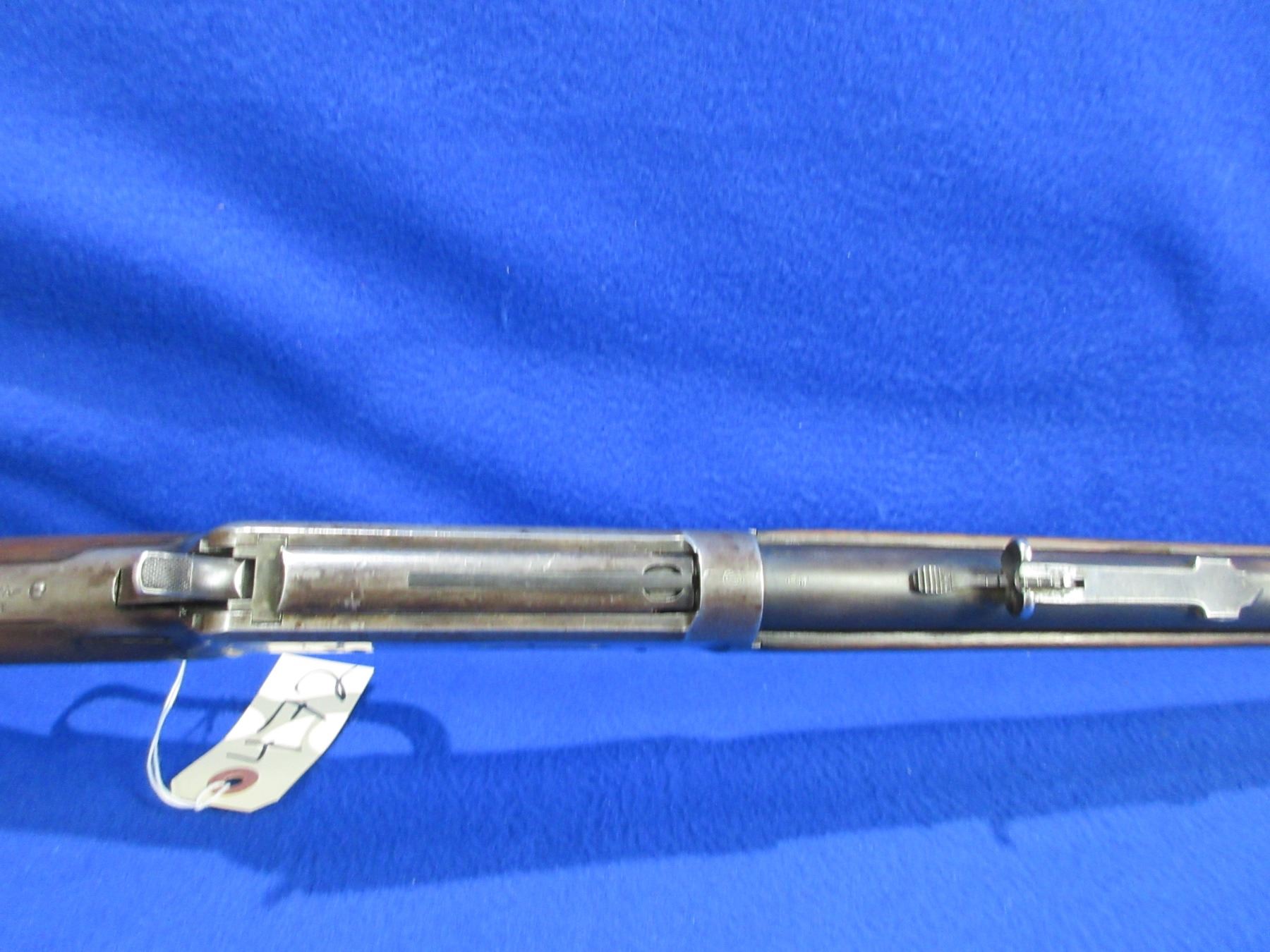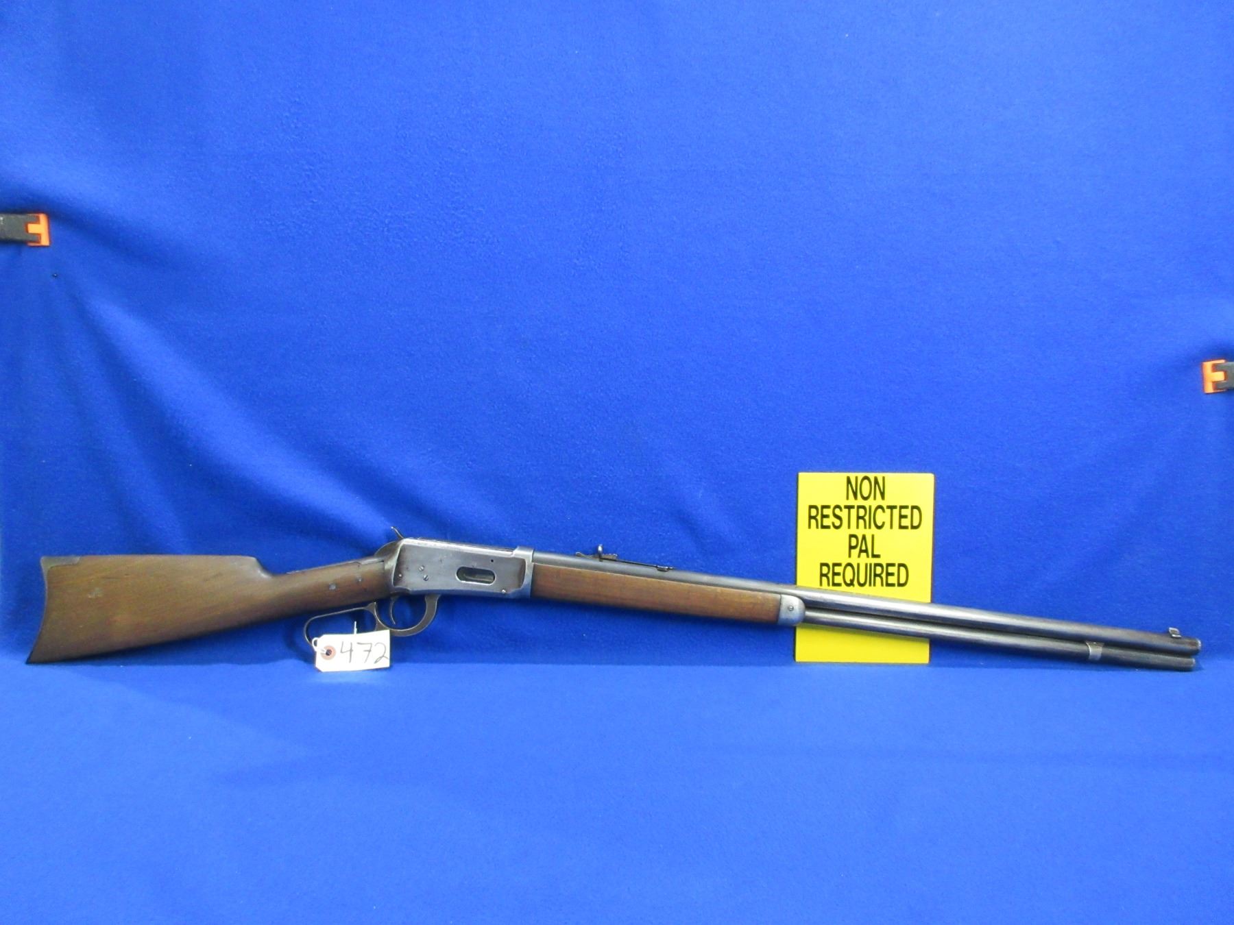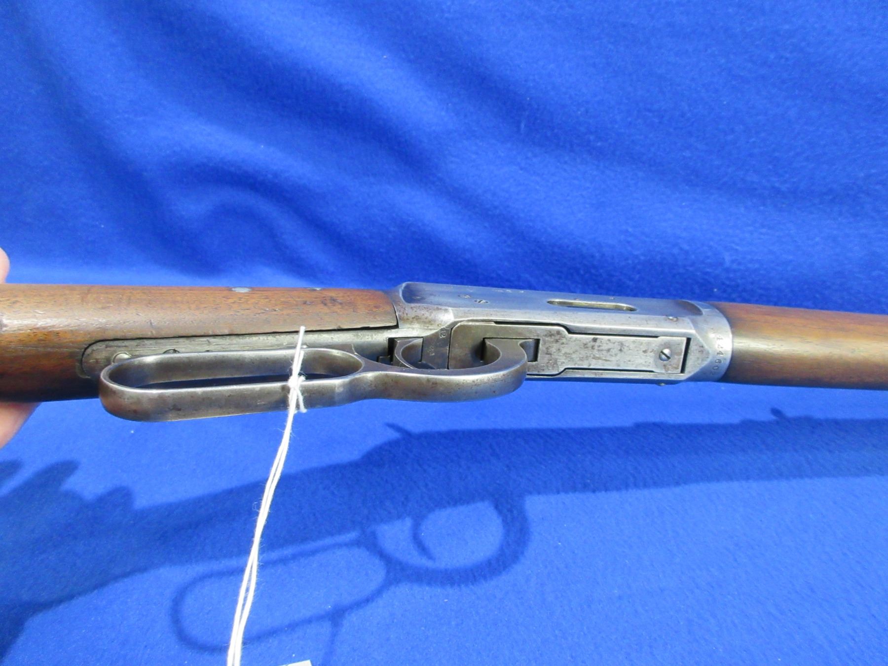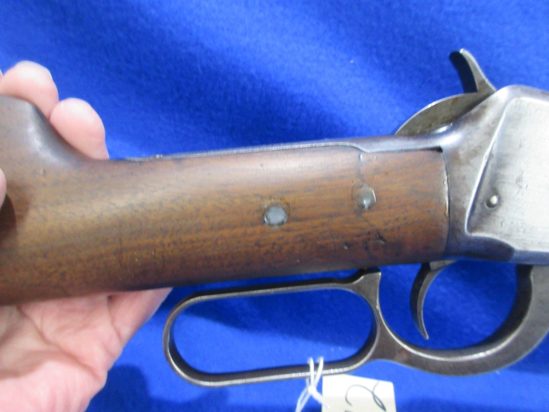 Non-Restricted - Winchester Model 1894 in 38-55 - Made in 1907, this lever action rifle with tube magazine appears to be in good to very good working order. Barrel is 26", rifling is fair, bluing is mostly gone, has both sights, stock looks like it may have been pinned on the right side but no indication of damage, forearm is good for age with usage marks, crescent metal butt plate good. Ser #424602