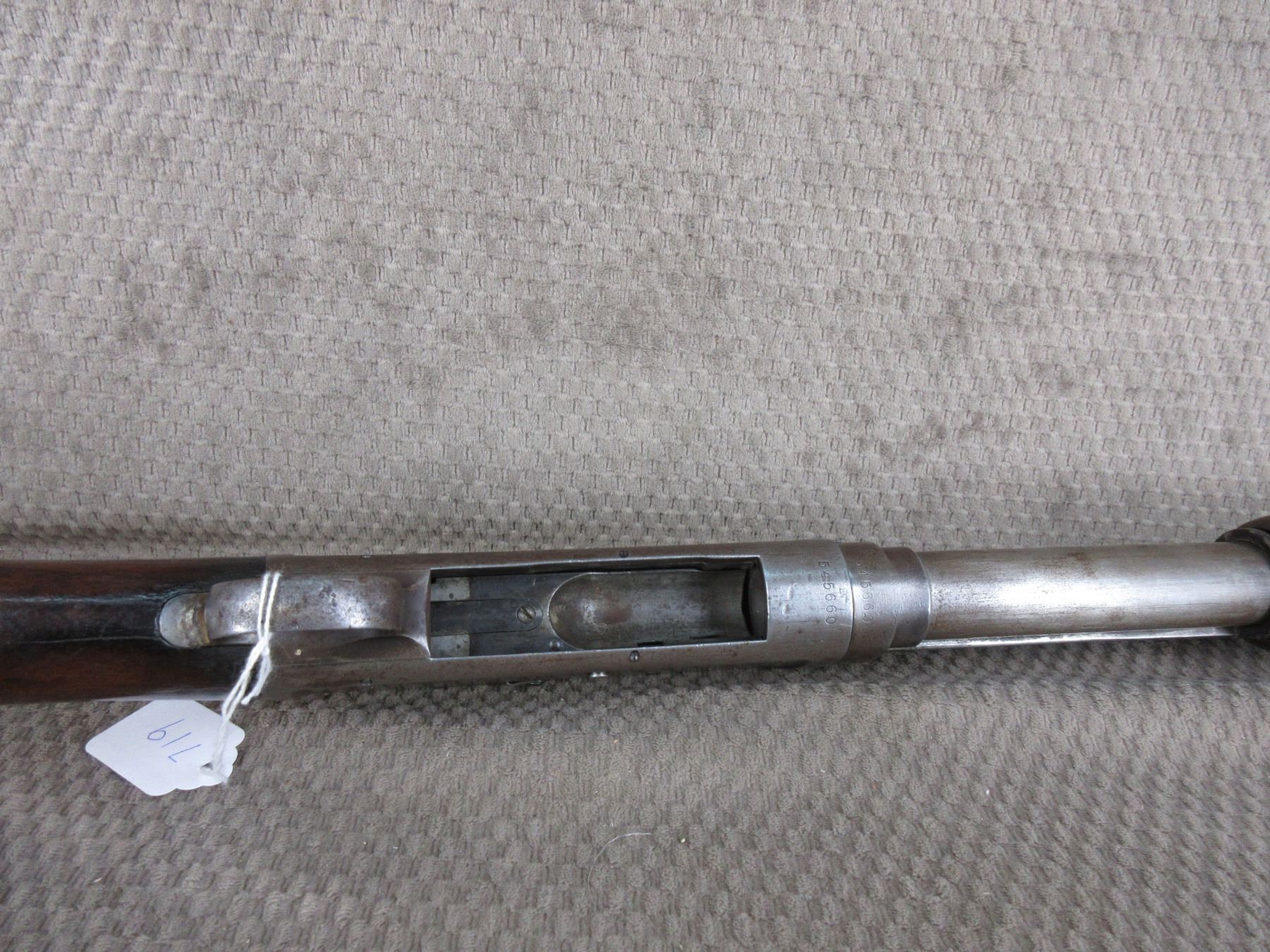 Non-Restricted - Winchester Model 1897 in 12 Gauge - This pump action takedown shotgun with tube magazine is in fair to good working order. Barrel is 20 1/4", bluing is brown, has front bead, stock has repairs, forearm is homemade and missing screws, butt plate wrong.