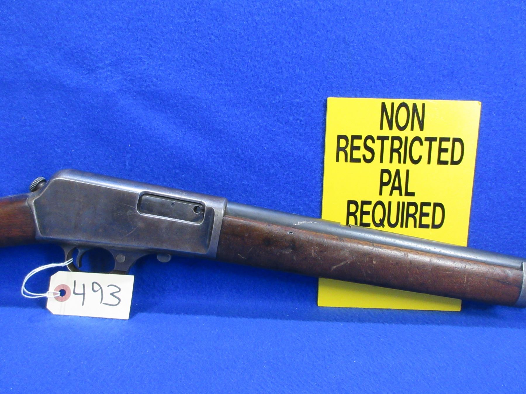 Non-Restricted - Winchester Model 1905SL in 32 Cal.(magazine missing) - Made in 1907, this semi-auto take down rifle with removable magazine (magazine missing) appears to be in good to very good working order. Barrel is 22", rifling is good, bluing is fair to good, has front sight but rear sight missing, stock appears to have a crack on top and bottom in the wrist area and has been covered with leather, butt plate missing. Ser # 17788