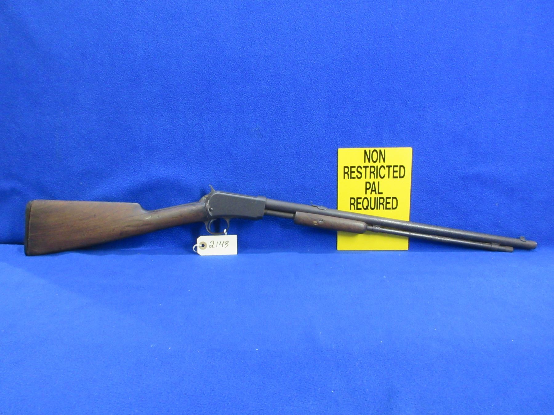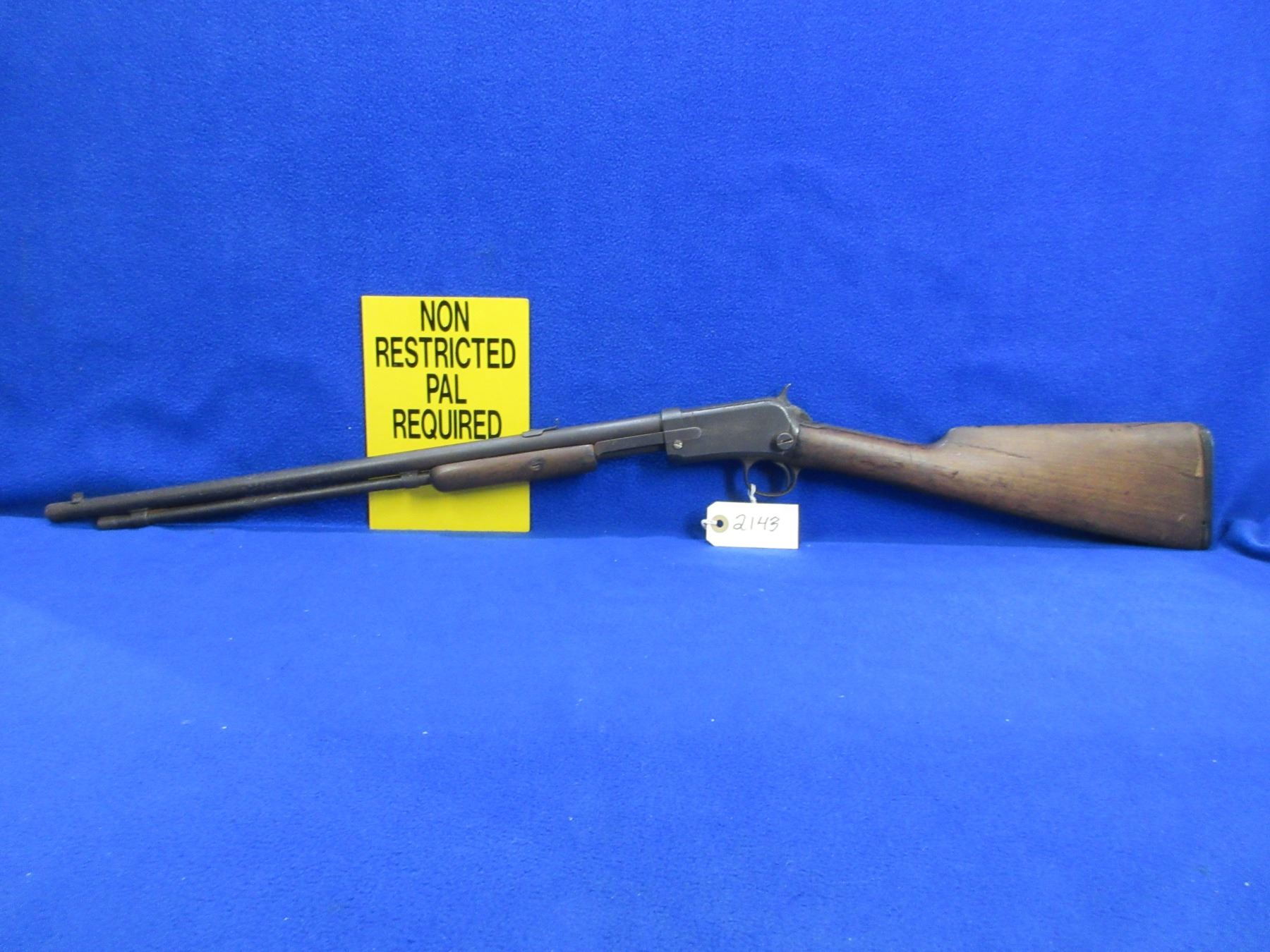 Non-Restricted - Winchester Model 1906 in 22 S L LR - Made in 1910, this is a pump action takedown rifle with tube magazine, action appears to be in good working order. Barrel is 20", rifling is poor, bluing is gone, has both sights, stock is broken in at least 3 spots, forearm is fair, length of pull is 13", butt plate poor. Ser # 183921