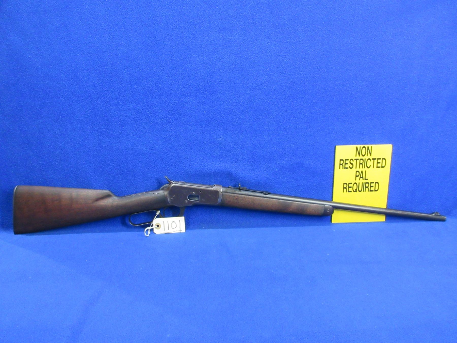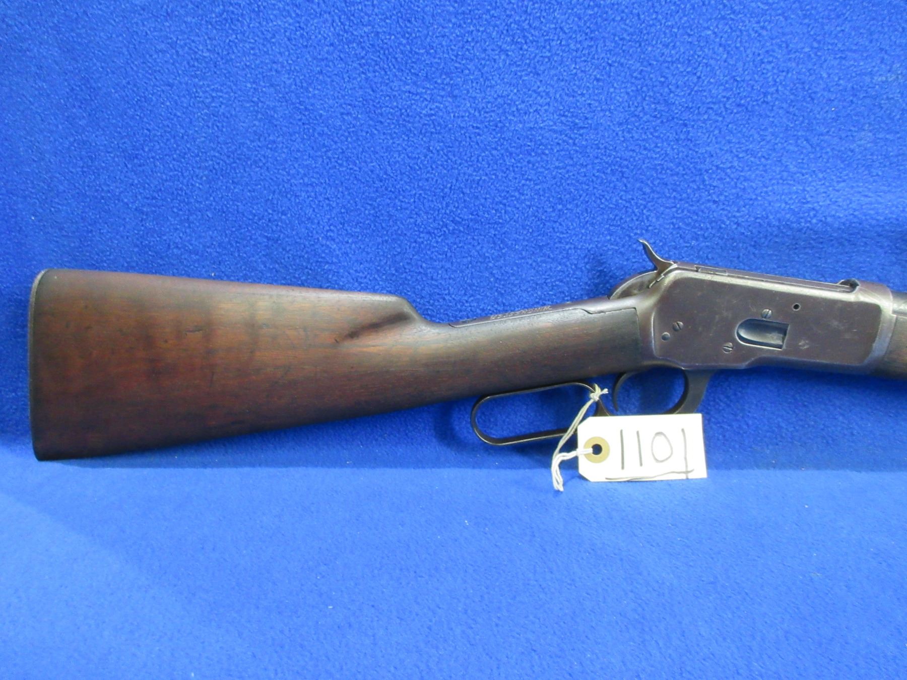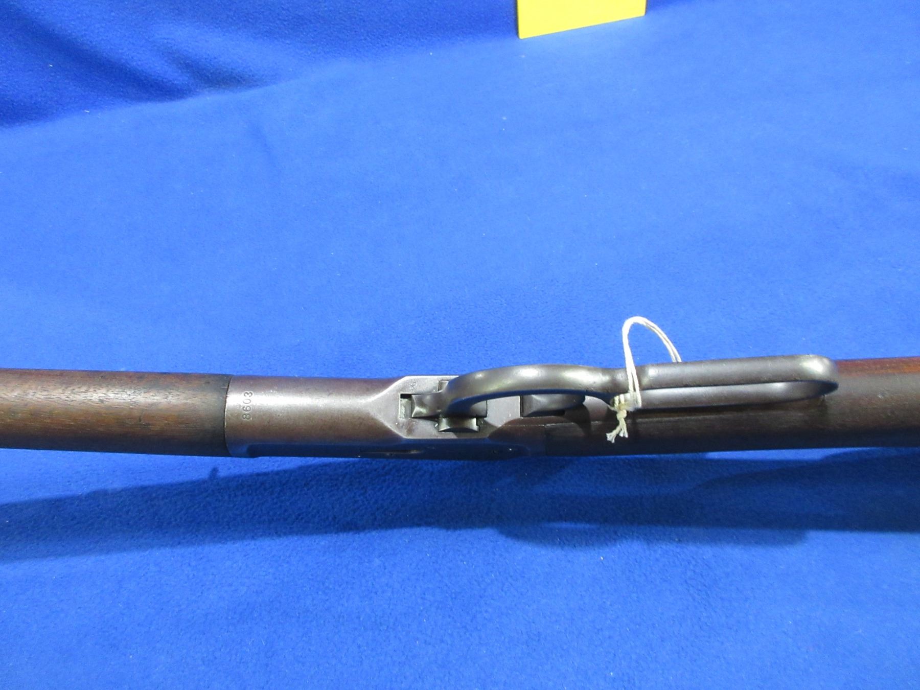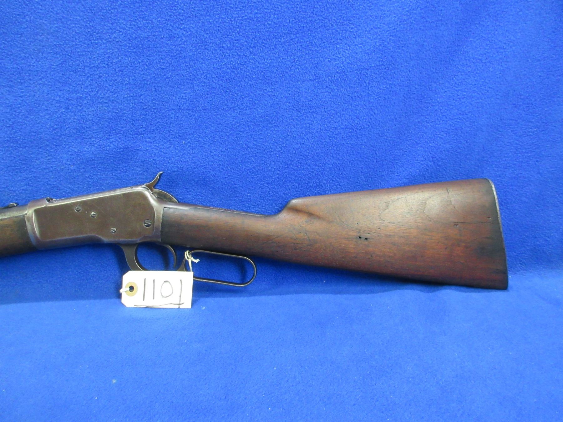 Non-Restricted - Winchester Model 53 in 32 WCF - Made in 1927, this is a lever action rifle with tube magazine, action appears to be in good working order. Barrel is 22", rifling is good, bluing is turning brown, has both sights, stock is good but has drying crack on left side at butt, forearm is good with usage marks, length of pull is 13 1/4", metal butt plate good, rear swivel stud missing. Ser # 8603