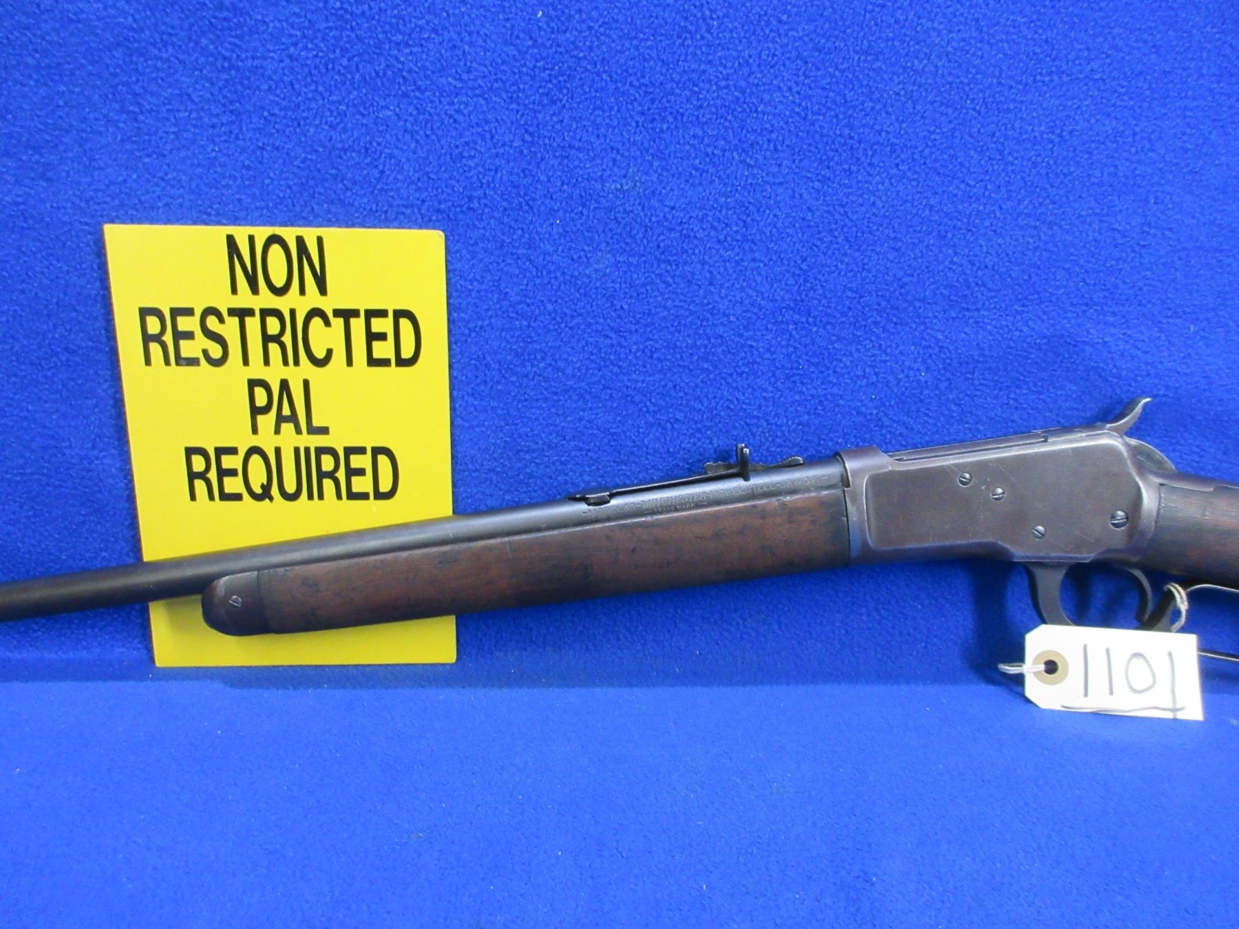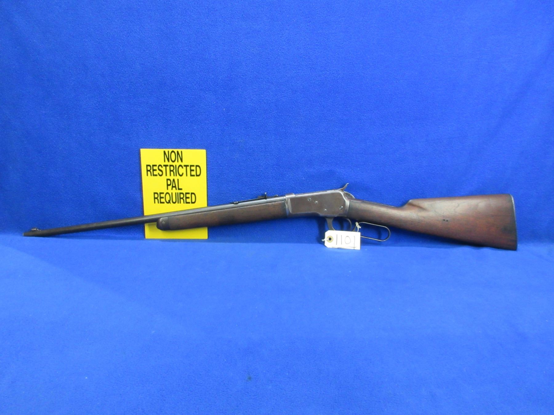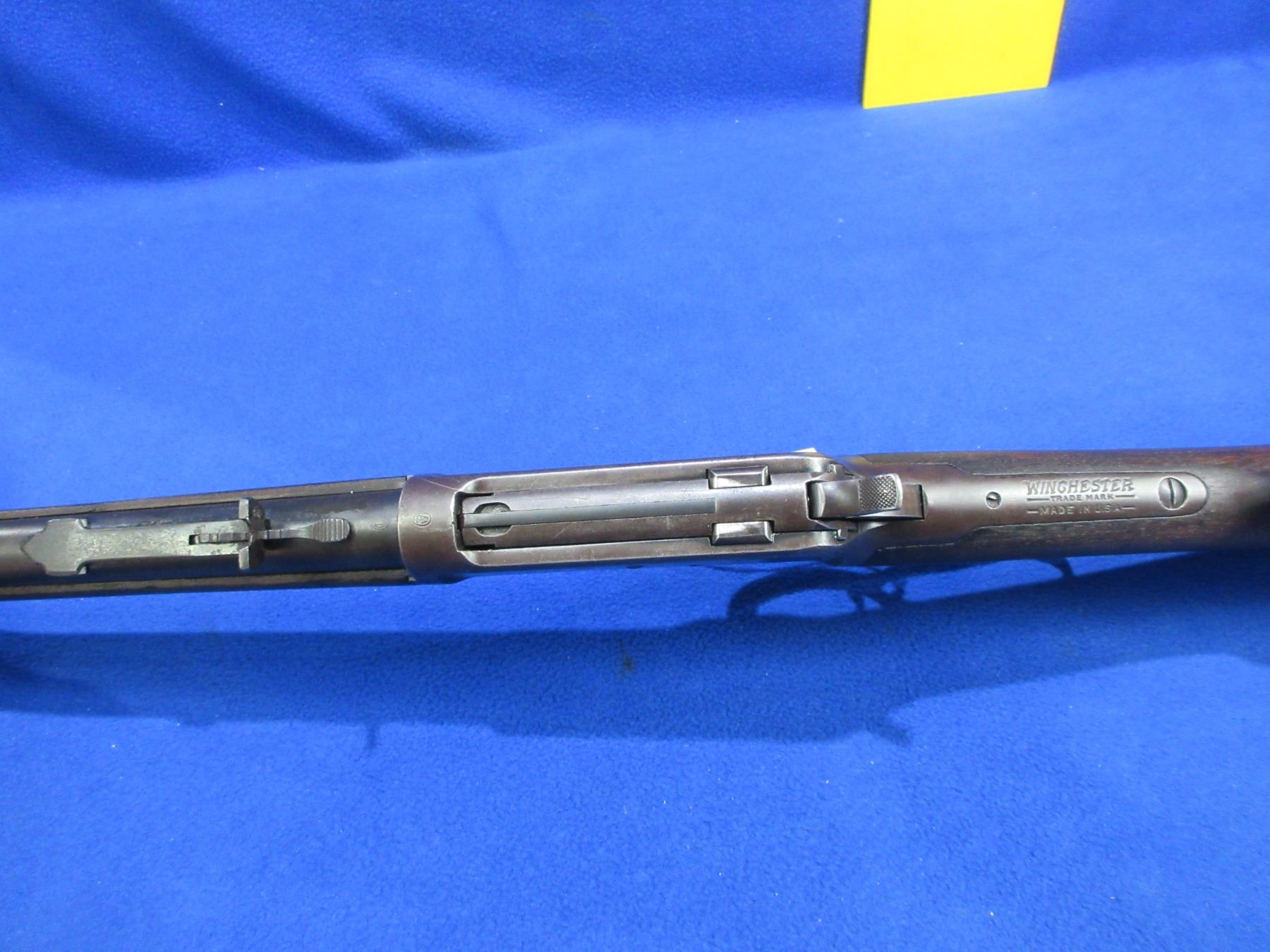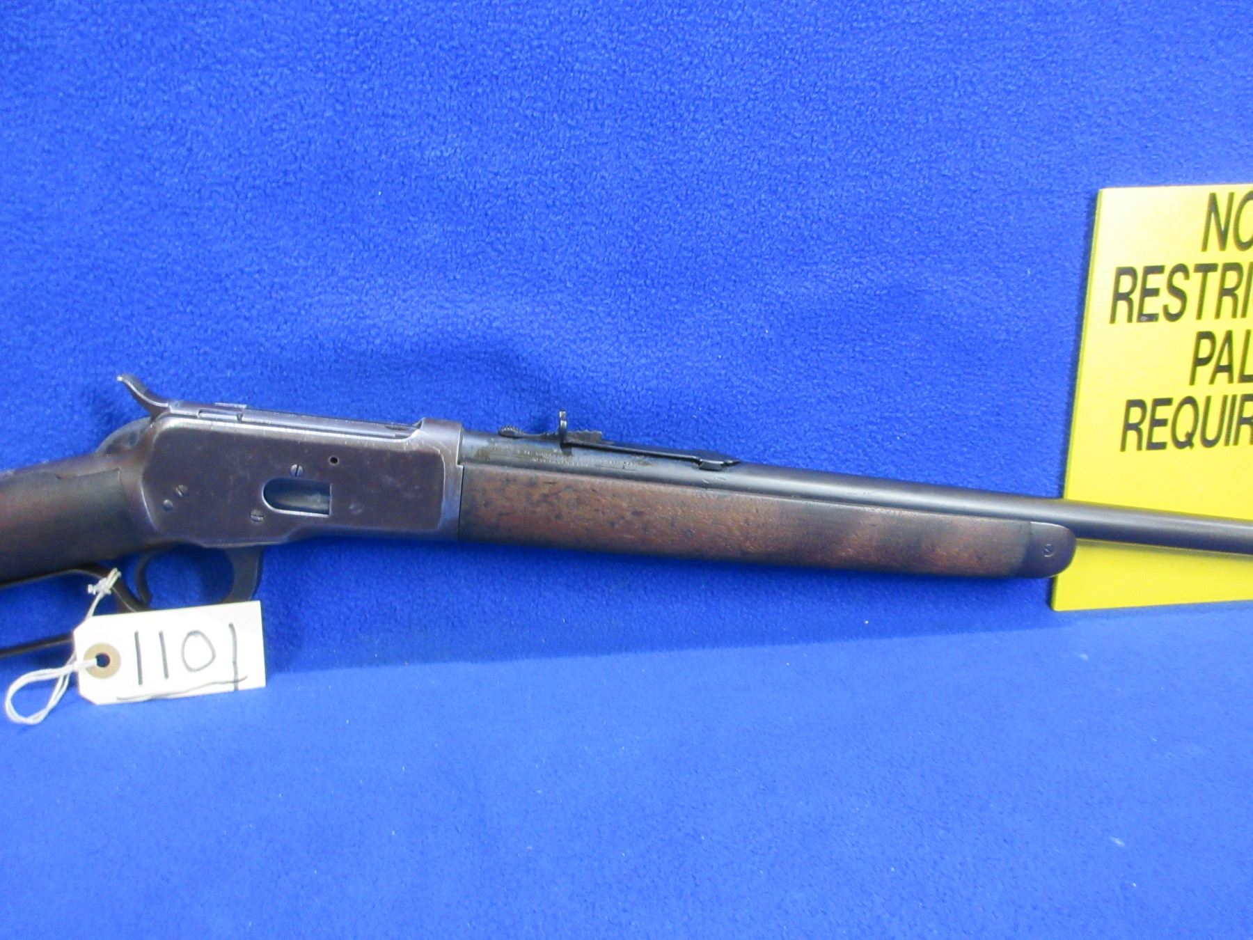 Non-Restricted - Winchester Model 53 in 32 WCF - Made in 1927, this is a lever action rifle with tube magazine, action appears to be in good working order. Barrel is 22", rifling is good, bluing is turning brown, has both sights, stock is good but has drying crack on left side at butt, forearm is good with usage marks, length of pull is 13 1/4", metal butt plate good, rear swivel stud missing. Ser # 8603