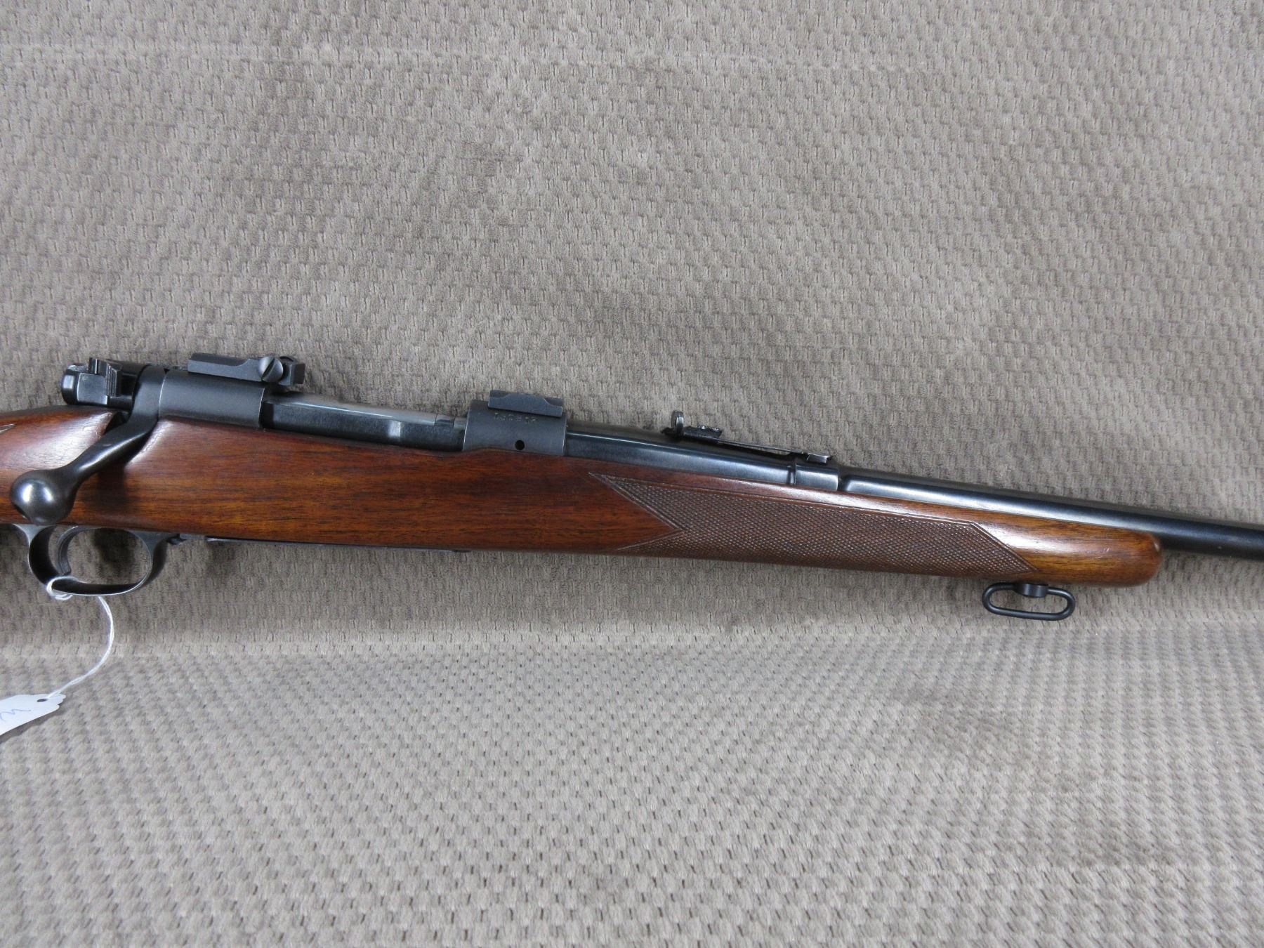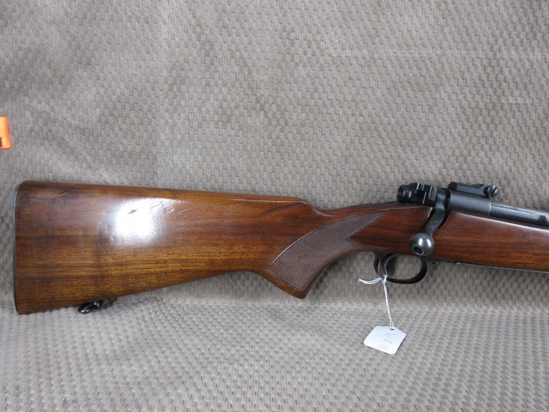 Non-Restricted - Winchester Model 70 (Pre 64) in 30-06 - This bolt action rifle with floor plate magazine was made in 1950 and appears to be in very good working order. Barrel is 24", rifling is very good, bluing is very good, has both sights and Leupold scope bases, stock is very good with some small handling marks, steel butt plate very good, swivels. Ser # 150812