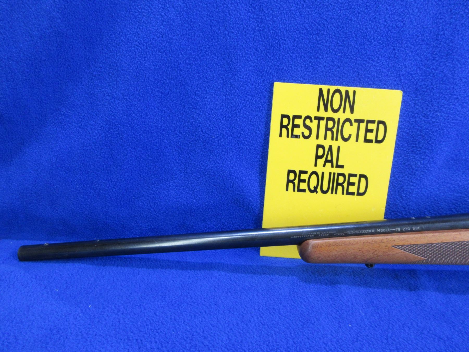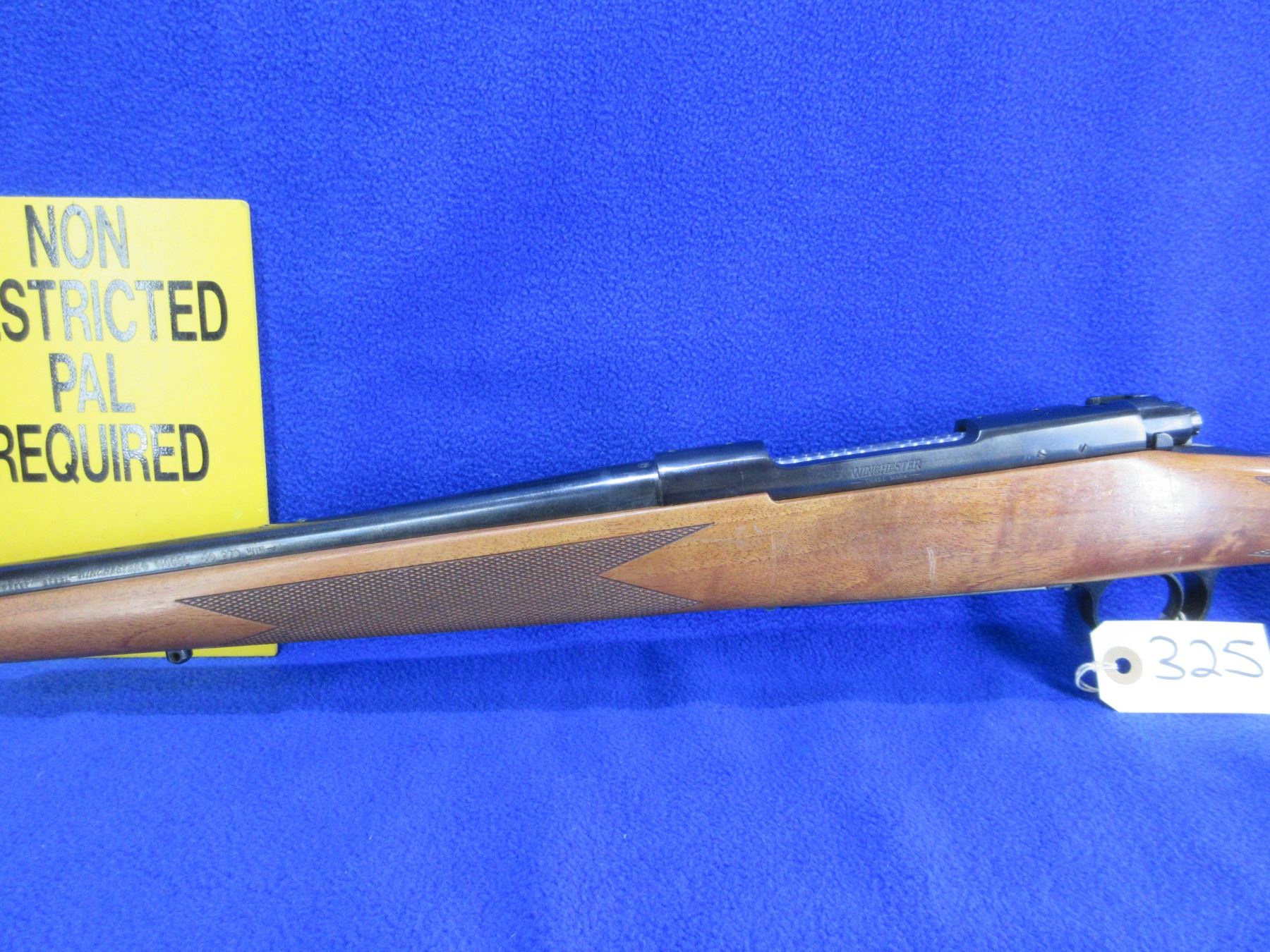Non-Restricted - Winchester Model 70 in 270 Win - This is a bolt action rifle in nice clean condition with floorplate magazine, action appears to be in good to very good working order. Barrel is 21 1/2", rifling is good to very good, bluing is good, sights are missing but is drilled and tapped, stock is good with usage marks, rubber recoil pad good, comes with swivel studs. Ser #G1750048