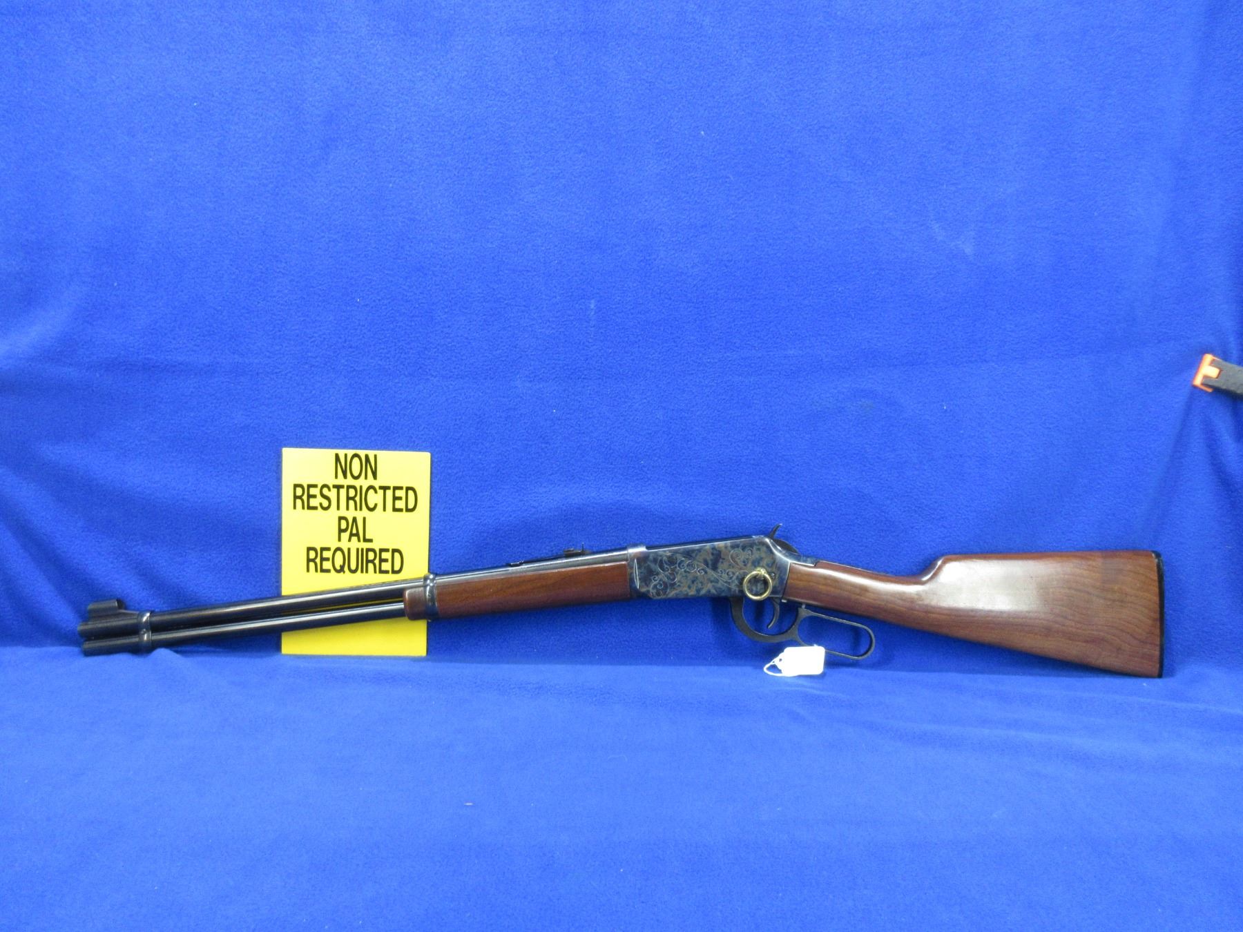Non-Restricted - Winchester Model 94 Saddlering Carbine in 30-30 - This lever action rifle with tube magazine appears NEW. Barrel is 20", rifling is very good, bluing very good, action is case hardened steel, loading door and saddlering are brass, has both sights, stock and forearm are very good, butt plate very good. Has stamping of eagle,possible crest and numbers 573 by rear sight. Ser # 3743789