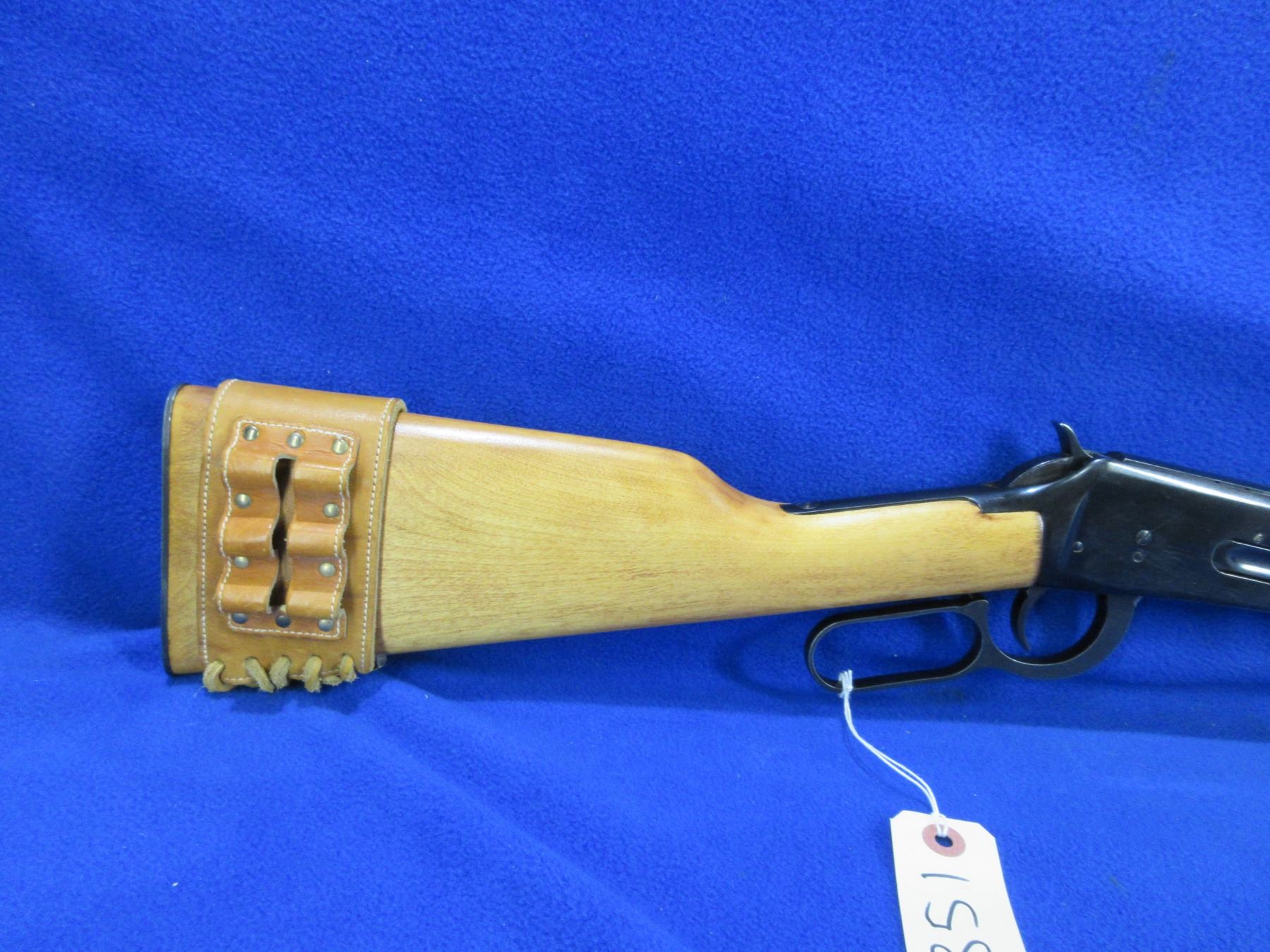 Non-Restricted - Winchester Model 94 in 30-30 Win - Made in 1971, this lever action rifle with tube magazine appears to be in very good working order. Barrel is 20", rifling is very good, bluing is good to very good, action bluing has minor scratches, has both sights, stock and forearm are good to very good, metal butt plate very good, comes with leather cartridge holder and swivel studs. Ser #3402615