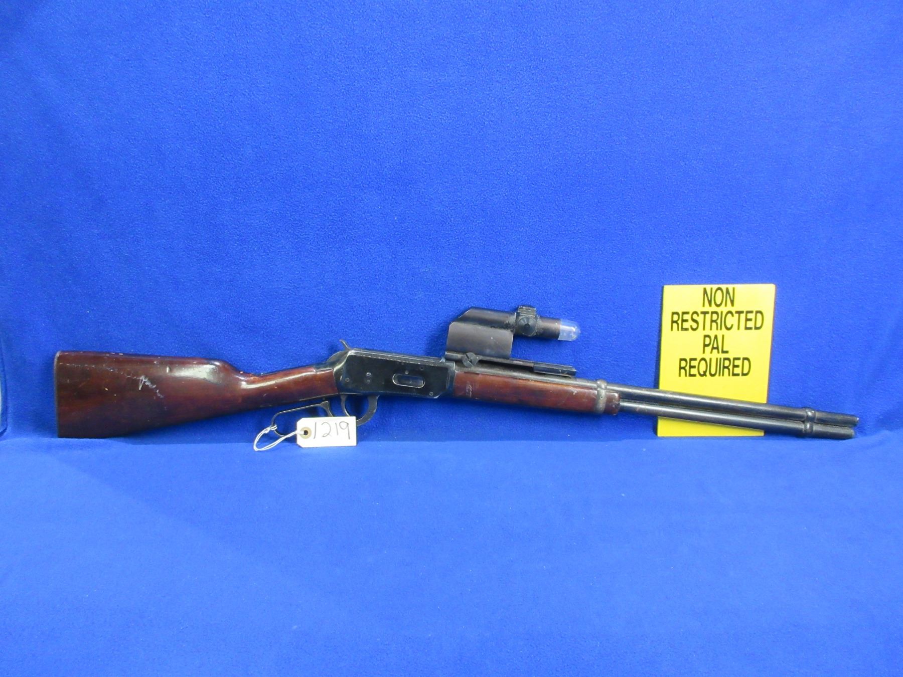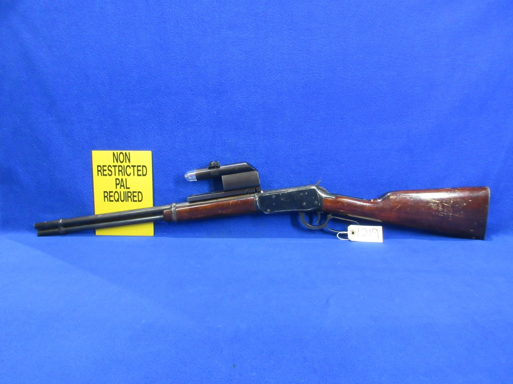 Non-Restricted - Winchester Model 94 in 30-30 Win - This is a lever action rifle with tube magazine, action appears to be in good to very good working order. Barrel is 20", rifling is good to very good, bluing has rust and pitting, has no sights abut has Weaver Qwik-Point R-1 sight, stock and forearm are good with many usage marks, length of pull is 13 1/2", metal butt plate good. Ser # 3200601