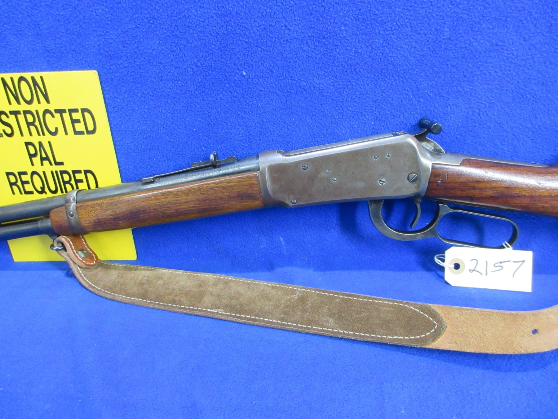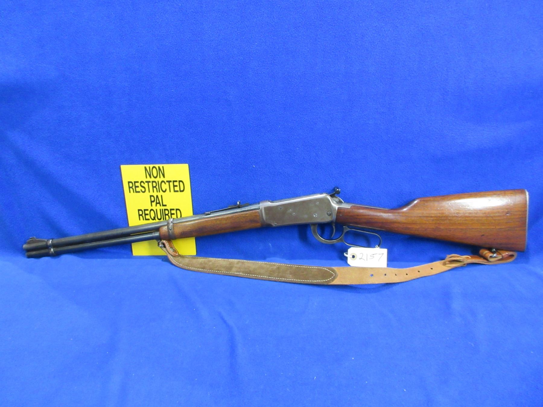 Non-Restricted - Winchester Model 94 in 30-30 - Made in 1959, this is a lever action rifle with tube magazine, action appears to be in good working order, hammer spring appears weak. Barrel is 20", rifling is good to very good, bluing is mostly gray, has both sights, stock and forearm are good to very good, metal butt plate good, comes with swivels and leather strap. Ser #2367935